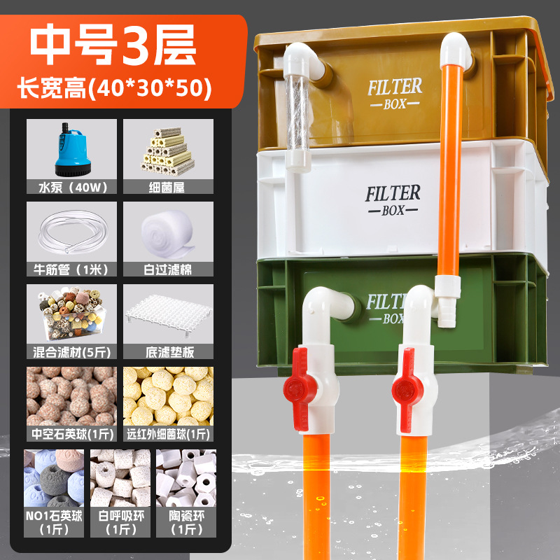 • 산업 스타일 혼합 색상 중간 크기 3 레이어 + 필터 재료 패키지 + 40w 워터 펌프