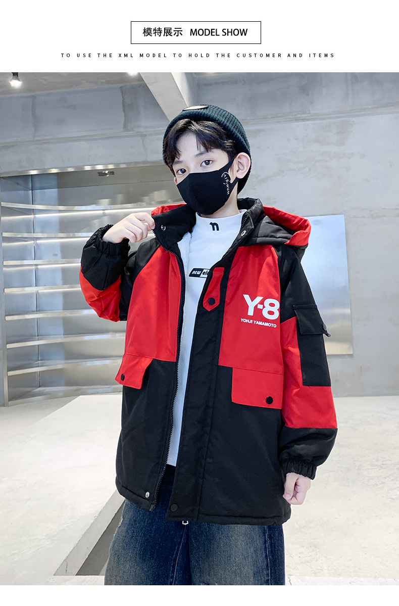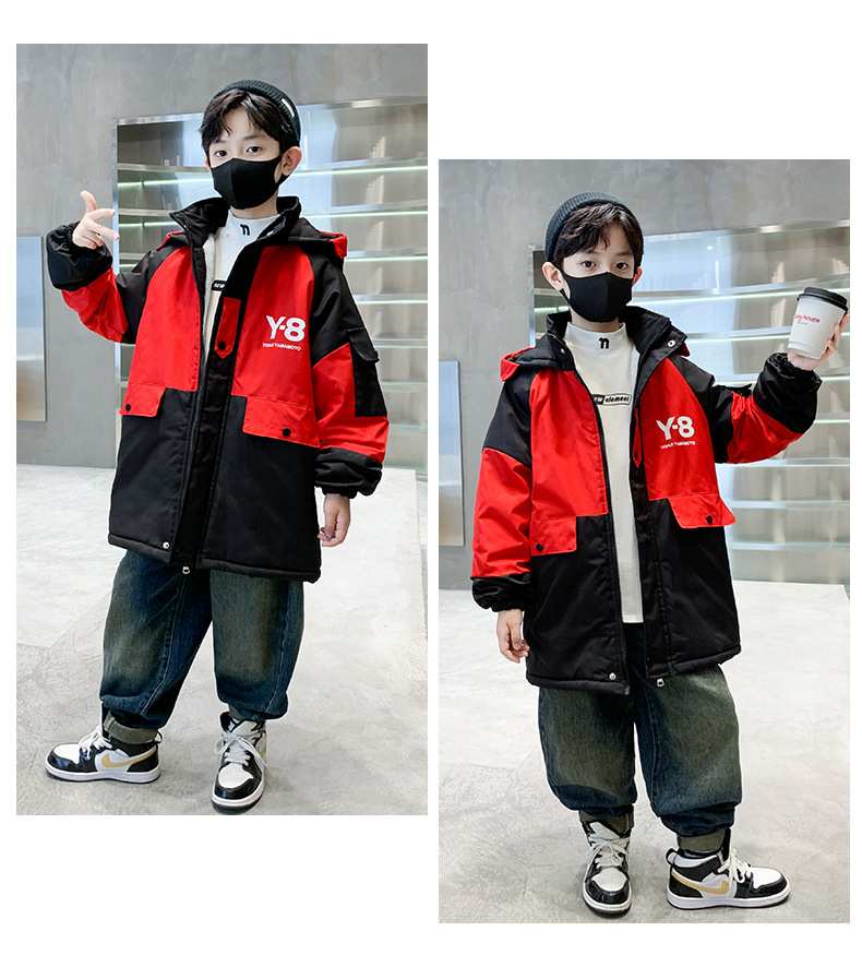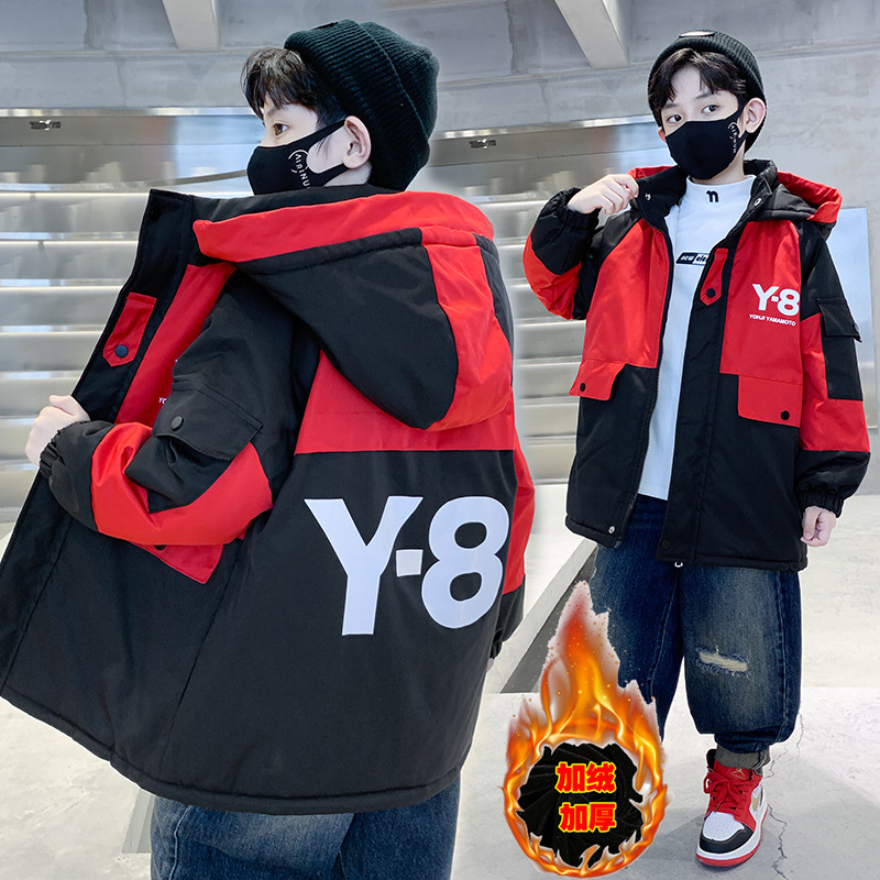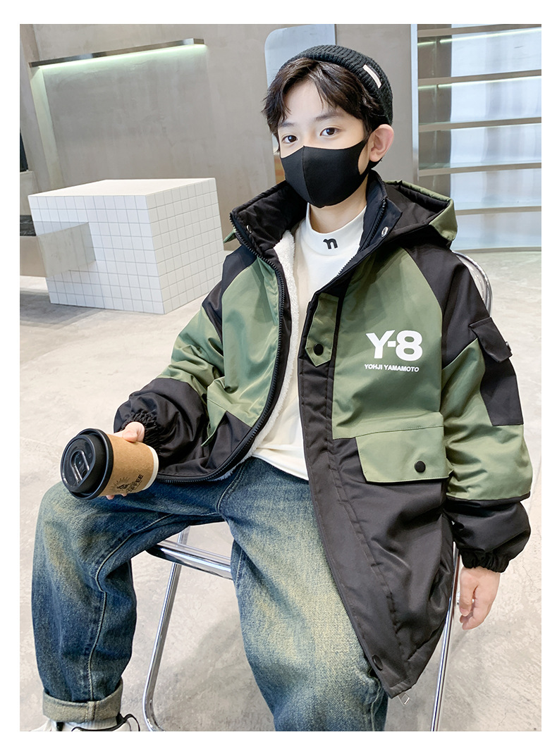 어린이 착용 소년의 기모 두꺼운 코튼 패딩 재킷 2024 년 가을 및 겨울 새로운 중간 길이 두꺼운 파커 패션