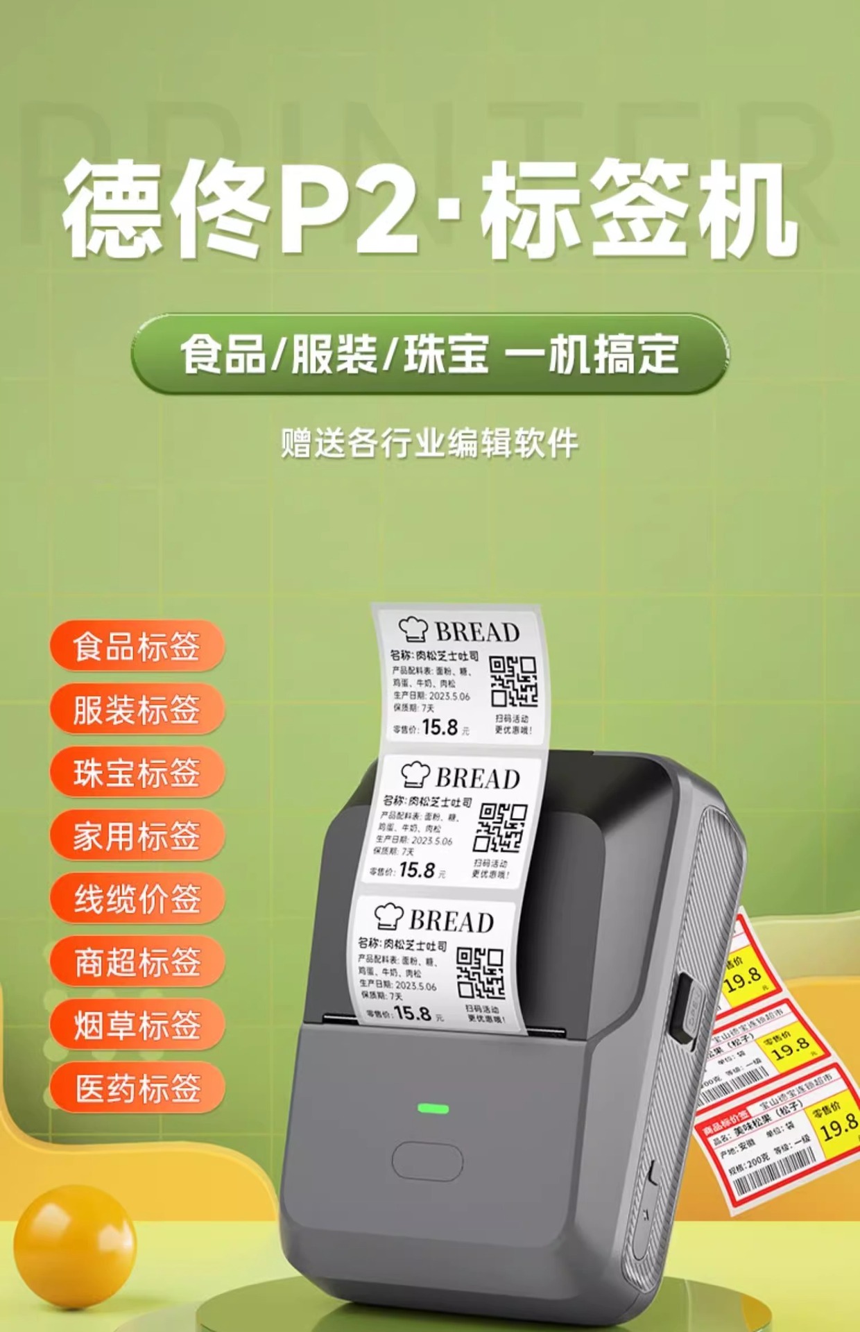 디통 P2 식품 라벨 프린터 생산 날짜 상품 자격을 갖춘 유통 기한 바코드 의류 태그 열