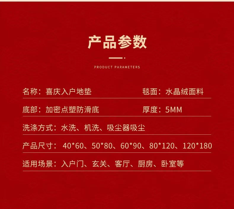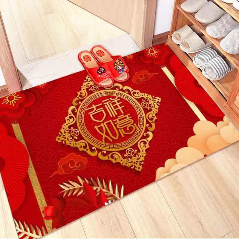 가정용 두꺼운 크리스탈 벨벳 바닥 매트 문 입구 매트 레드 축제 입구 매트 새해 카펫스토어 가기