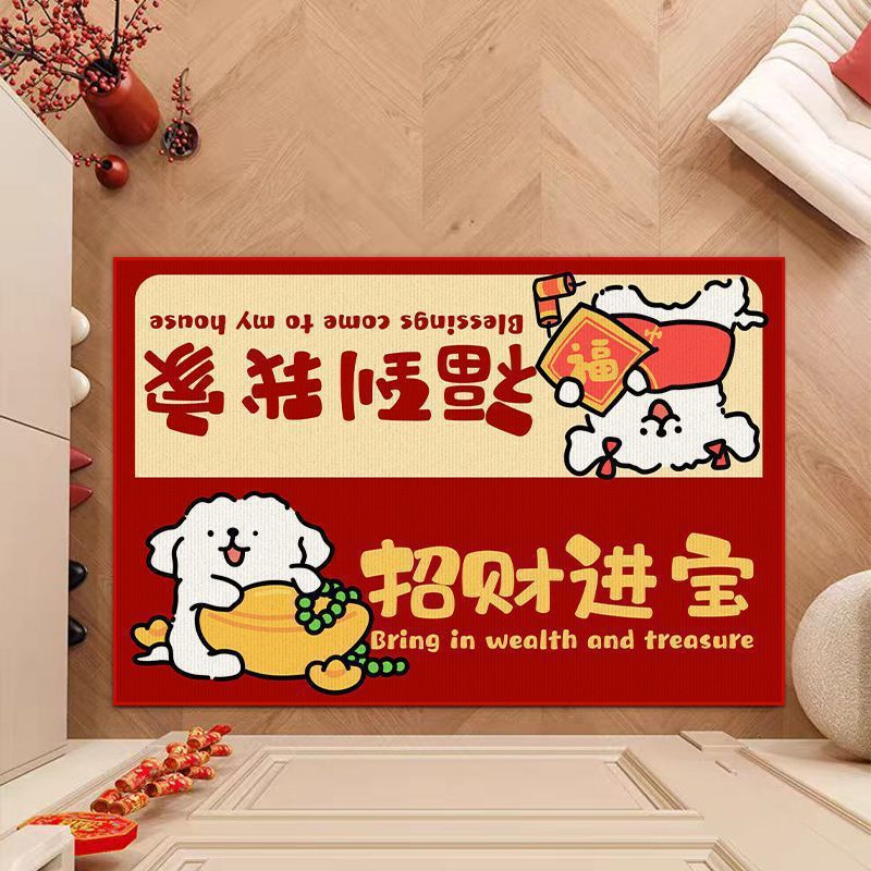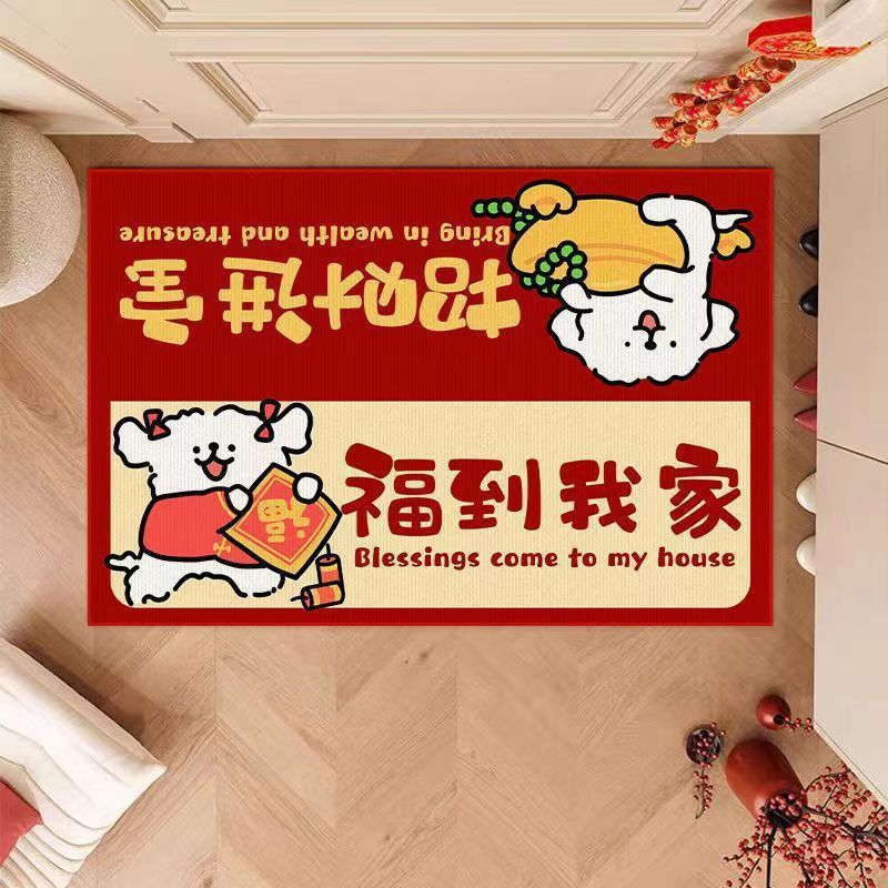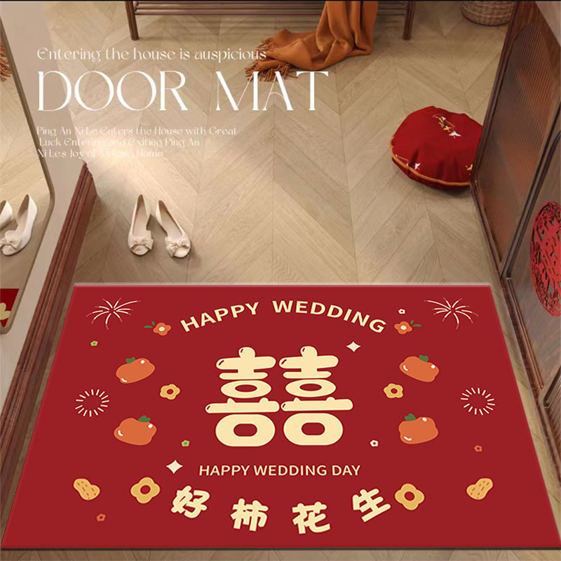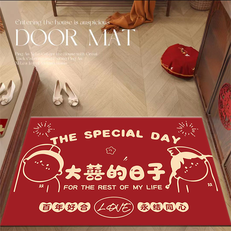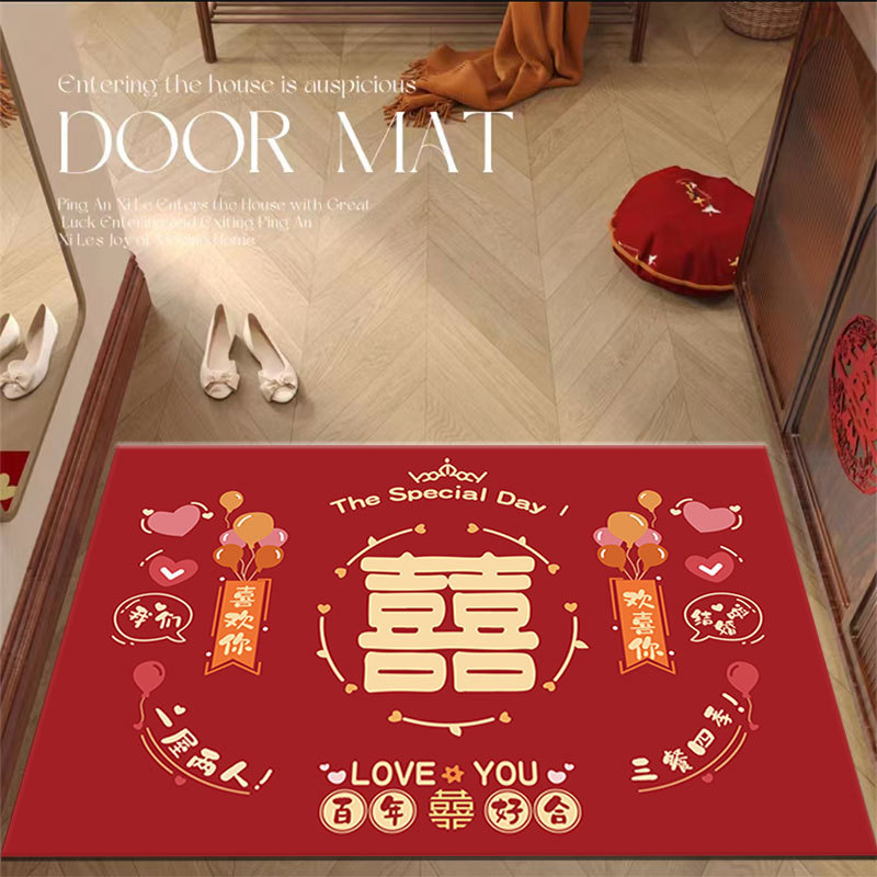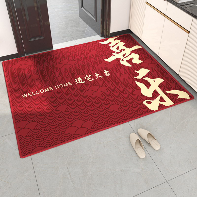 가정용 두꺼운 크리스탈 벨벳 바닥 매트 문 입구 매트 레드 축제 입구 매트 새해 카펫