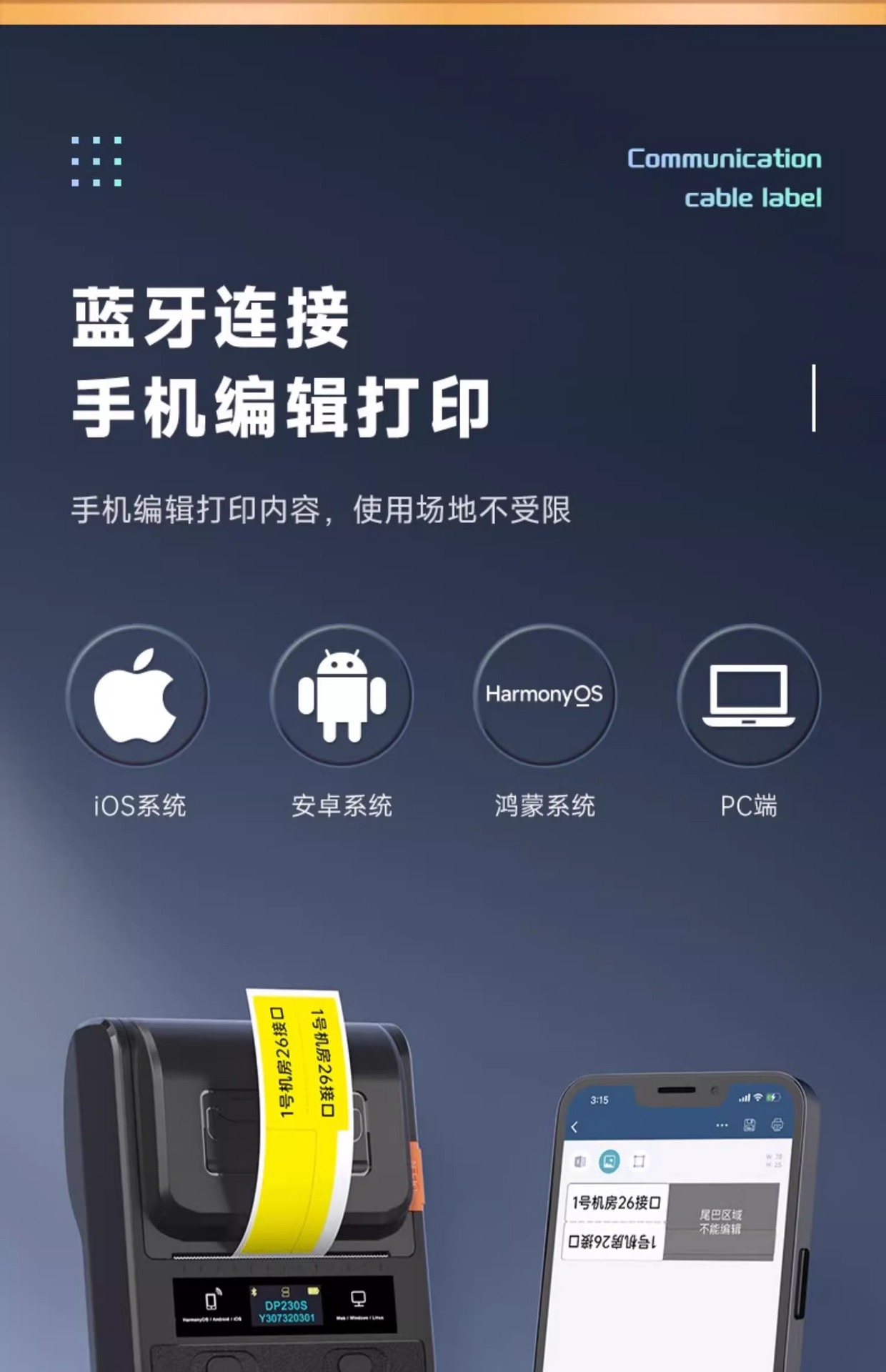 대외 무역 판 De Tong DP23S 라벨 기계 휴대용 휴대용 열 휴대 전화 블루투스 통신 케이블 컴퓨터 실