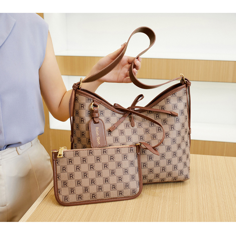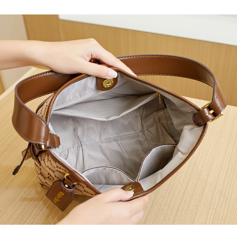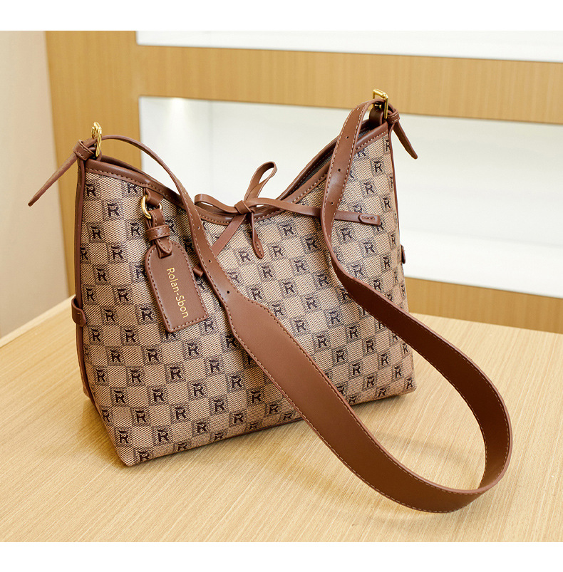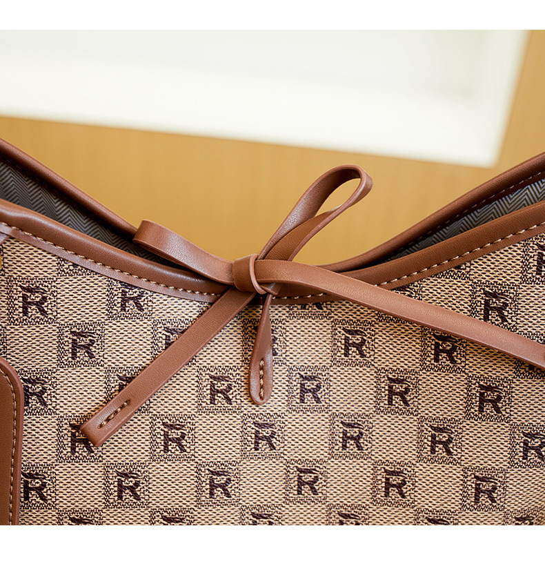 여성용 가방 2025 새로운 스타일 통근 복고풍 프린트 토트백, 고급스러운 대용량 패셔너블한 싱글 숄더 크로스백