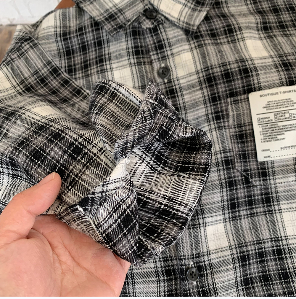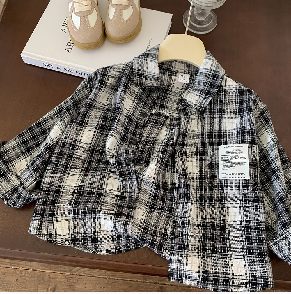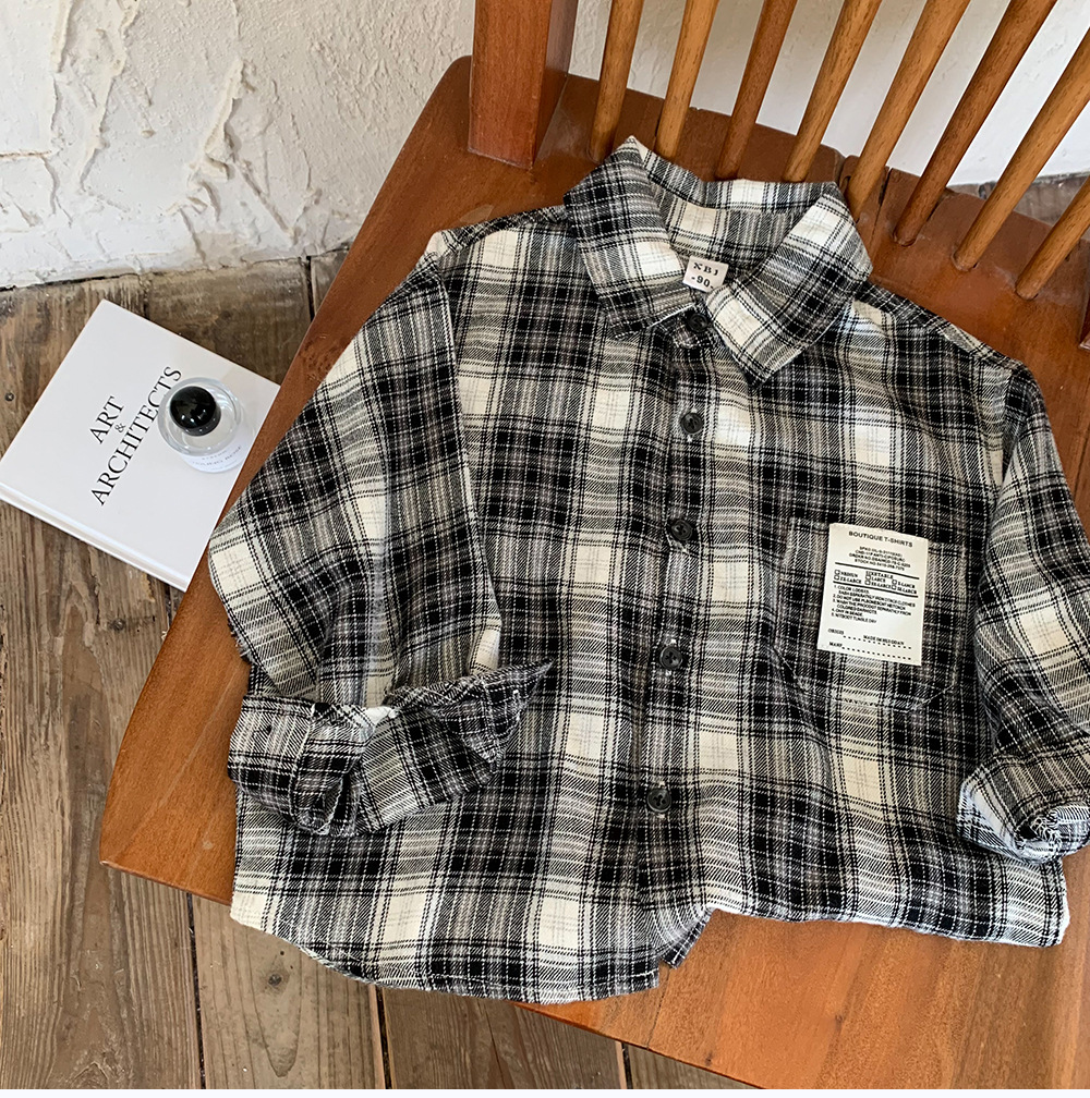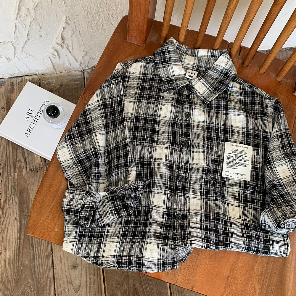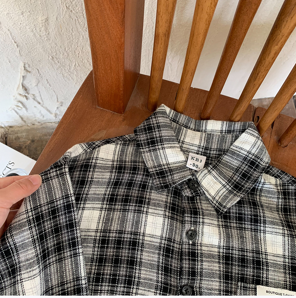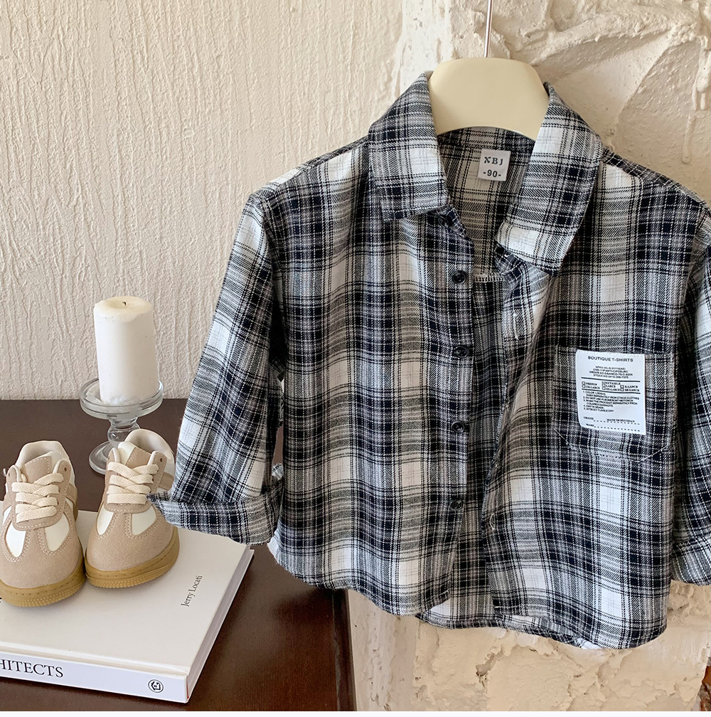 어린이 셔츠 2024 새 봄과 가을 소년 긴팔 셔츠 한국 버전의 어린이 격자 무늬 셔츠 아동복 도매스토어 가기