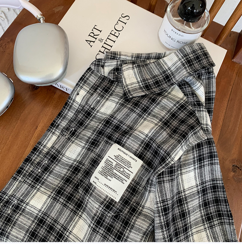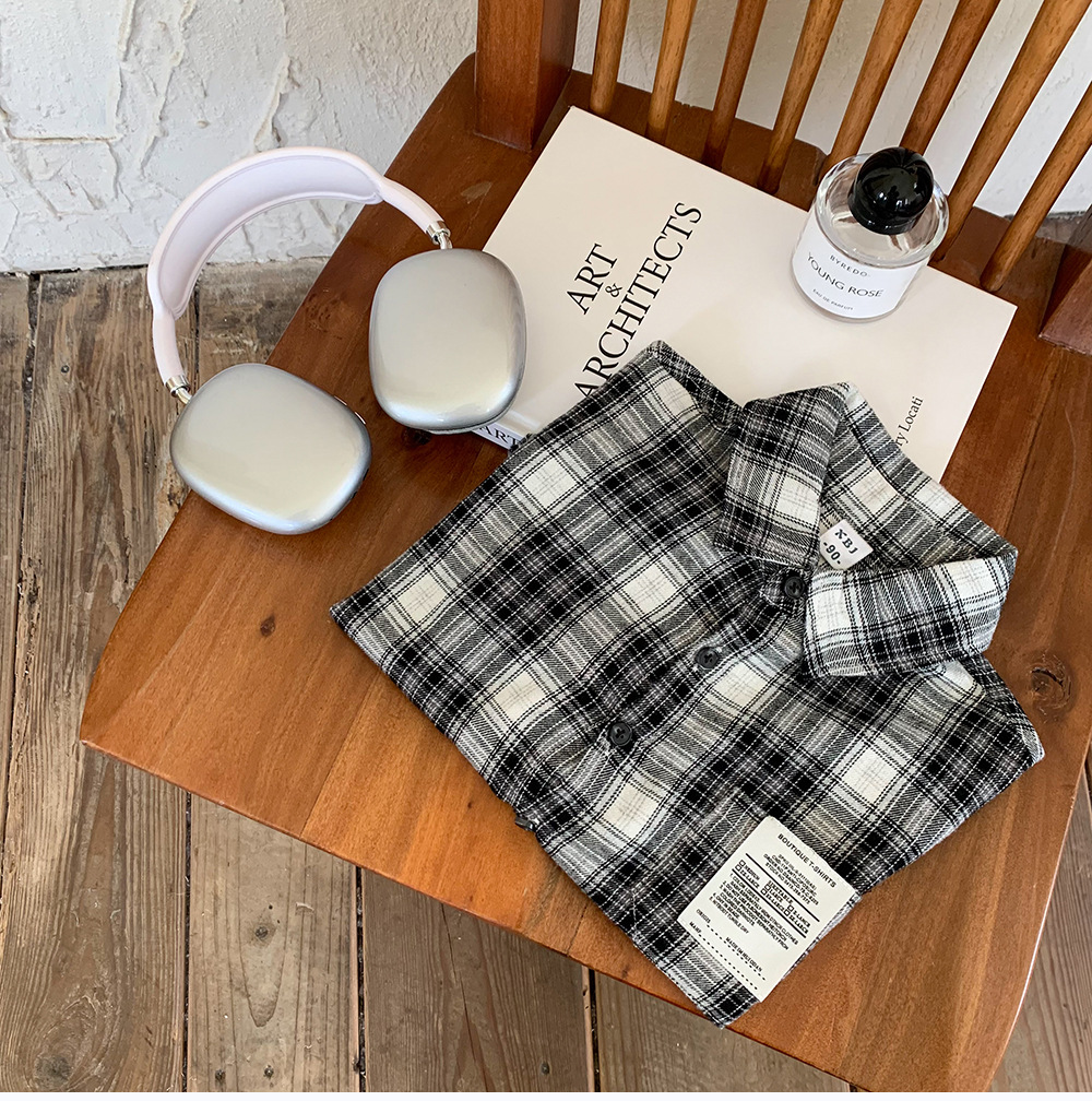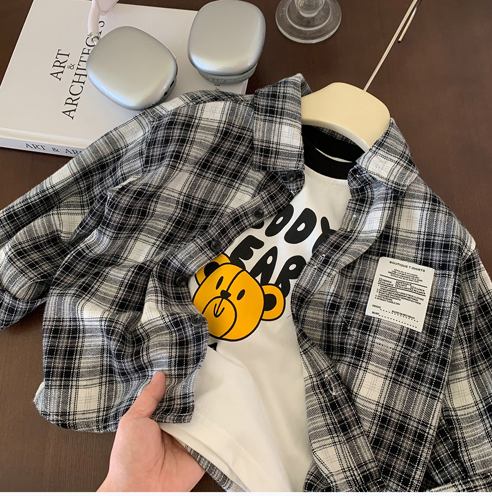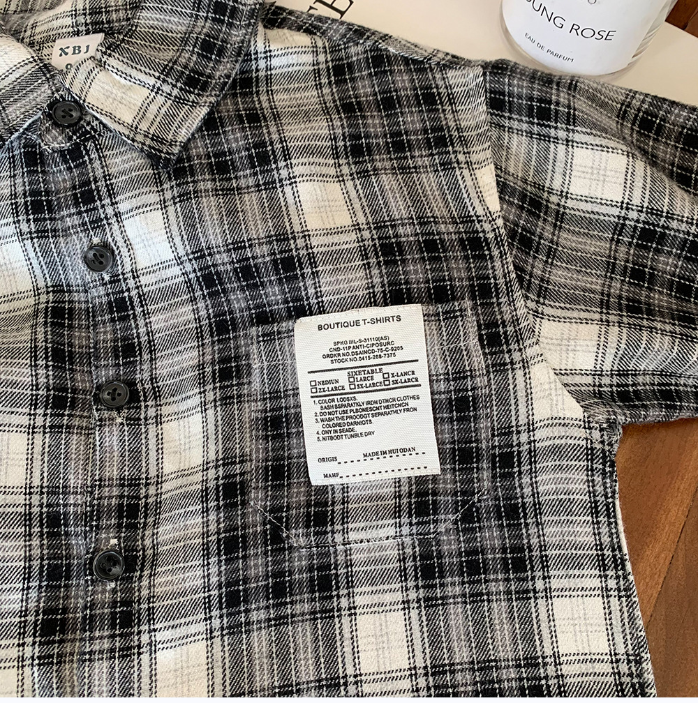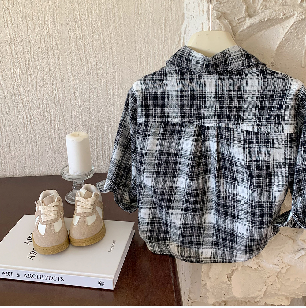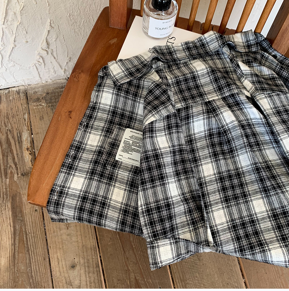 어린이 셔츠 2024 새 봄과 가을 소년 긴팔 셔츠 한국 버전의 어린이 격자 무늬 셔츠 아동복 도매스토어 가기