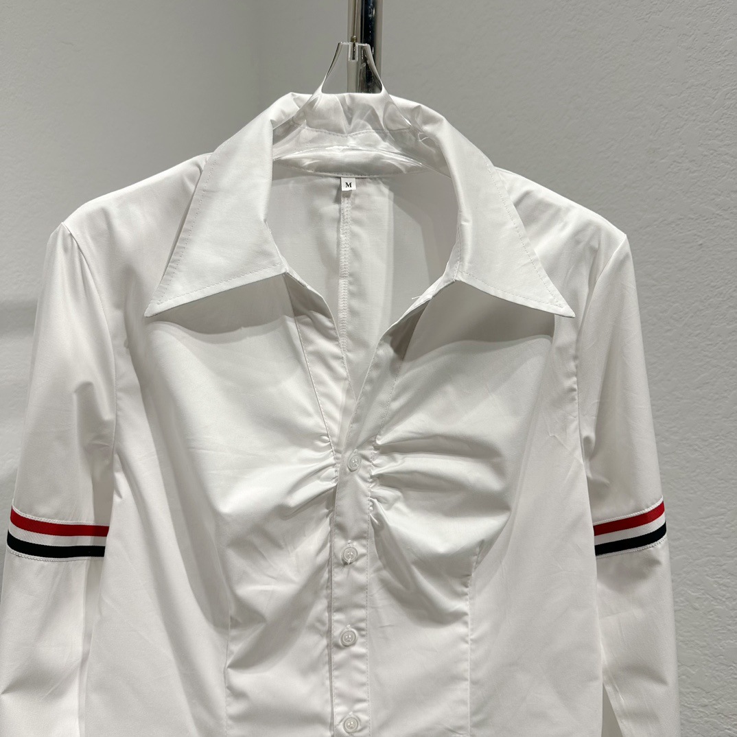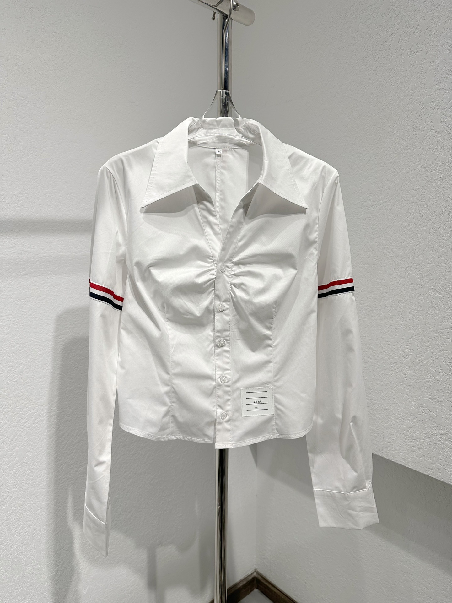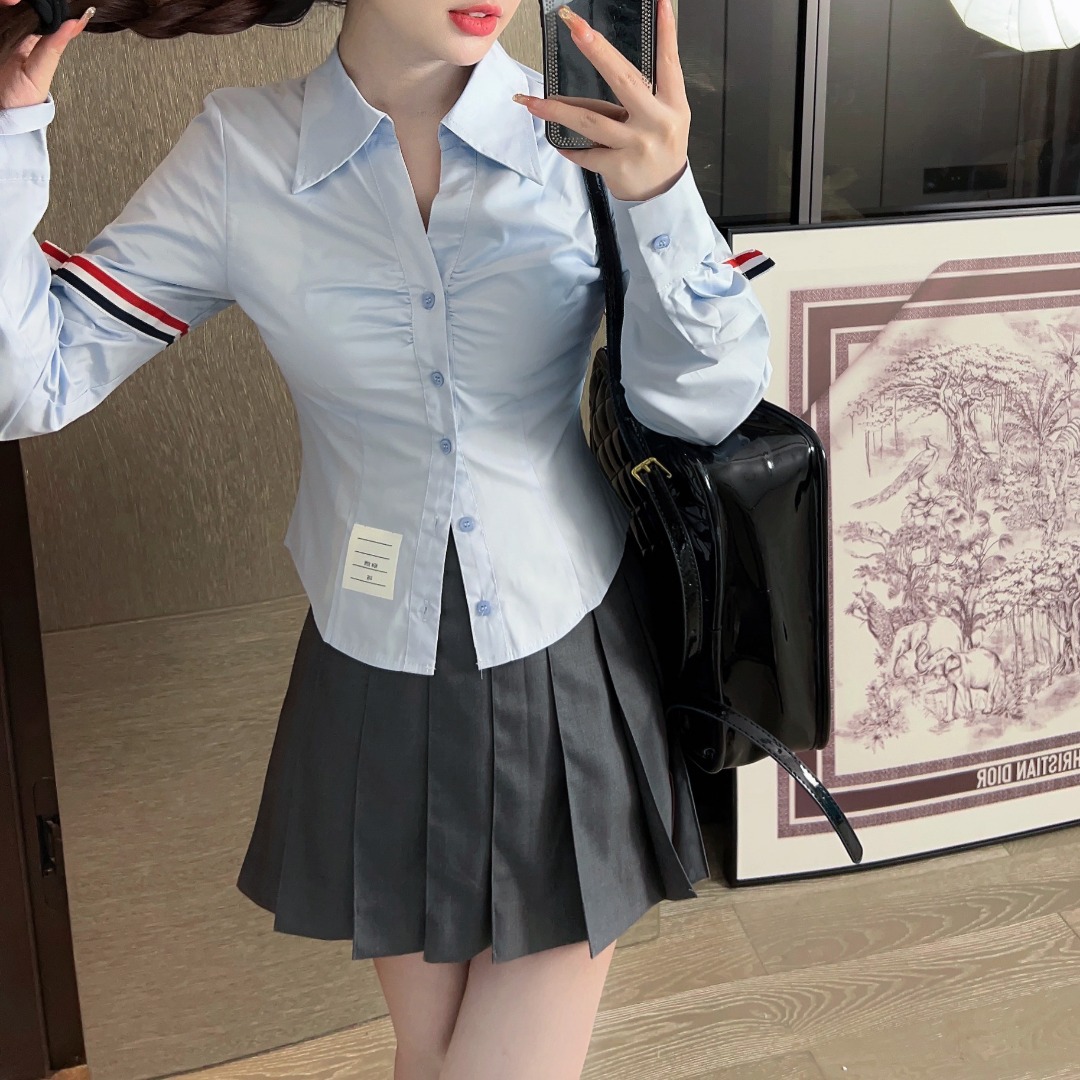 봄과 가을 새로운 짧은 캐주얼 주름 캐주얼 셔츠 탑