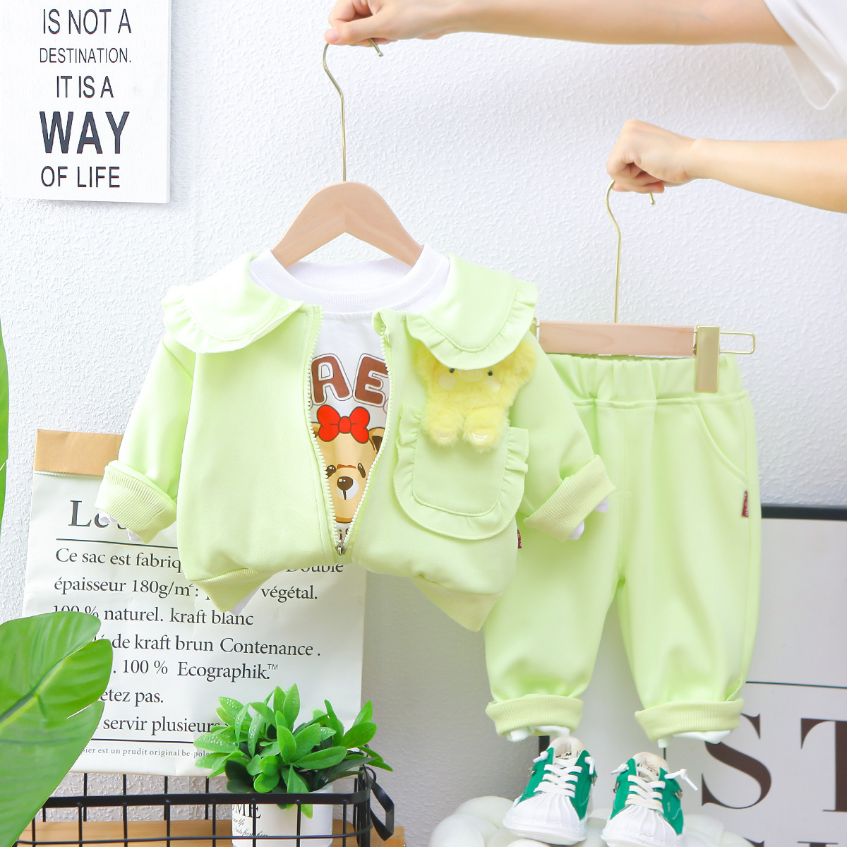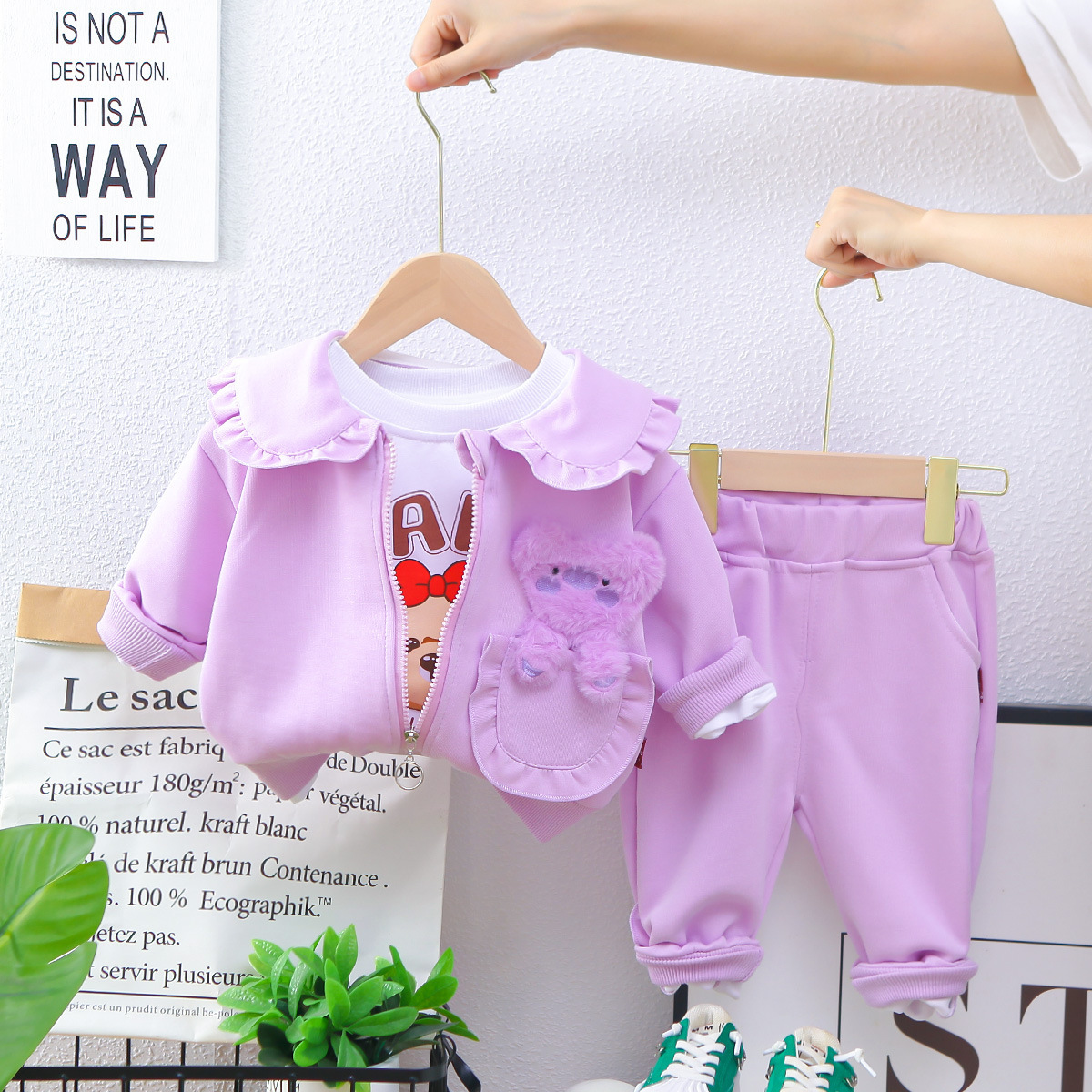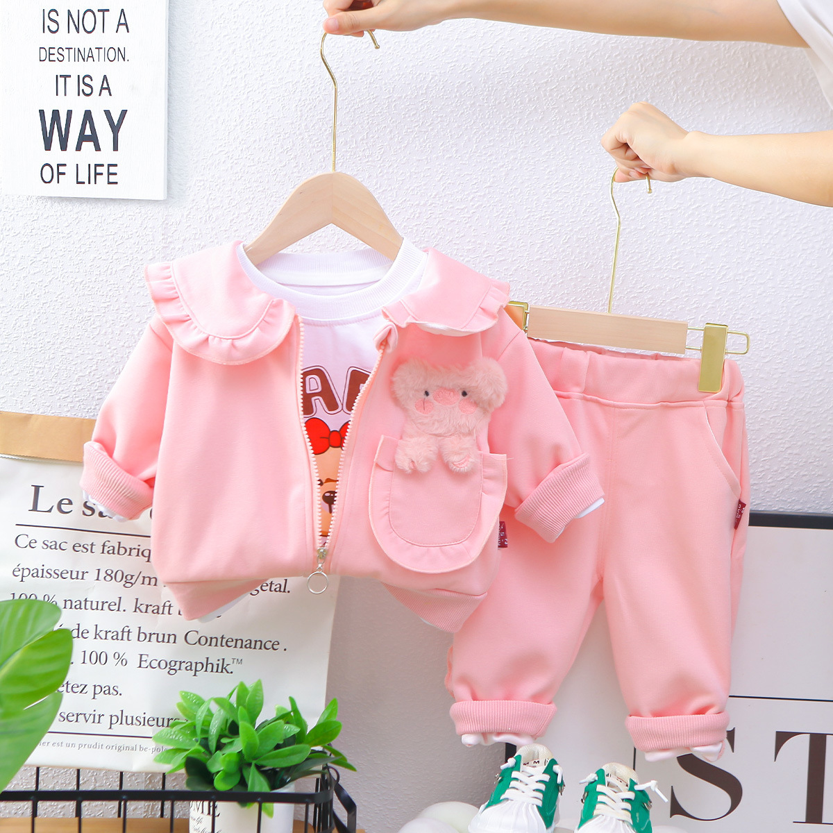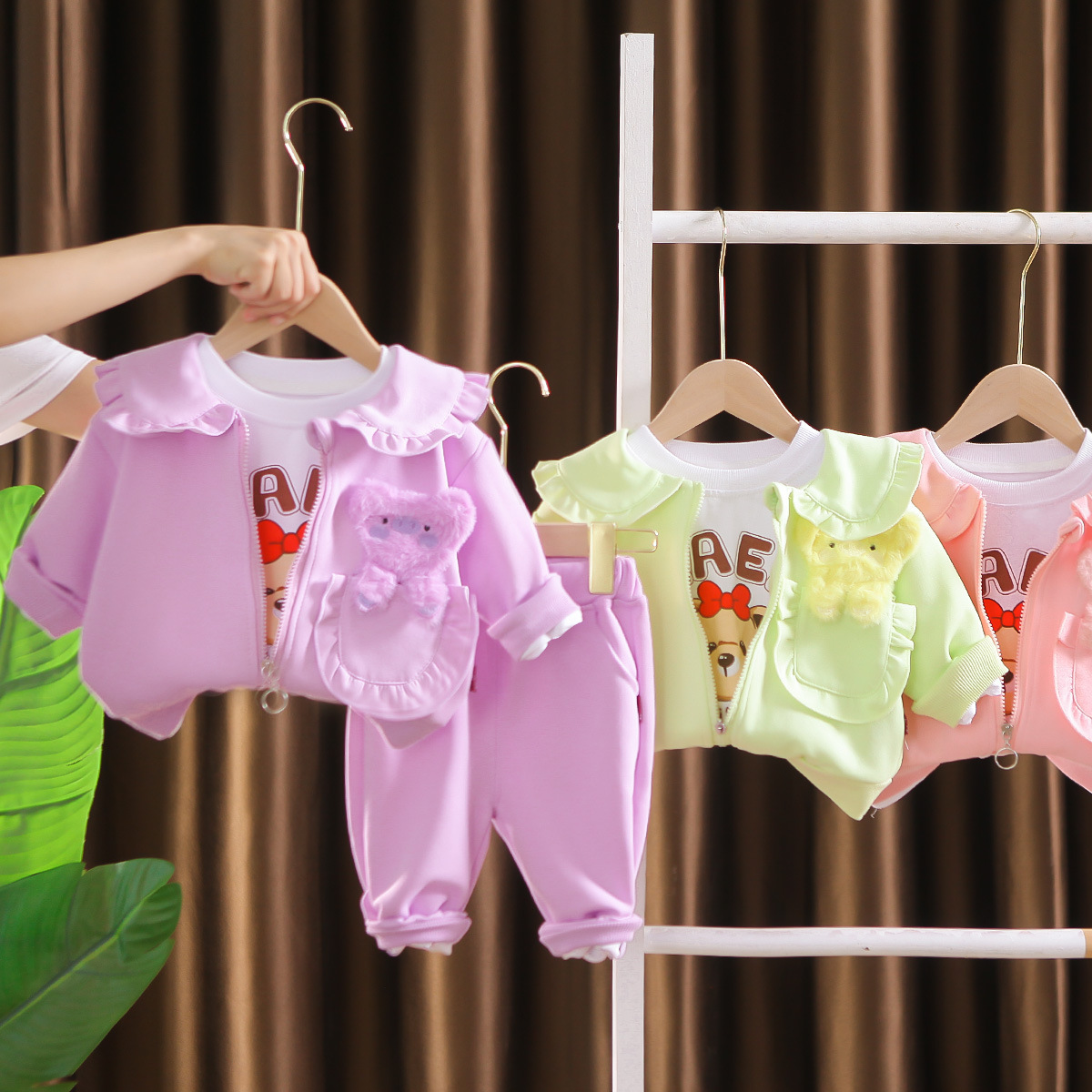 새로운 소녀 한국 스타일 세트 2024 새로운 어린이 서양식 옷 야구 세트 3 피스 봄과 가을 새로운스토어 가기