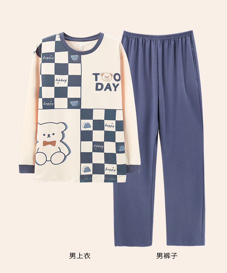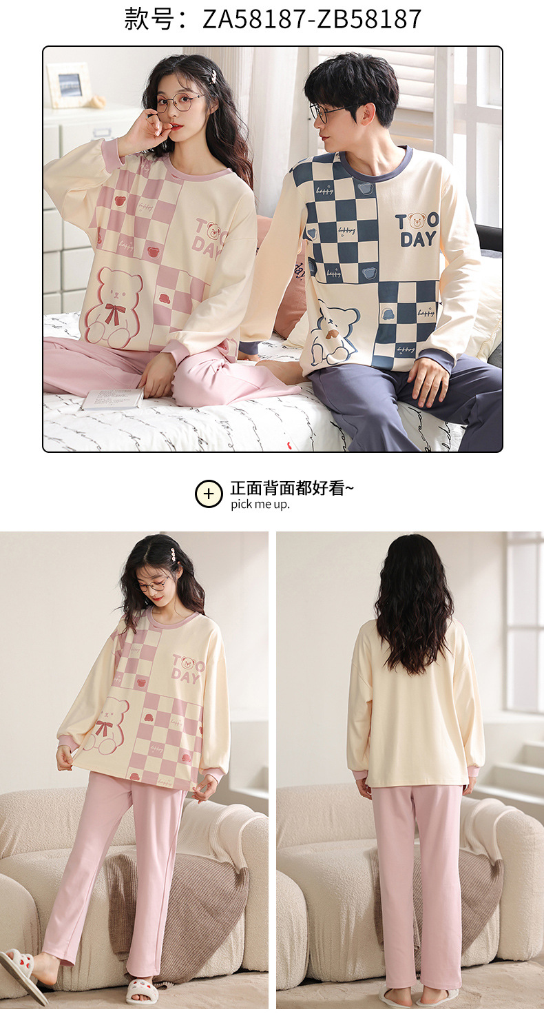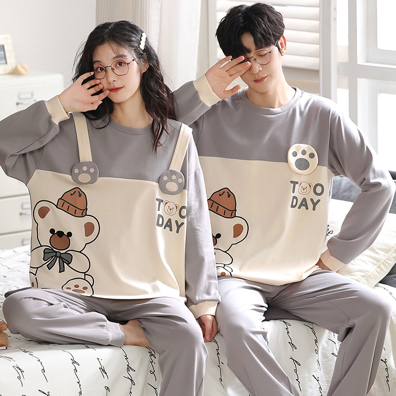 커플 잠옷 여성의 봄과 가을 면화 긴 소매 세트 귀여운 만화 캐주얼 남성 플러스 사이즈 외부 옷을 입고스토어 가기
