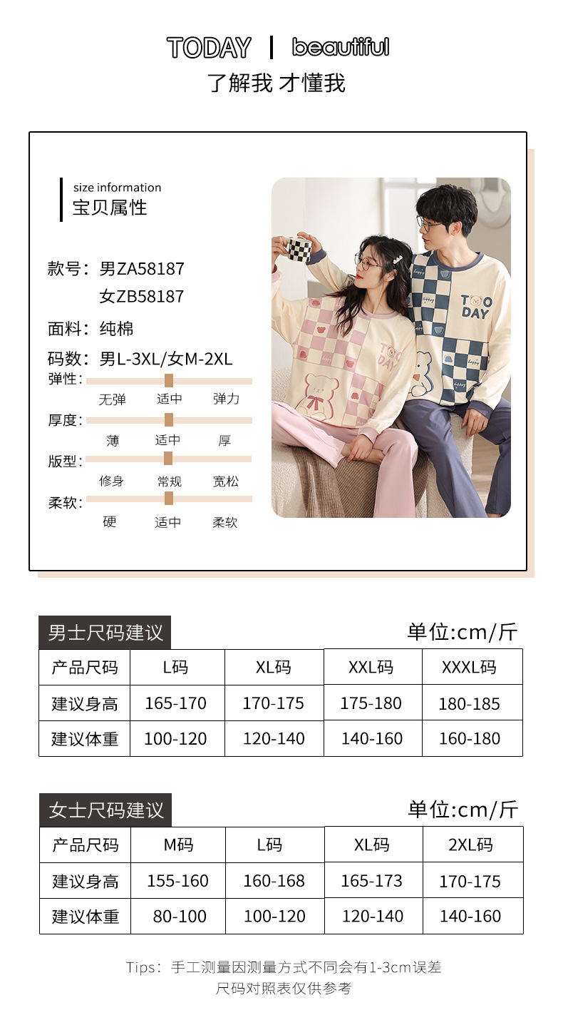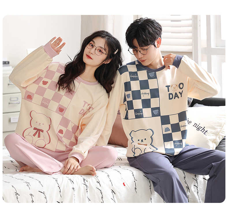 커플 잠옷 여성의 봄과 가을 면화 긴 소매 세트 귀여운 만화 캐주얼 남성 플러스 사이즈 외부 옷을 입고