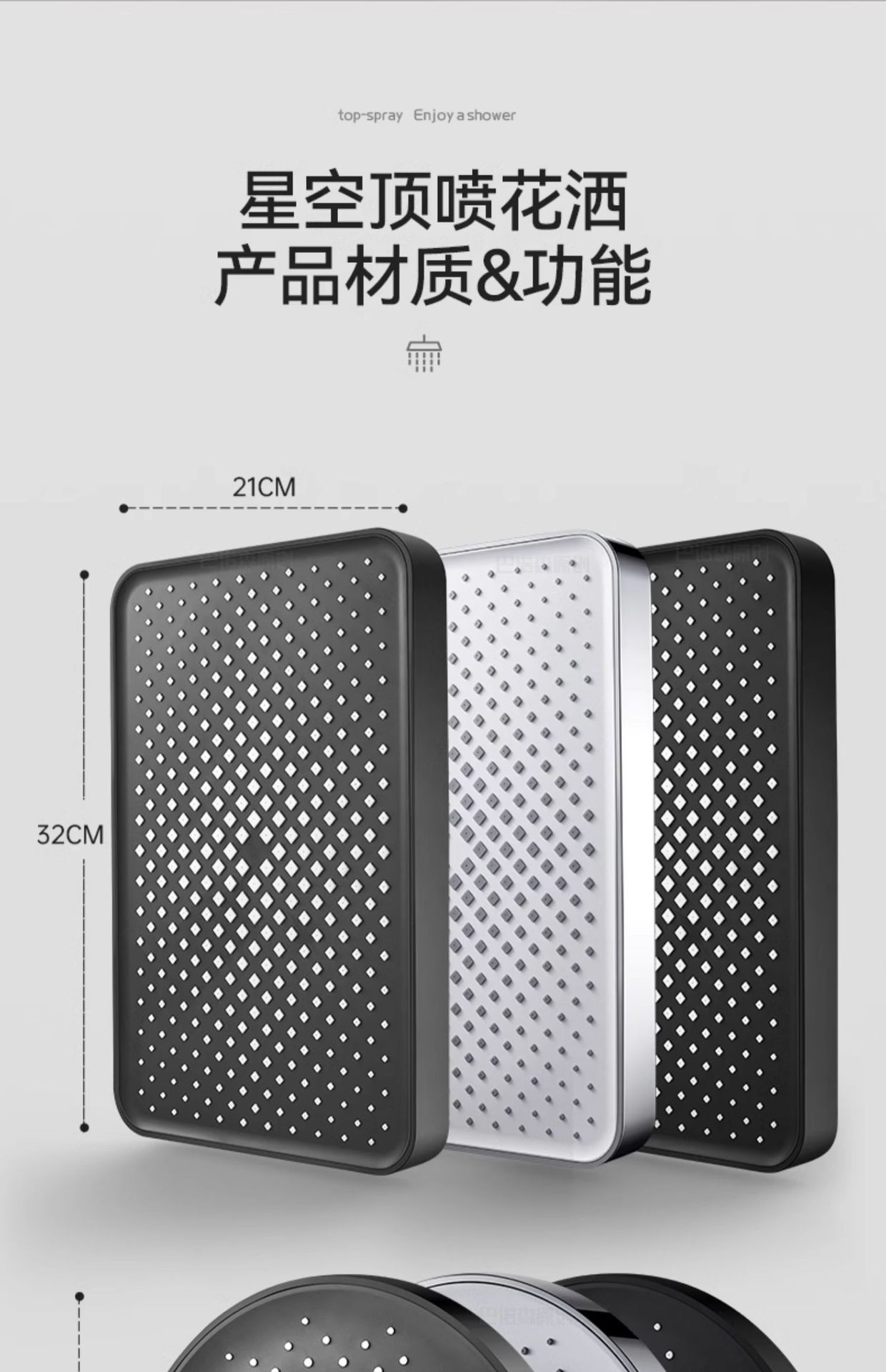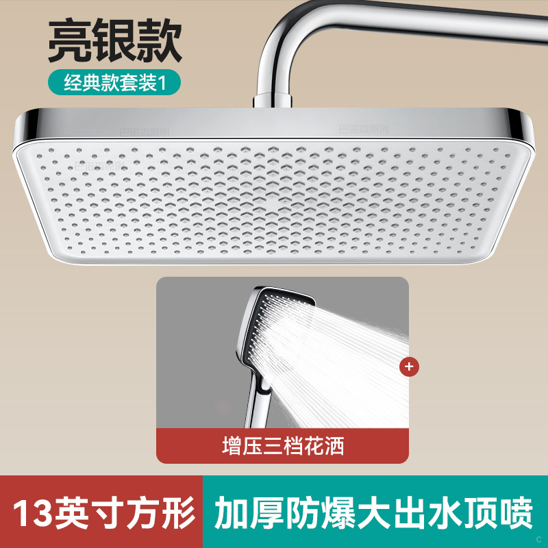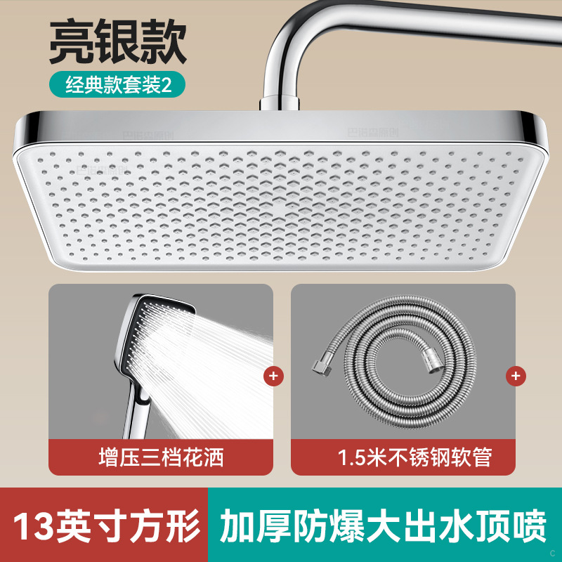 • (실버 화이트) 13inch 사각 천장 스프레이 + 핸드 샤워 + 1.5m 호스