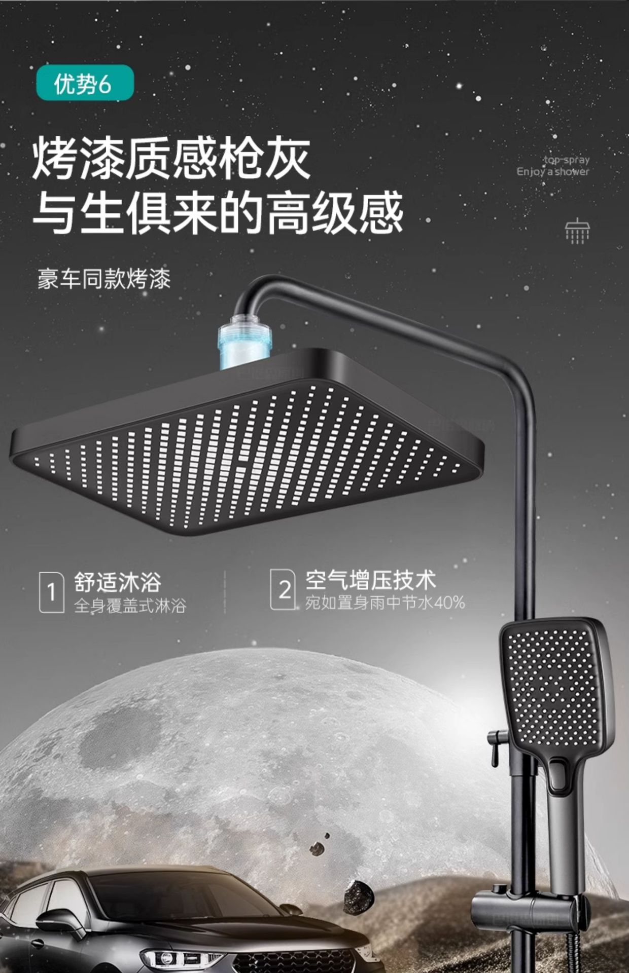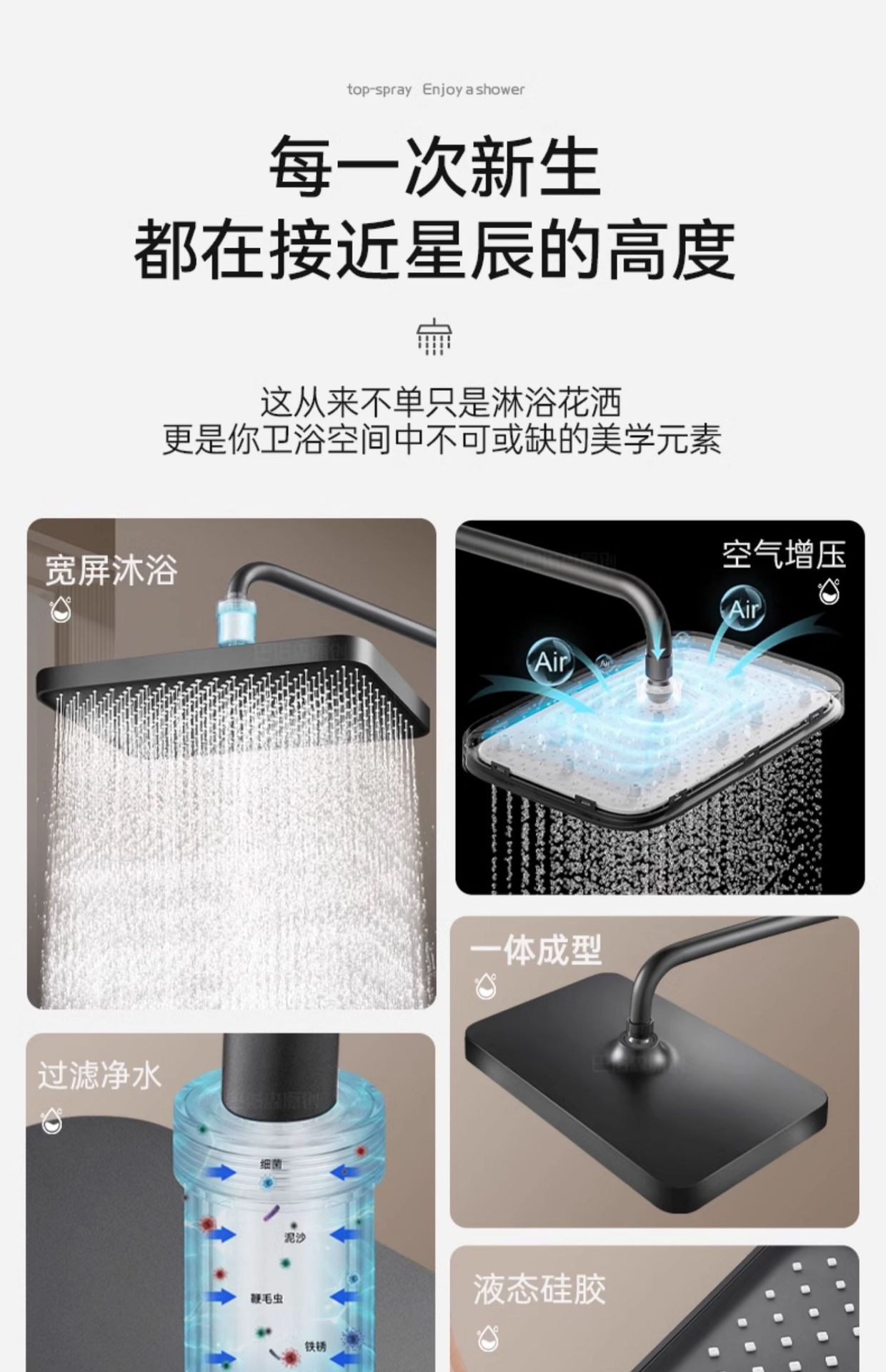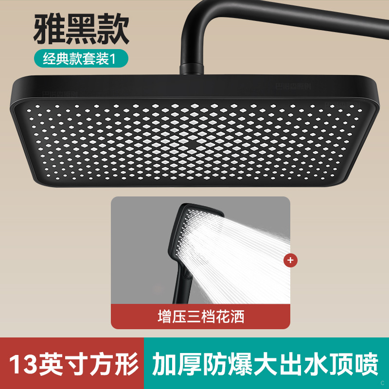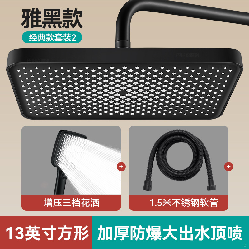 • (퓨어 블랙) 13inch 상단 스프레이 + 핸드 샤워 + 1.5m 호스
