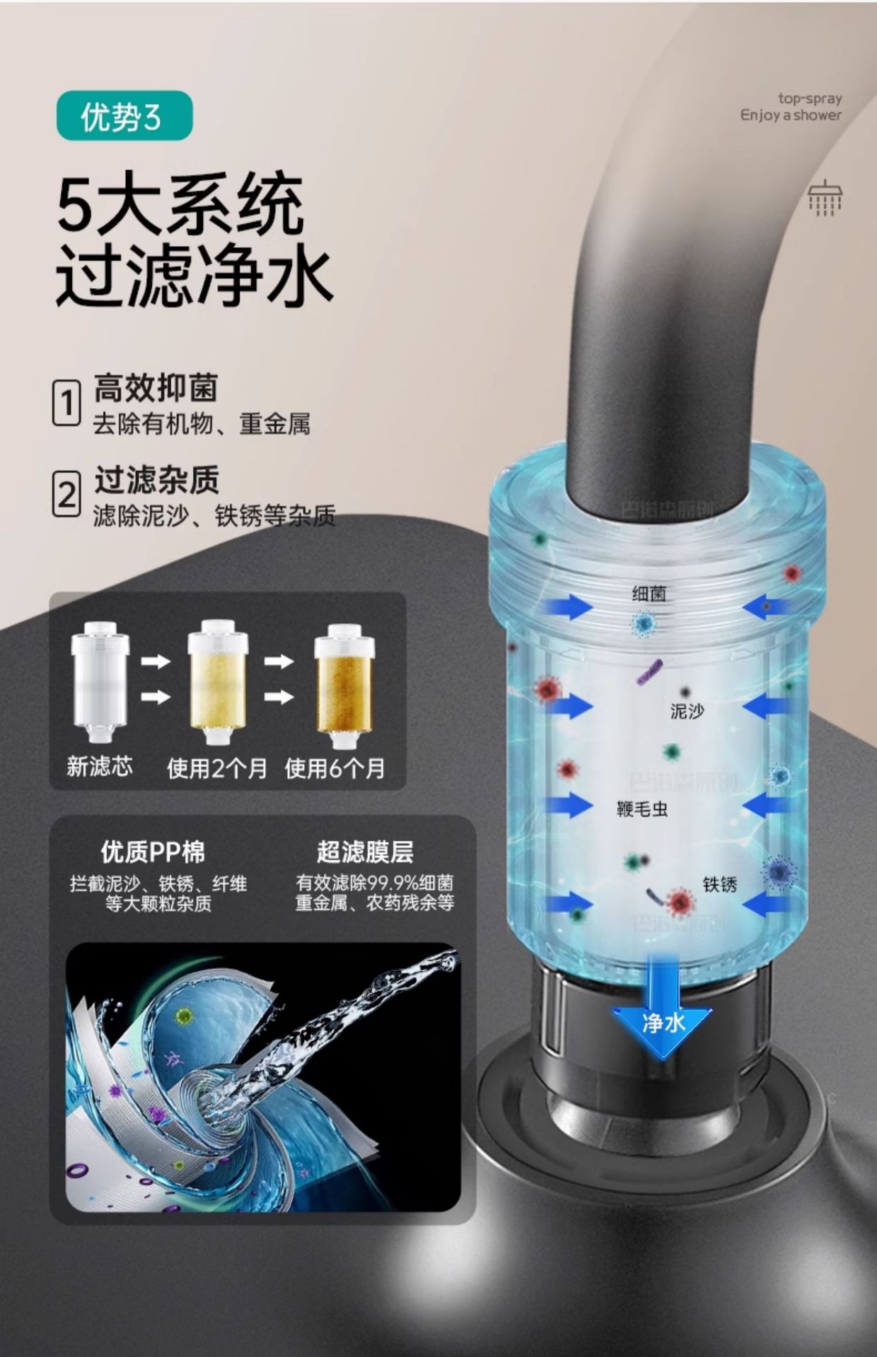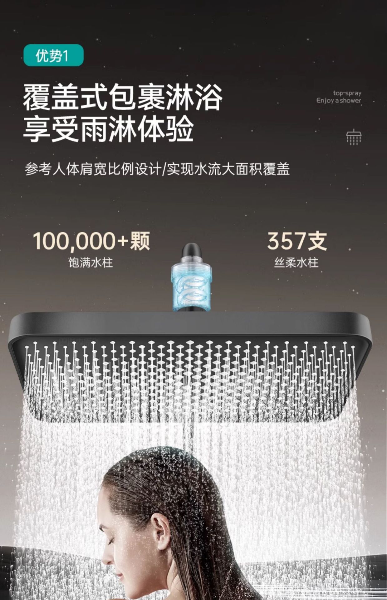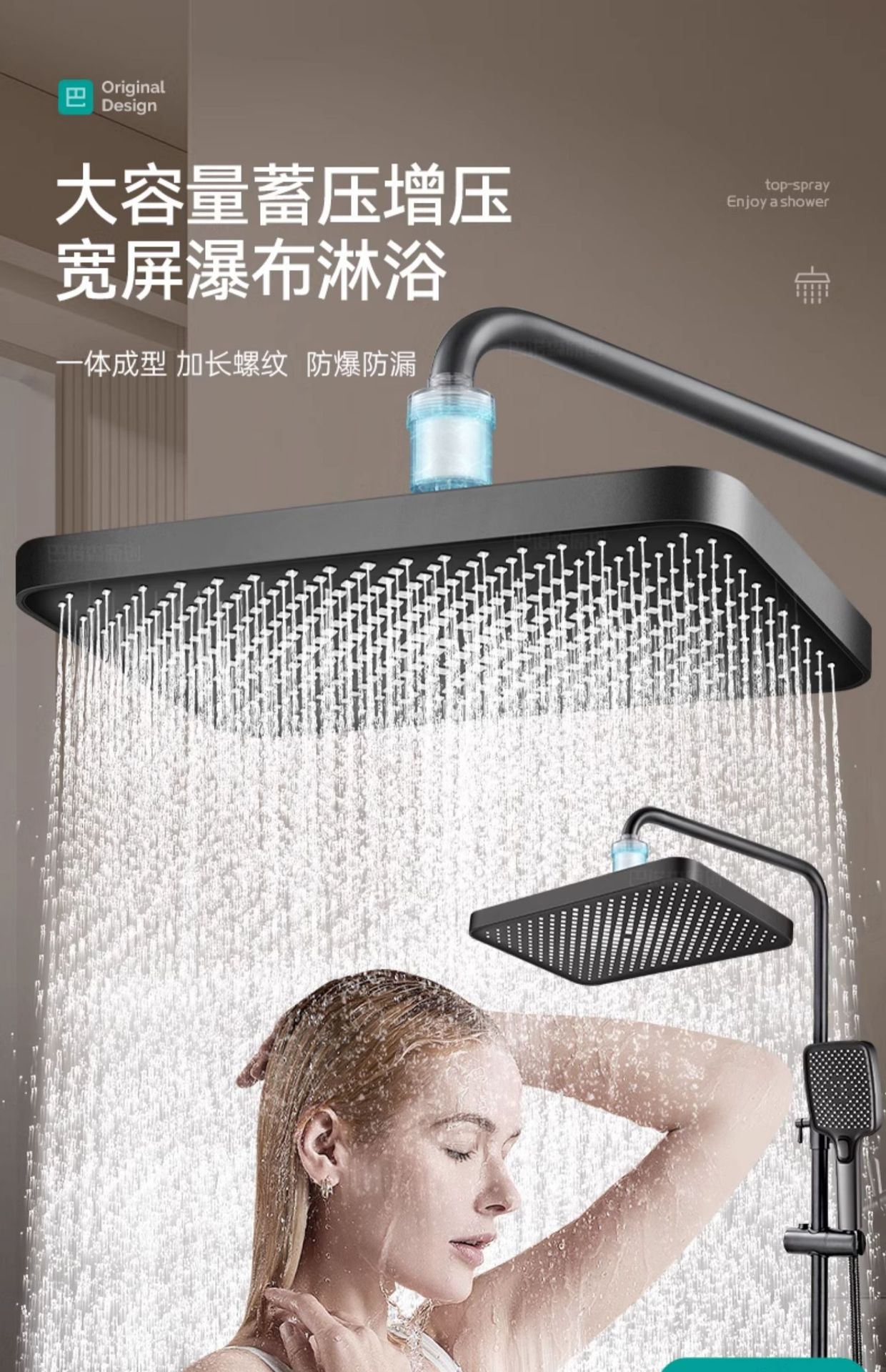 • (퓨어 블랙) 13inch 상단 스프레이 + 핸드 샤워 + 1.5m 호스