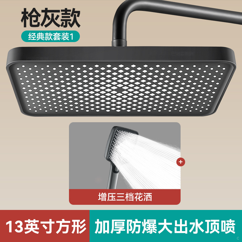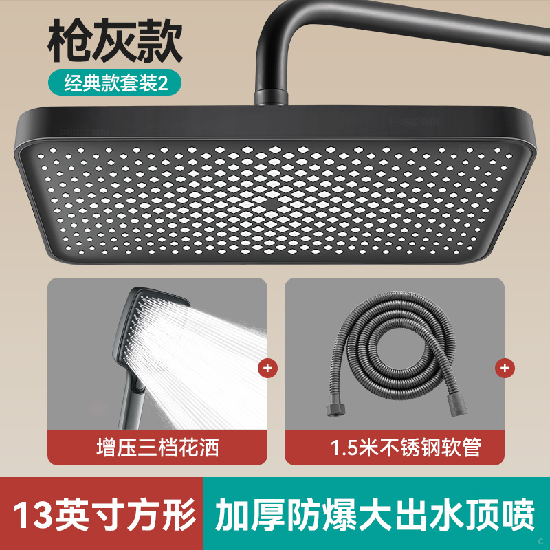 • 건 그레이) 13inch 스퀘어 탑 스프레이 + 핸드 샤워 + 1.5m 호스