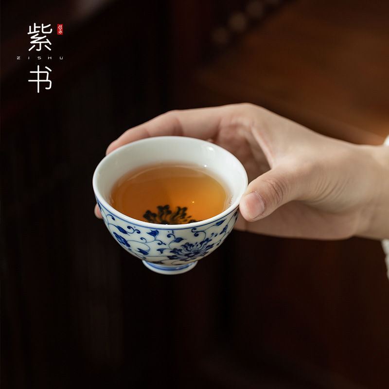 빈티지 블루와 플라워 마스터 컵 쿵푸 차 세트 티 컵 세라믹 차 시음 컵 싱글 컵 골동품 징 데첸 싱글 유약 레드스토어 가기