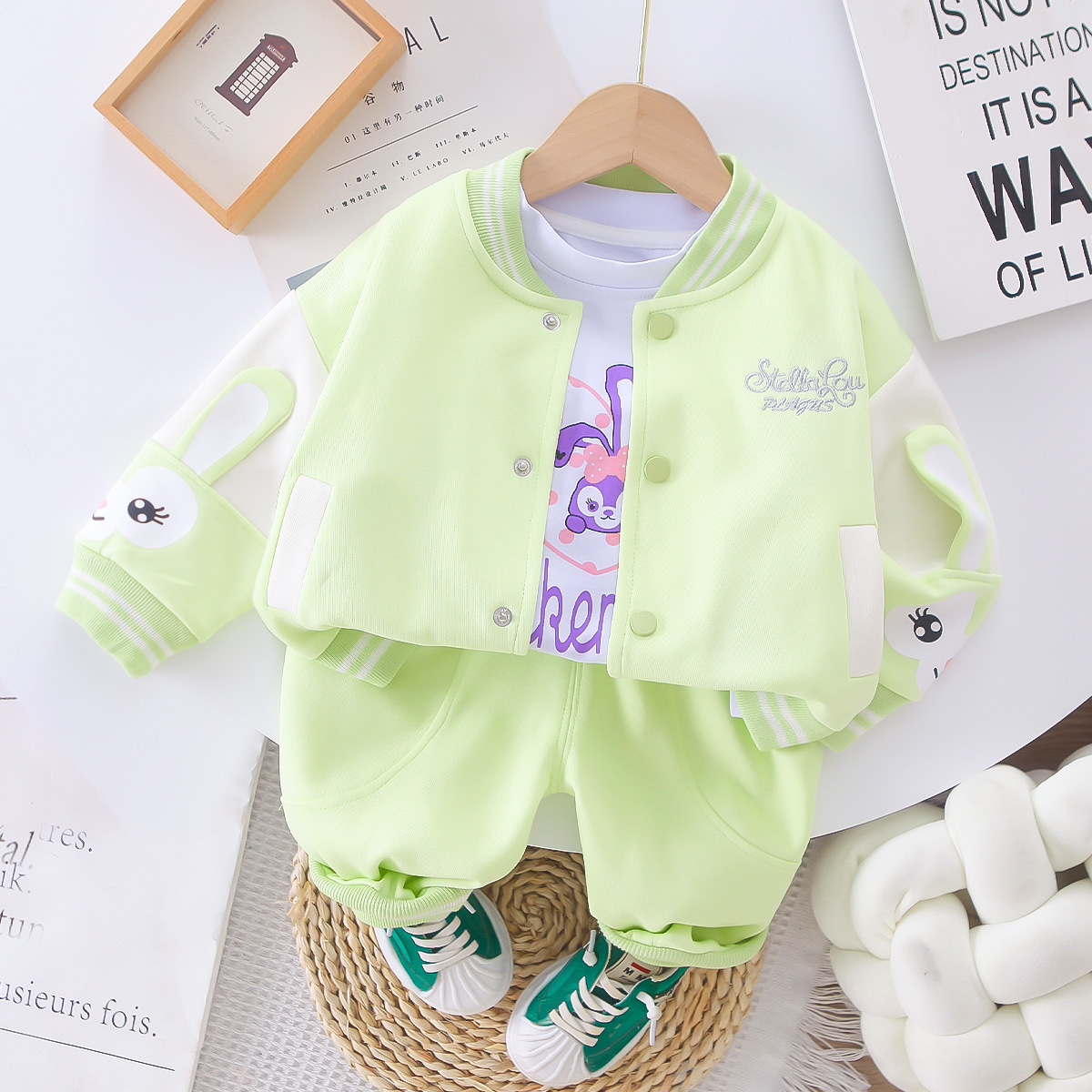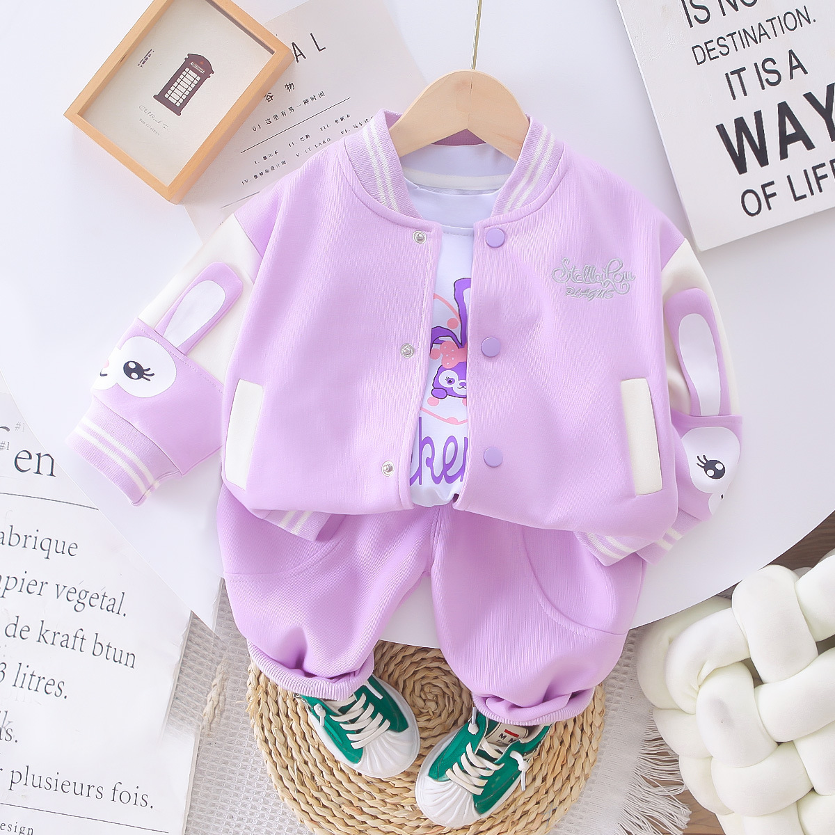 소녀의 봄 원피스 세트 2024 새로운 어린이 아기 서양식 야구 세트 스포츠 3 피스 어린이 가을 재킷스토어 가기