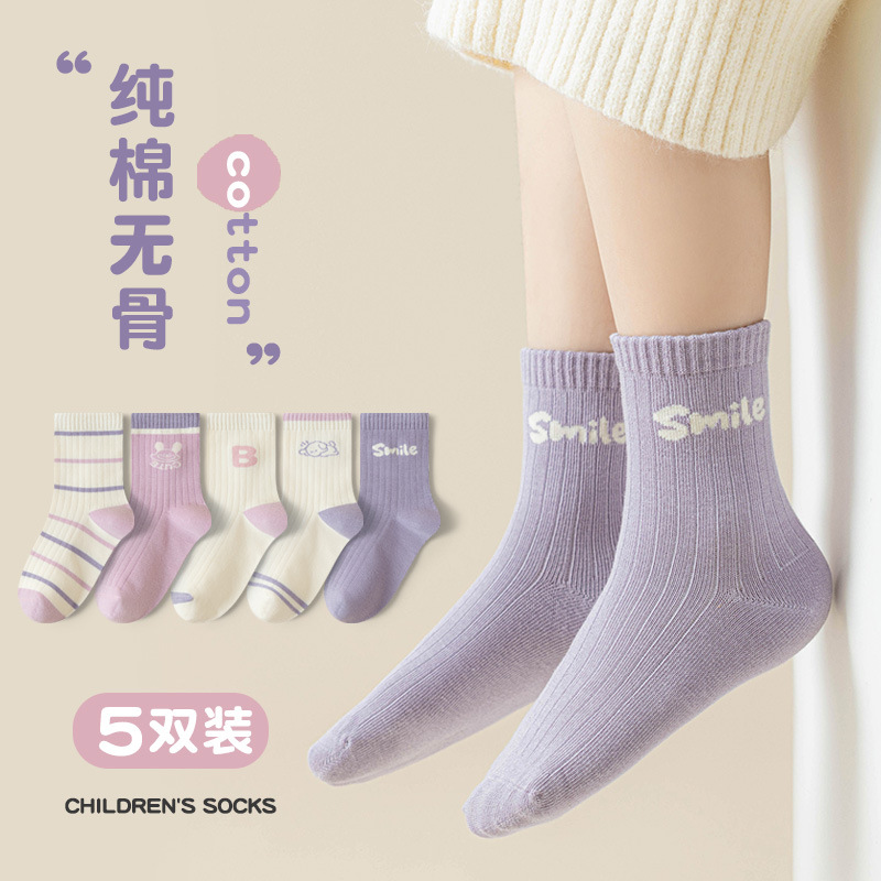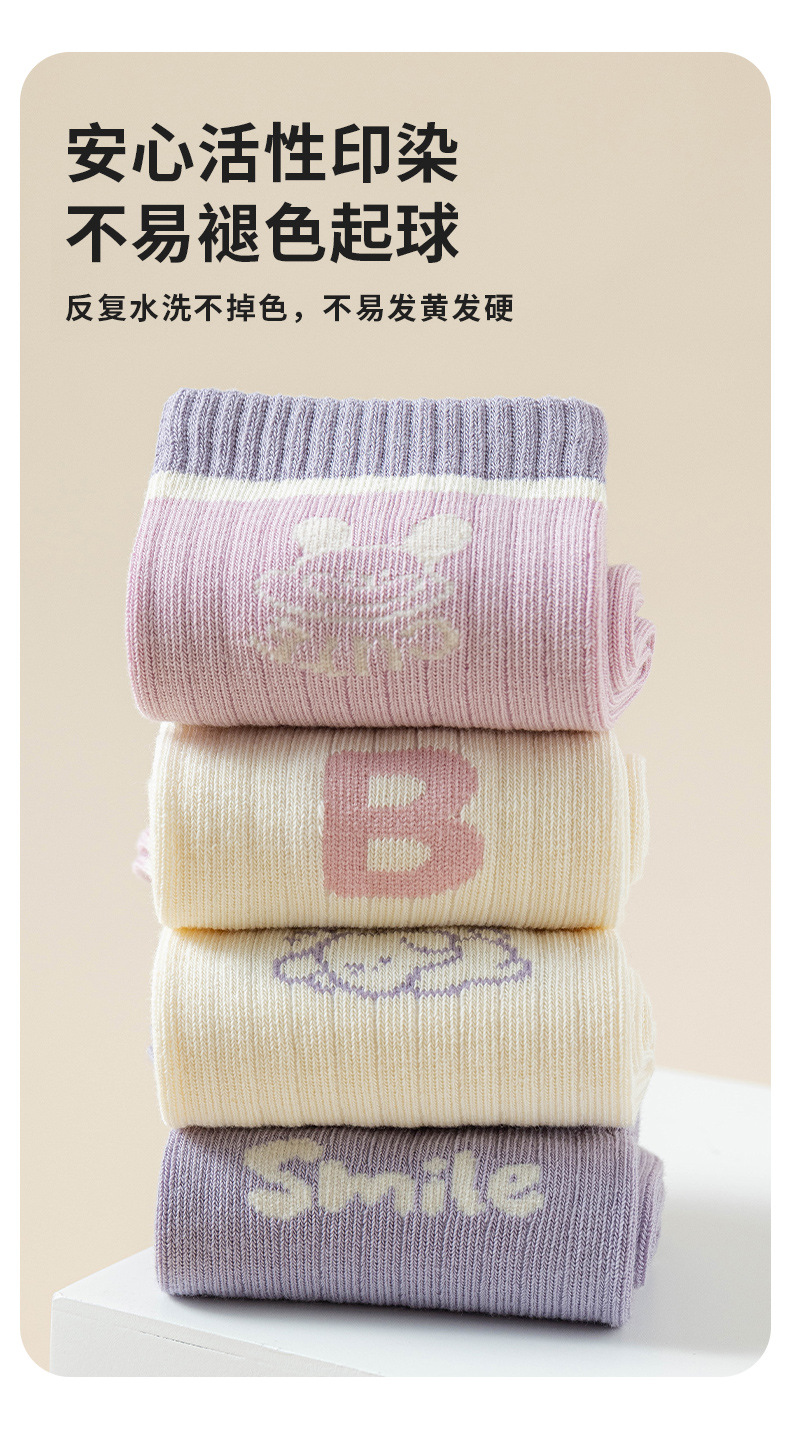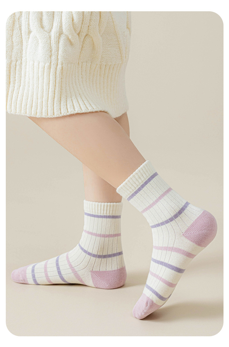 어린이 양말 만화 사탕 색 소녀 가을과 겨울 새로운 중간 튜브 양말 소녀 안티 필링 항균 학생면 양말