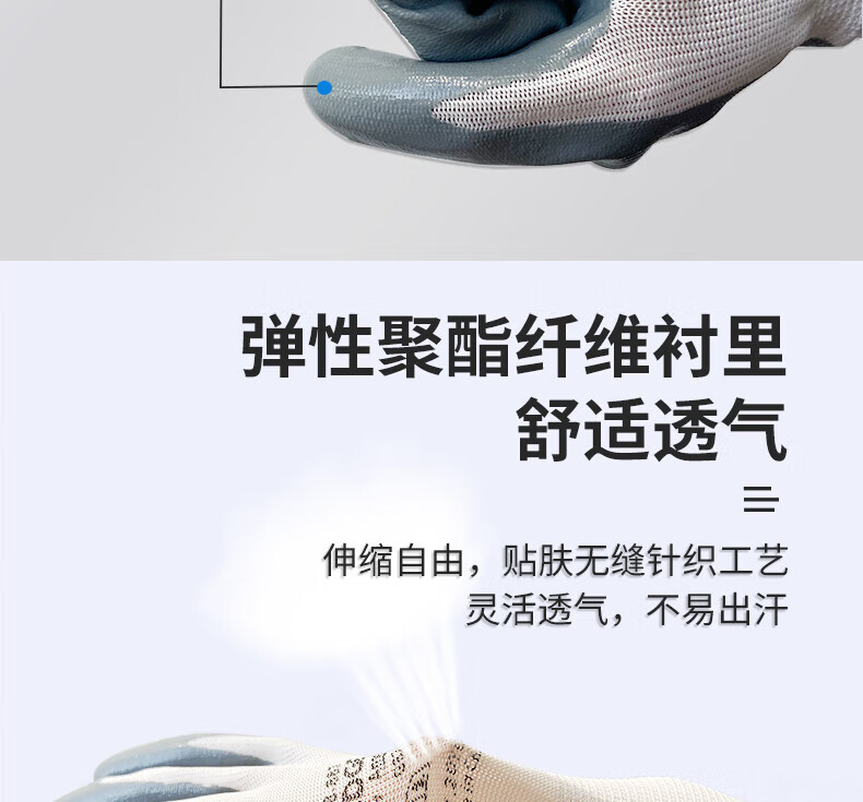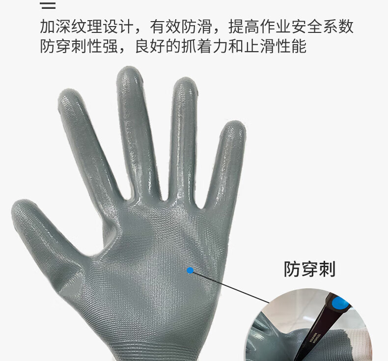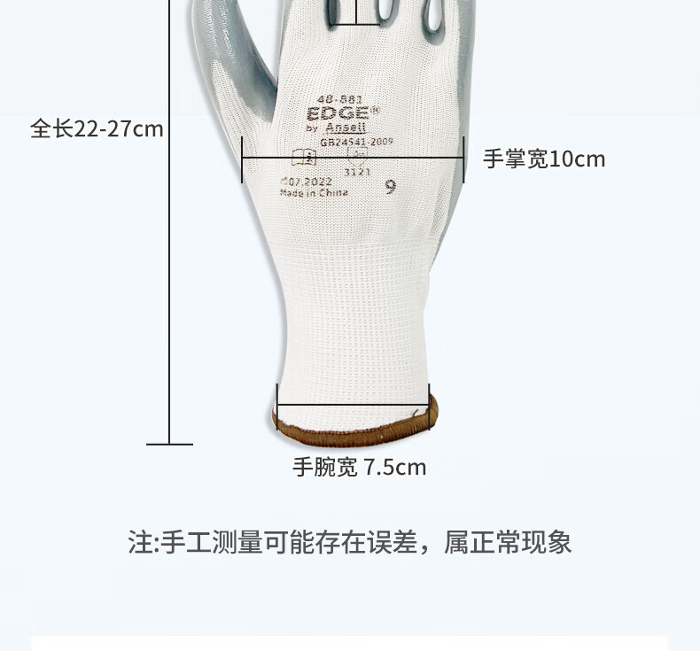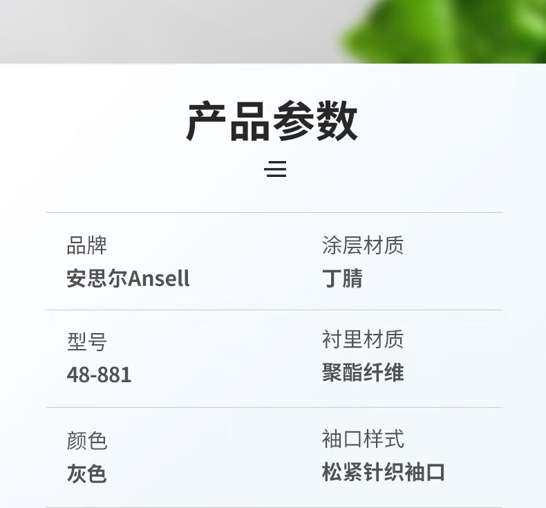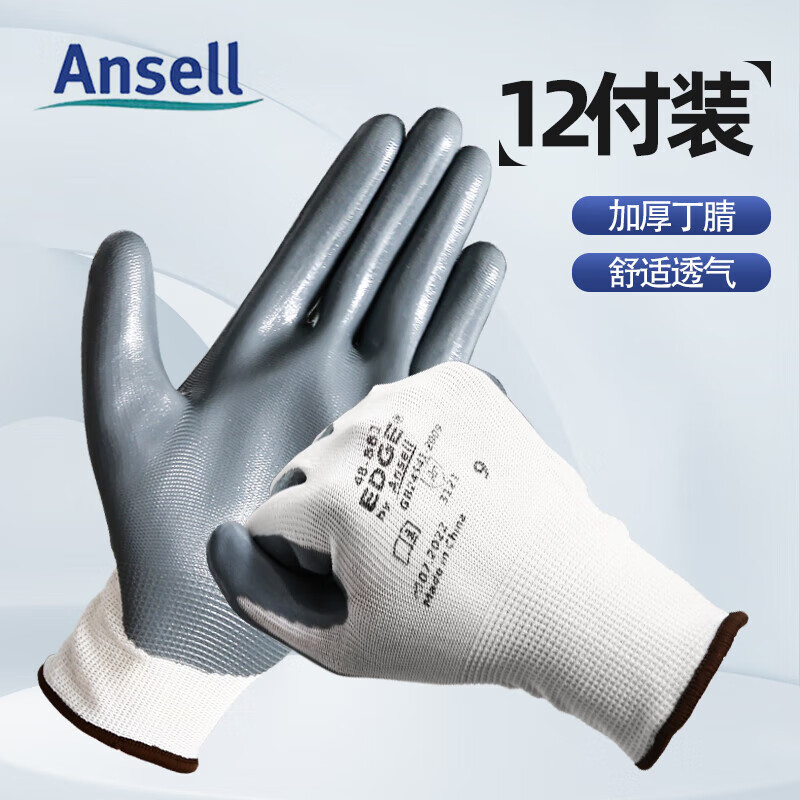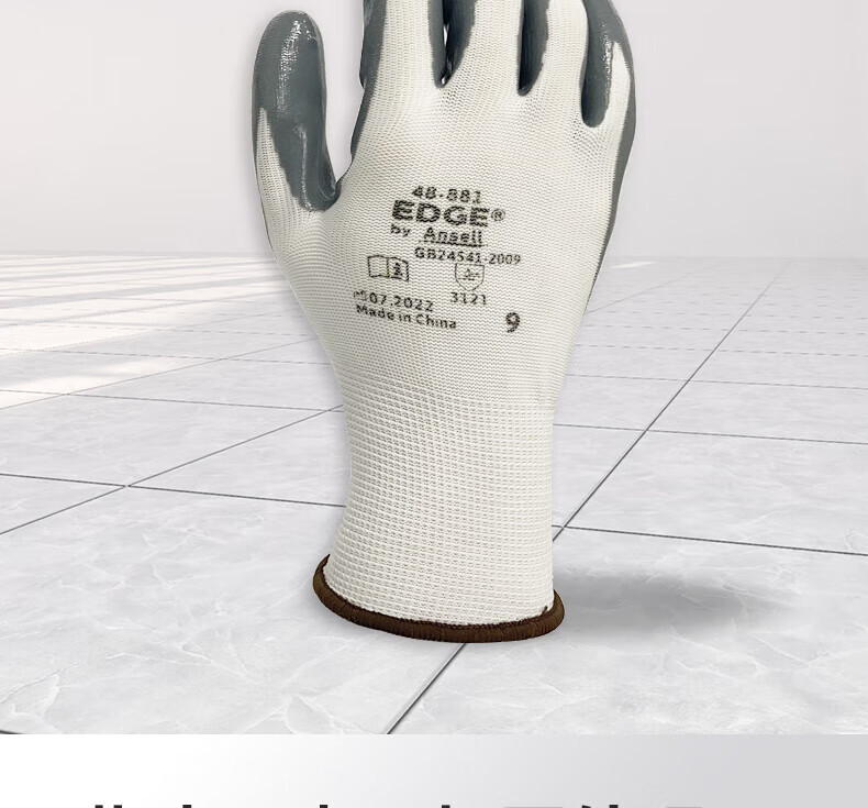 Ansel 48-881 장갑 노동 보호 니트릴 딥 반 매달린 고무 팜 접착제 안티 오일, 산 및 알칼리 저항, 내마모성 및 미끄럼 방지
