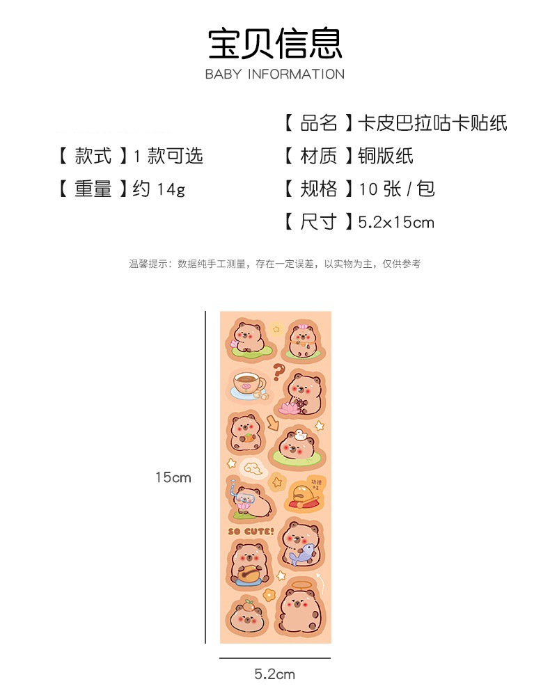 카피 발라 구 카드 스티커 어린이 DIY 스티커 애완 동물 방수 컵 스티커 귀여운 카피 바라 손 계정 스티커 도매