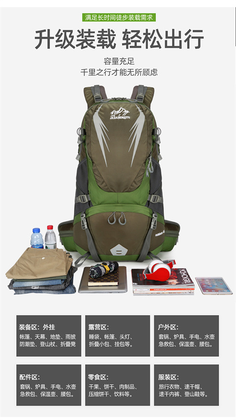 새로운 트렌드 야외 스포츠 하이킹 가방 캠핑 하이킹 배낭 다기능 패션 대용량 여행 가방스토어 가기
