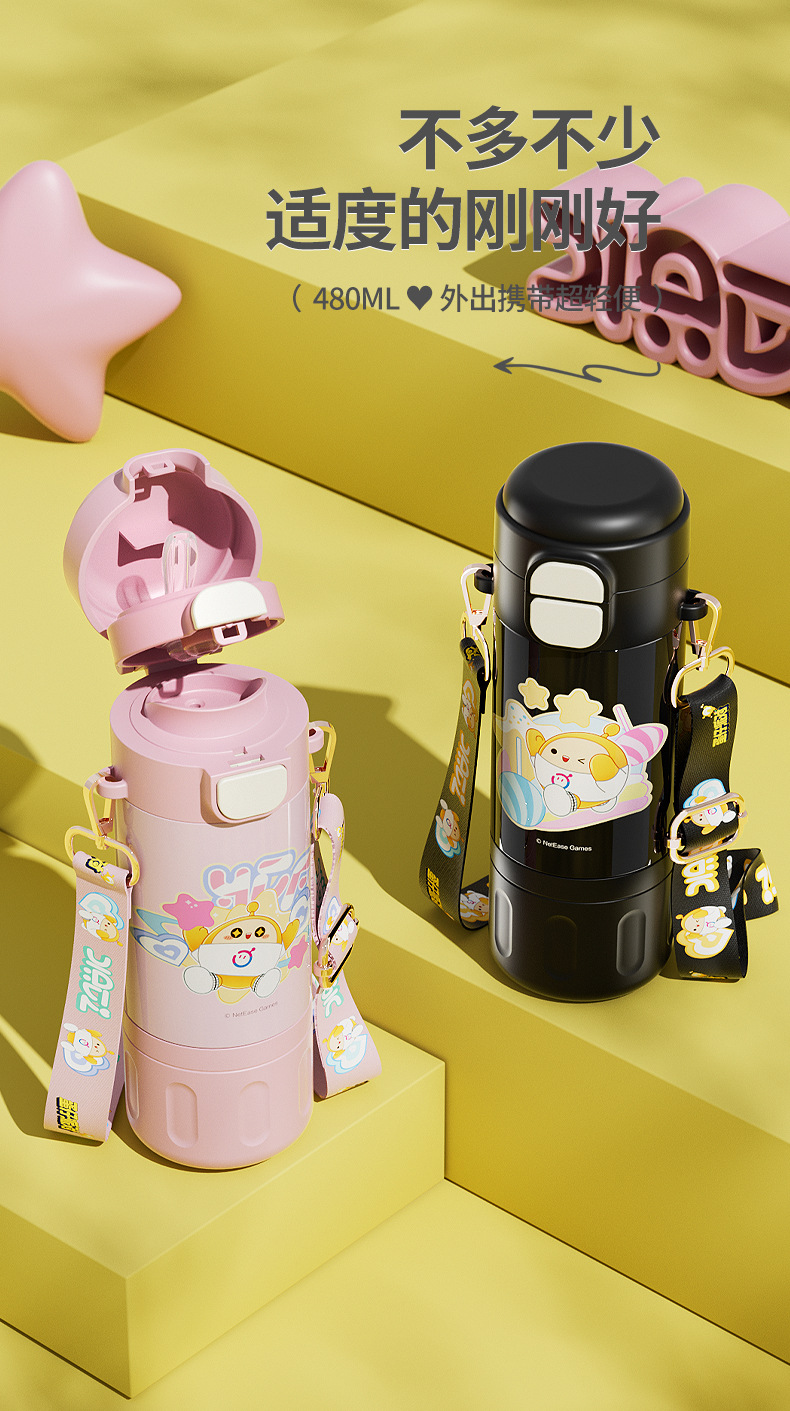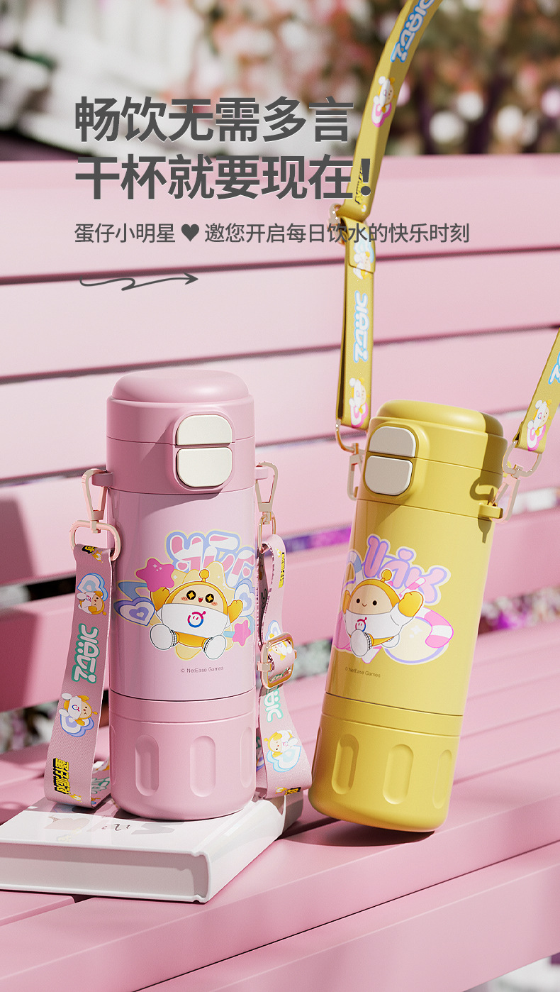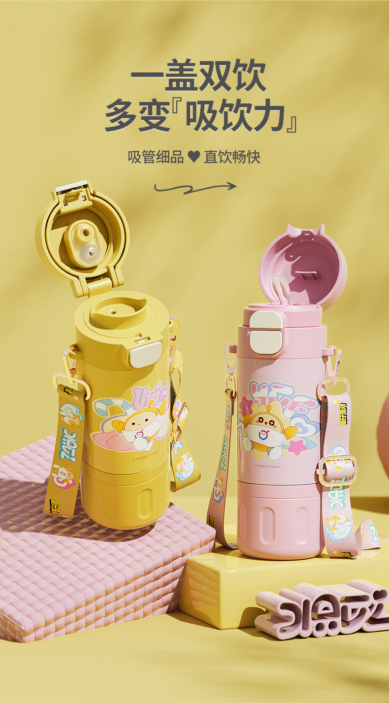 계란 파티 어린이 보온병 스테인레스 스틸 대용량 휴대용 밀짚 컵 소녀 높은 가치 귀여운 더블 음료스토어 가기