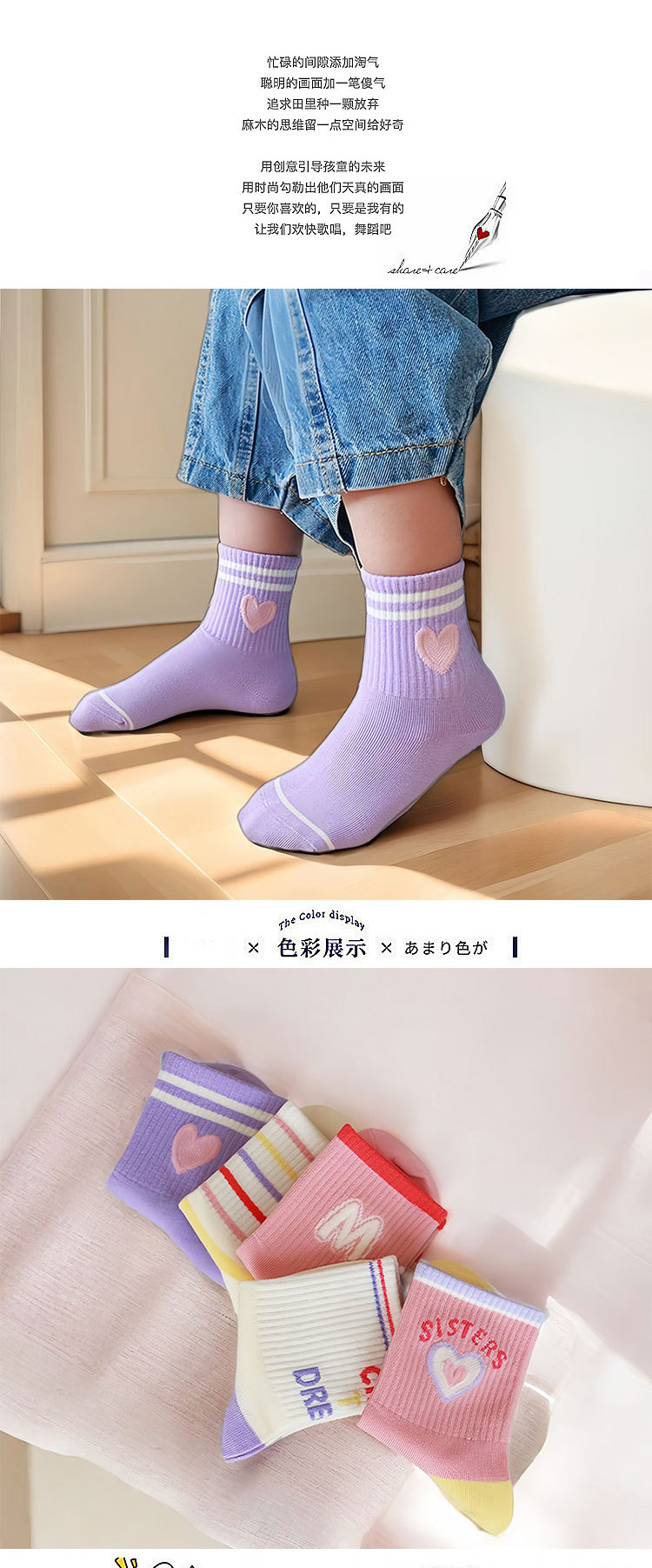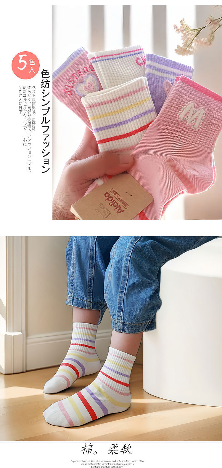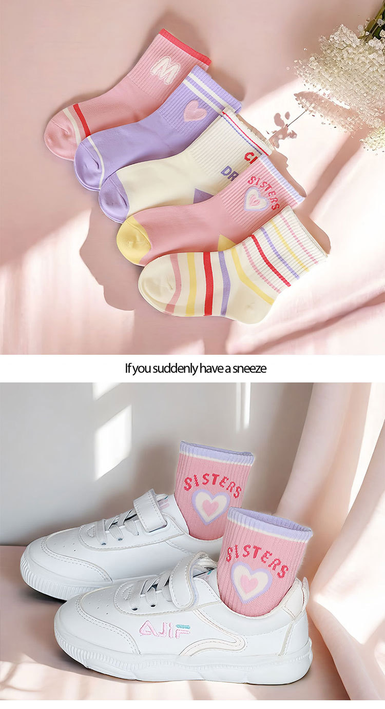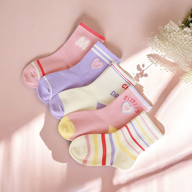 2024 여자 양말 가을 줄무늬 면 양말 어린이 중간 튜브 높은 고무 밴드 조수 양말 사랑 핑크 긴 튜브 스포츠 양말