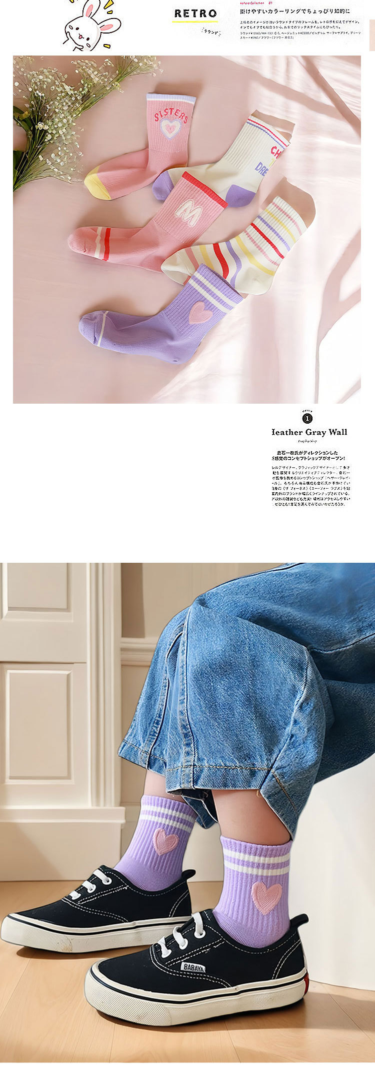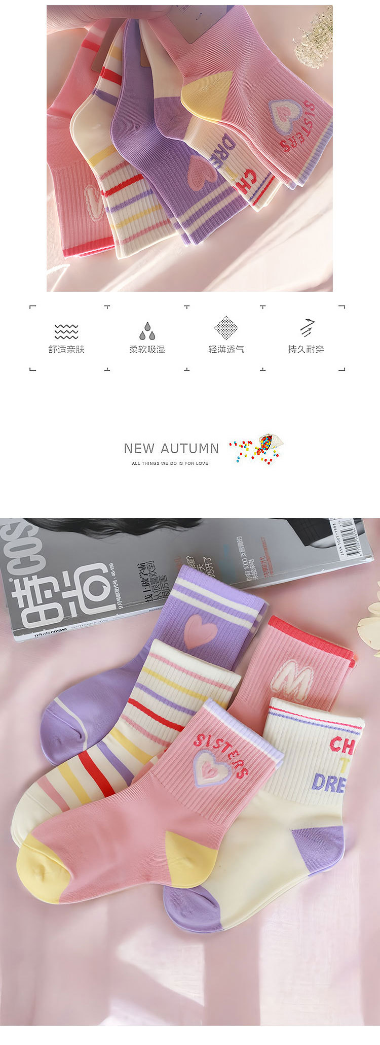 2024 여자 양말 가을 줄무늬 면 양말 어린이 중간 튜브 높은 고무 밴드 조수 양말 사랑 핑크 긴 튜브 스포츠 양말스토어 가기