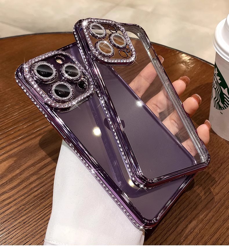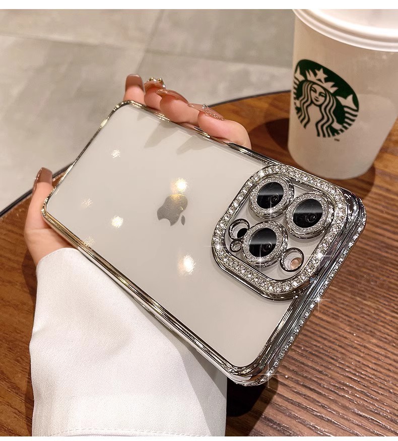 iPhone17PROMAX 휴대폰 케이스에 적합 라인스톤 렌즈 필름 Apple 14 전기 도금 소프트 쉘 투명 낙하 방지 13 신규