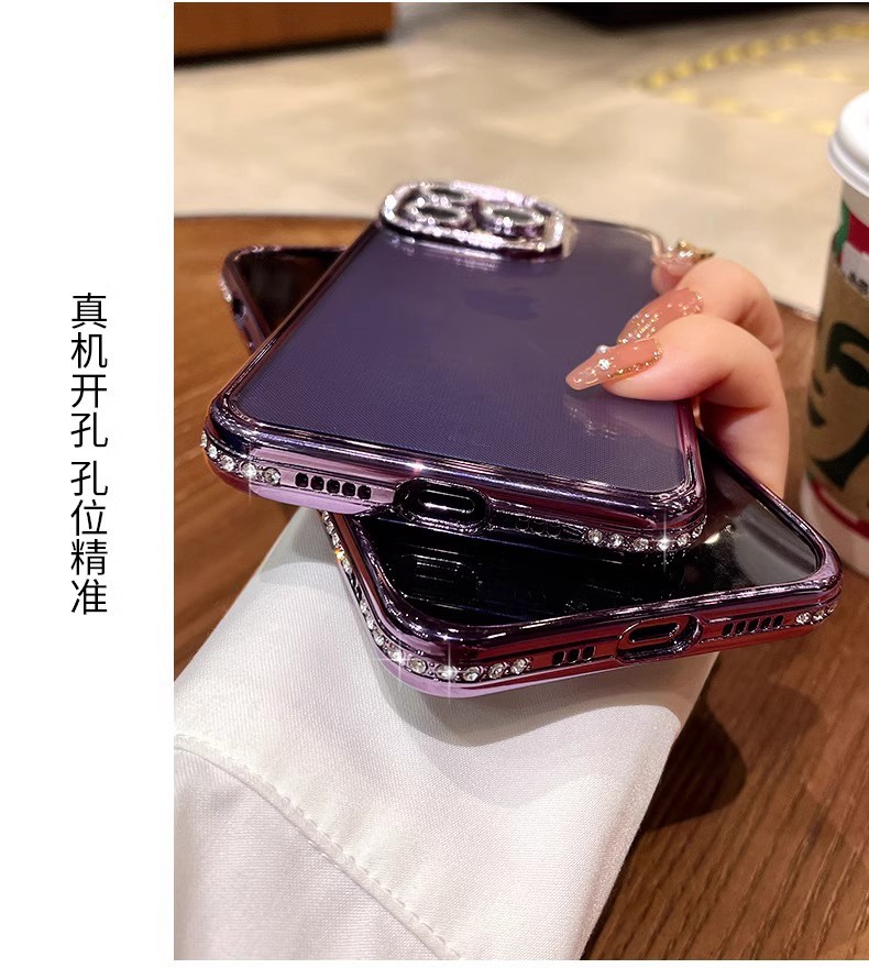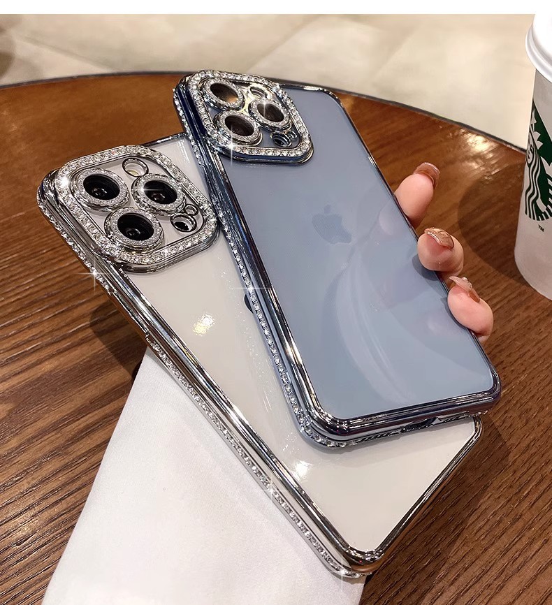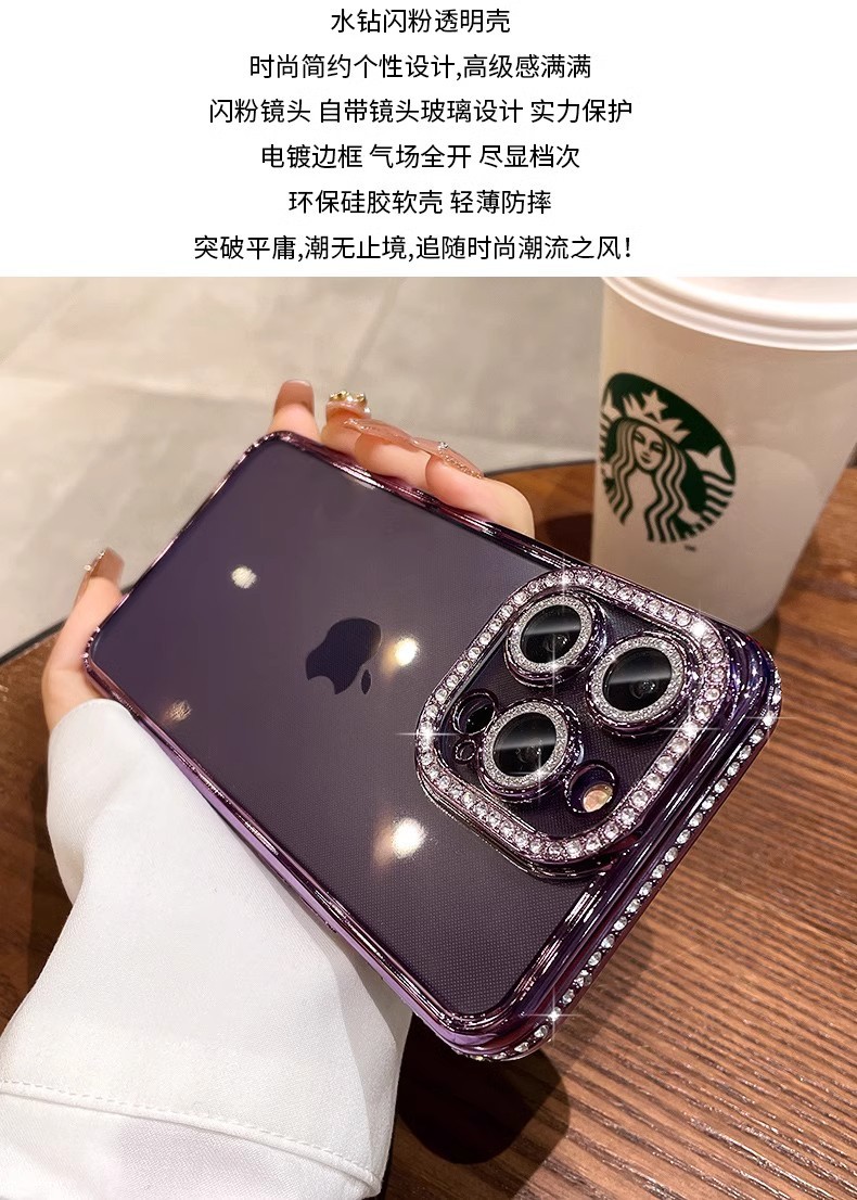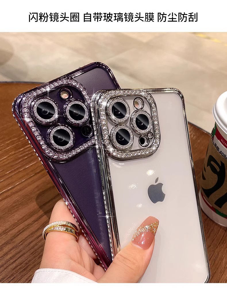 iPhone17PROMAX 휴대폰 케이스에 적합 라인스톤 렌즈 필름 Apple 14 전기 도금 소프트 쉘 투명 낙하 방지 13 신규스토어 가기