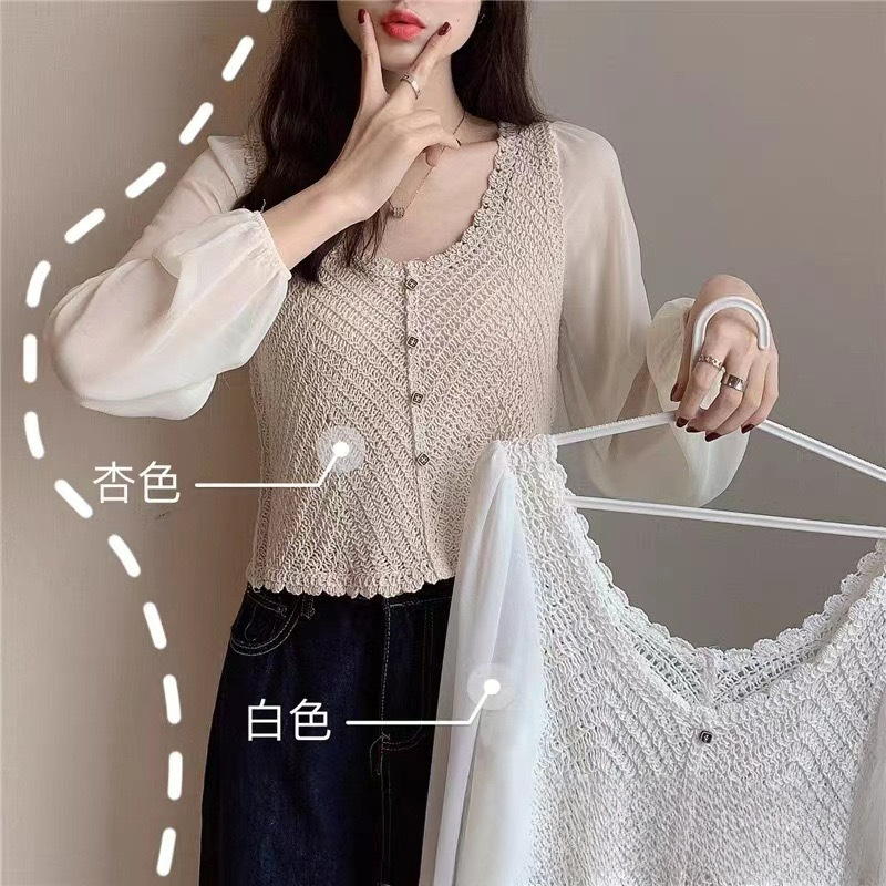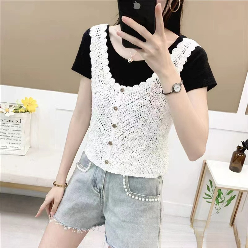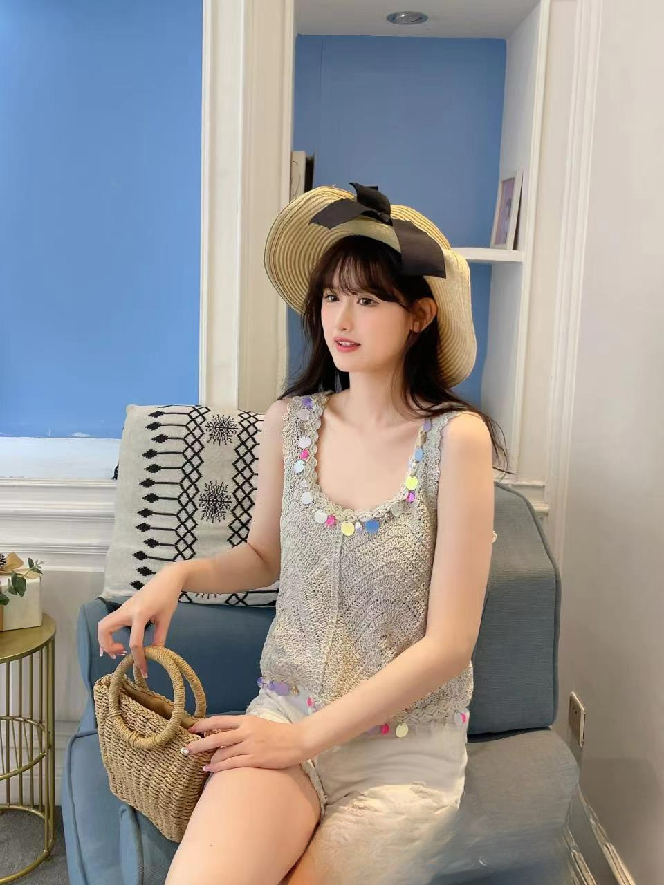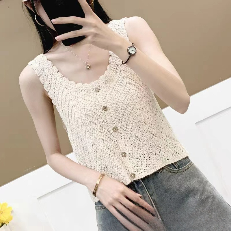 민족 스타일의 세퀸 레트로 U-넥 조끼 여성 여름 디자인 센스 민소매 짧은 달콤한 니트 작은 슬링 탑스토어 가기