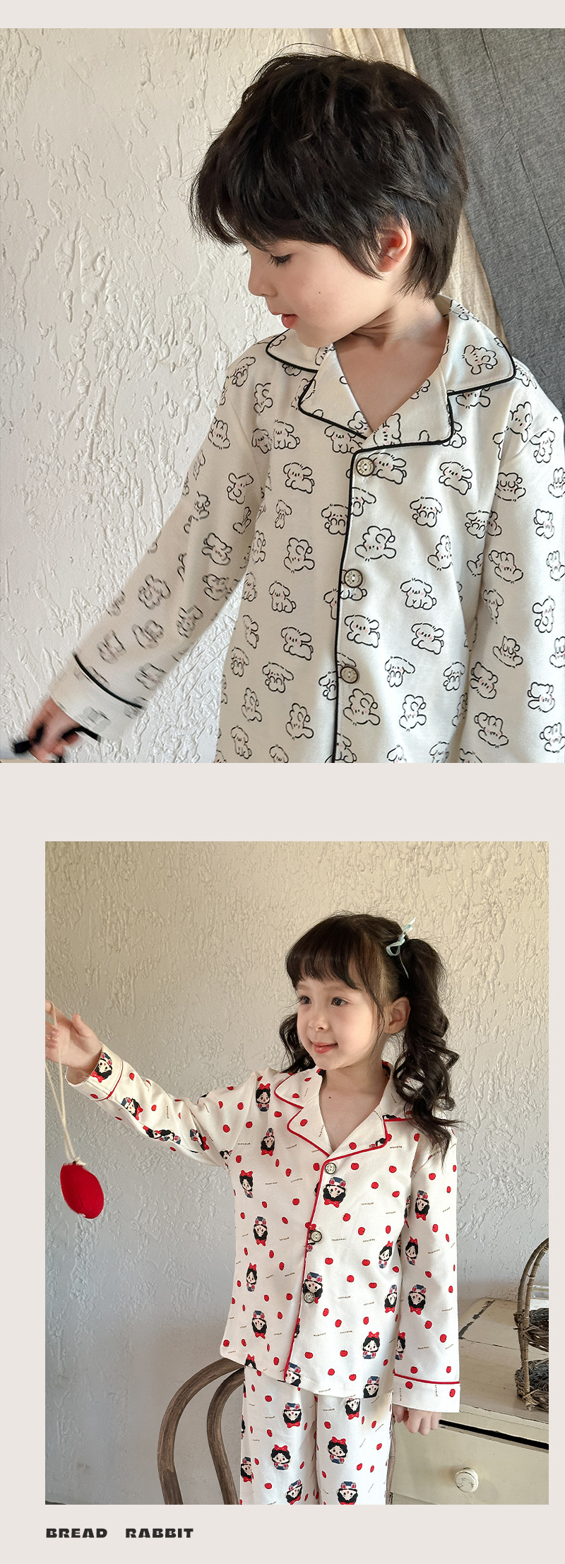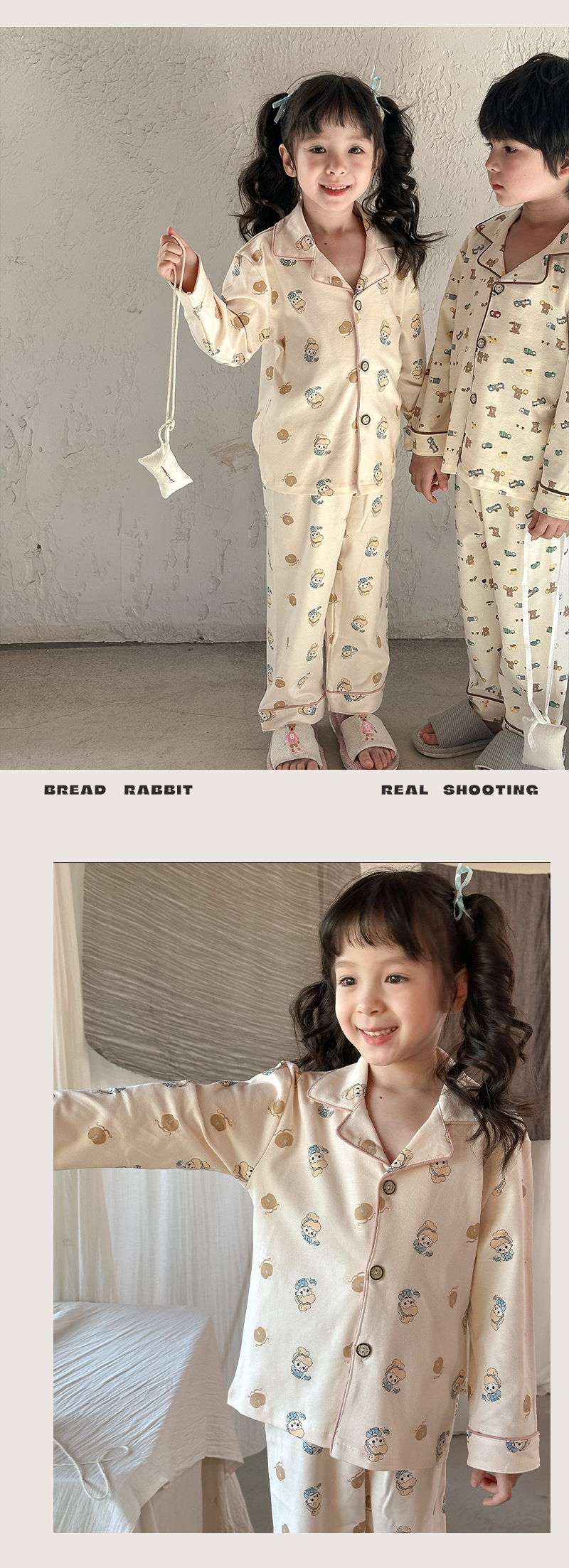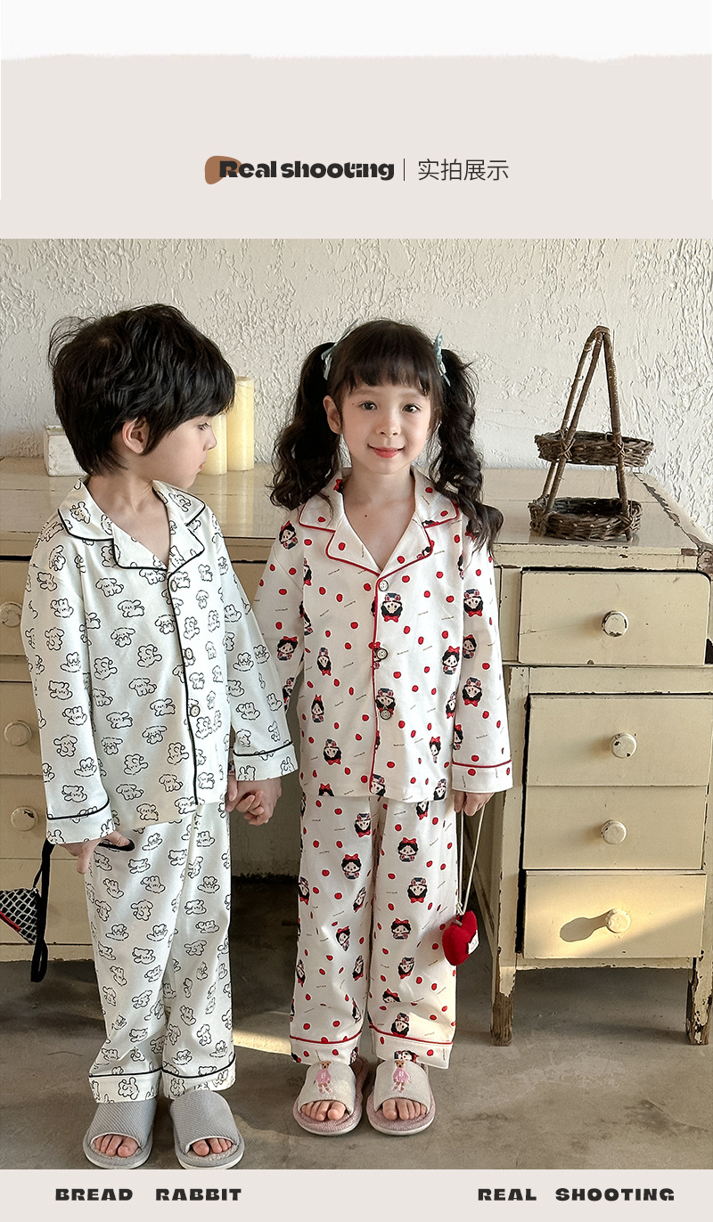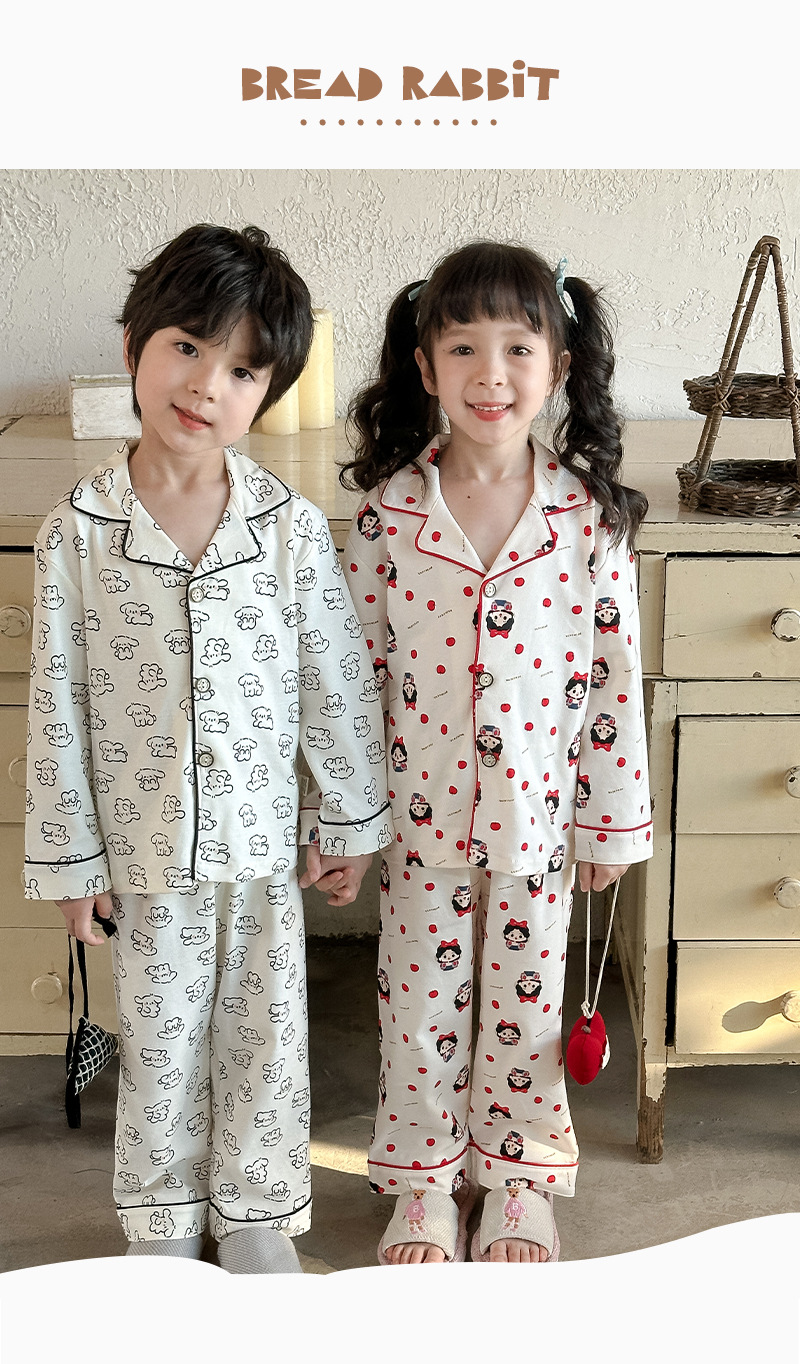 어린이 가정 의류 세트 2024 가을 새 소년 소녀 100 면 잠옷 큰 어린이 옷깃 세트스토어 가기