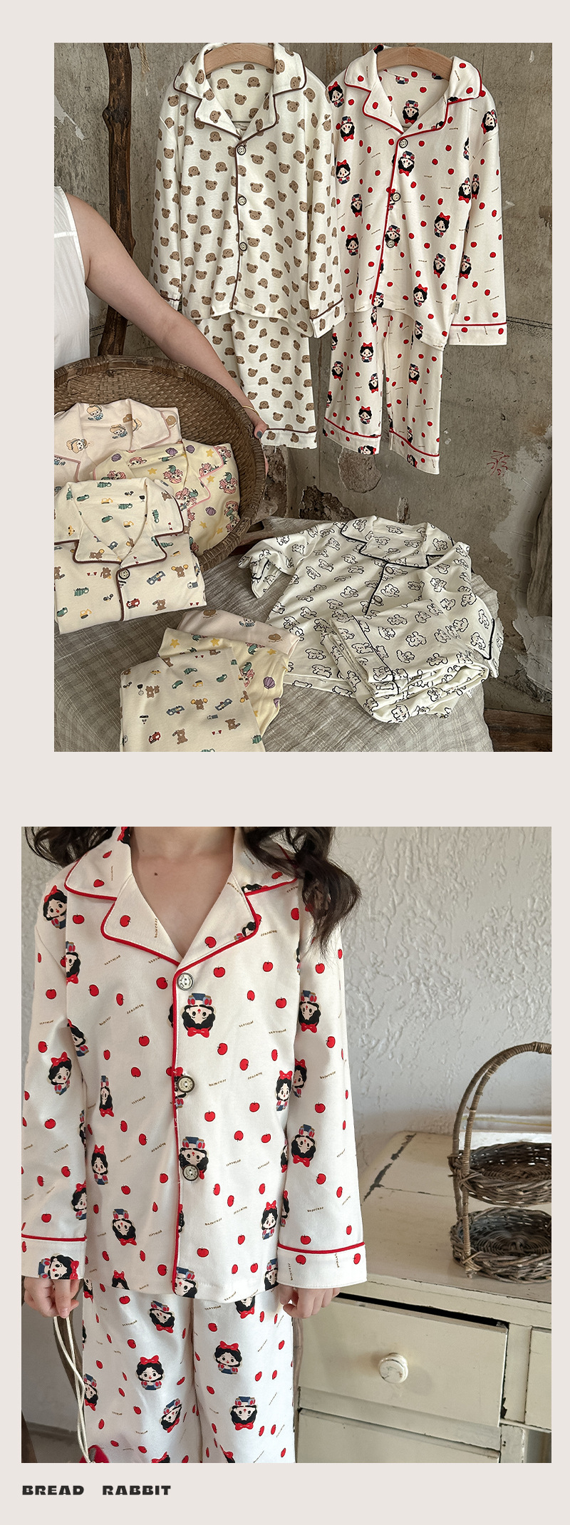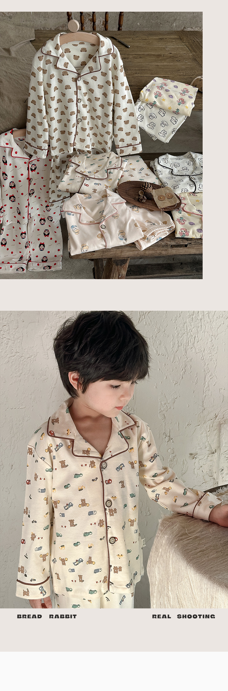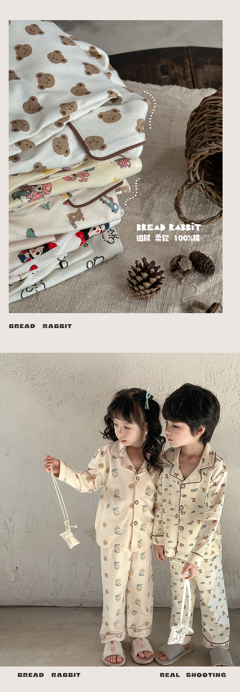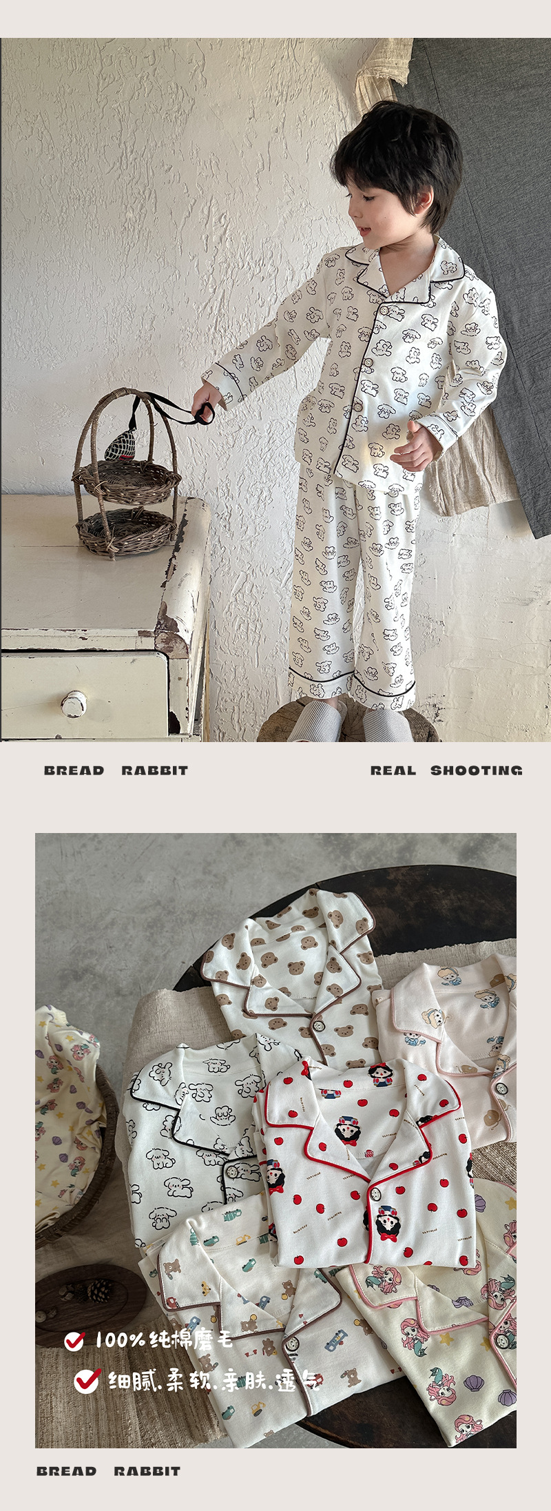 어린이 가정 의류 세트 2024 가을 새 소년 소녀 100 면 잠옷 큰 어린이 옷깃 세트스토어 가기