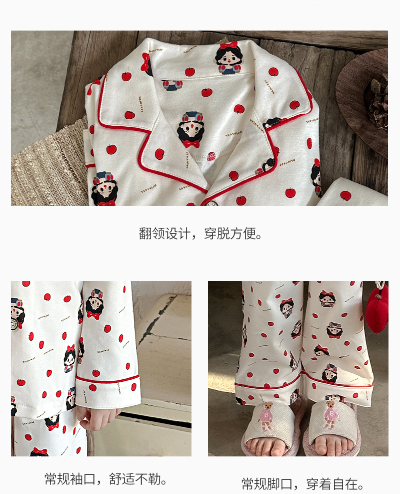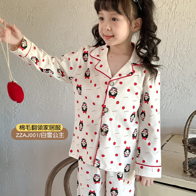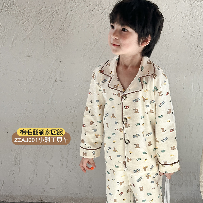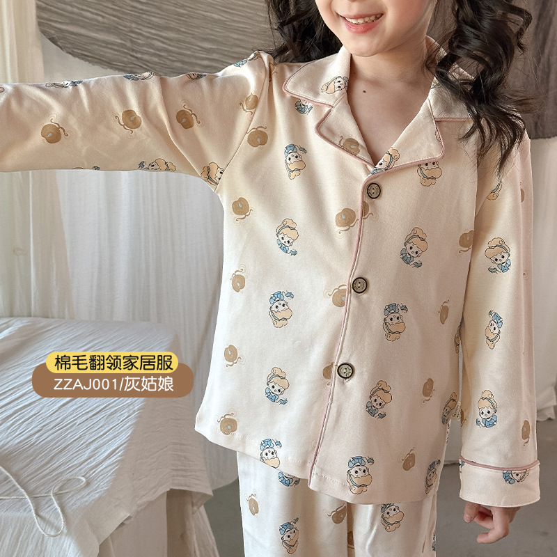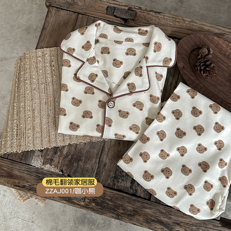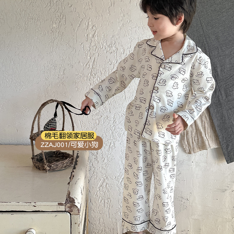 어린이 가정 의류 세트 2024 가을 새 소년 소녀 100 면 잠옷 큰 어린이 옷깃 세트