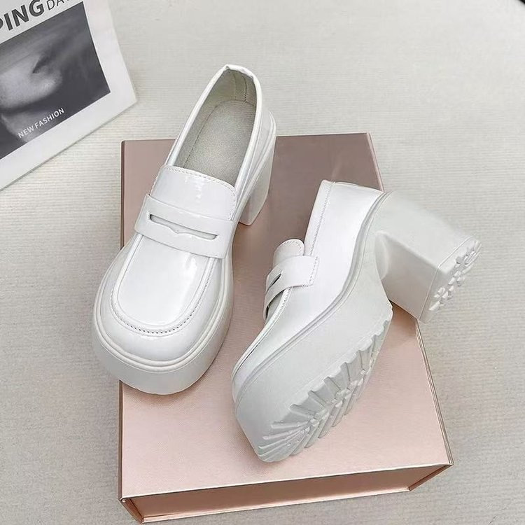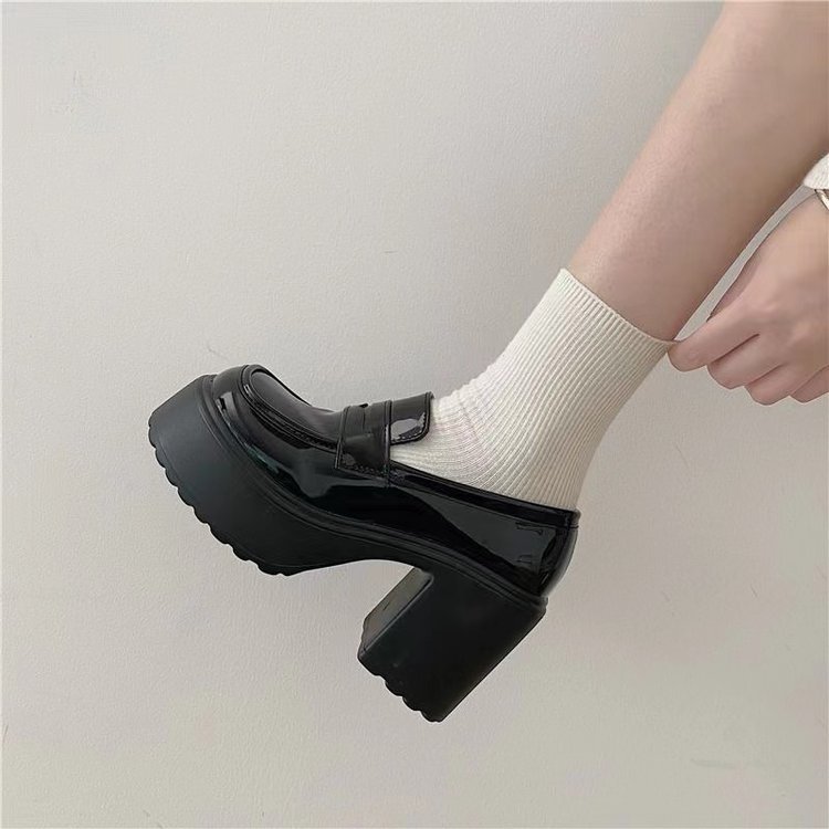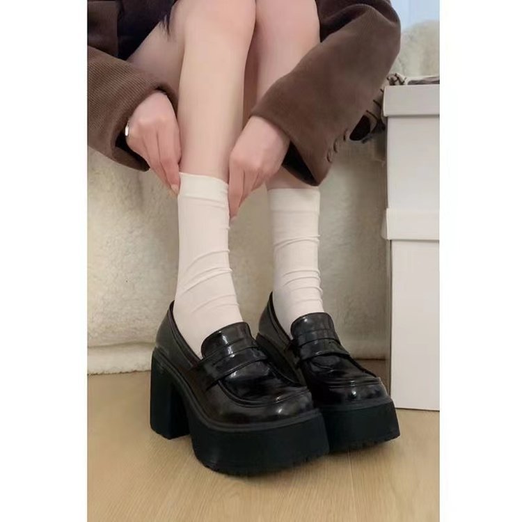 2025 가을 겨울 두꺼운 굽 블랙 로퍼 여성 하이힐 신상 프렌치 레트로 jk 가죽 신발 여성용 작은 가죽 신발