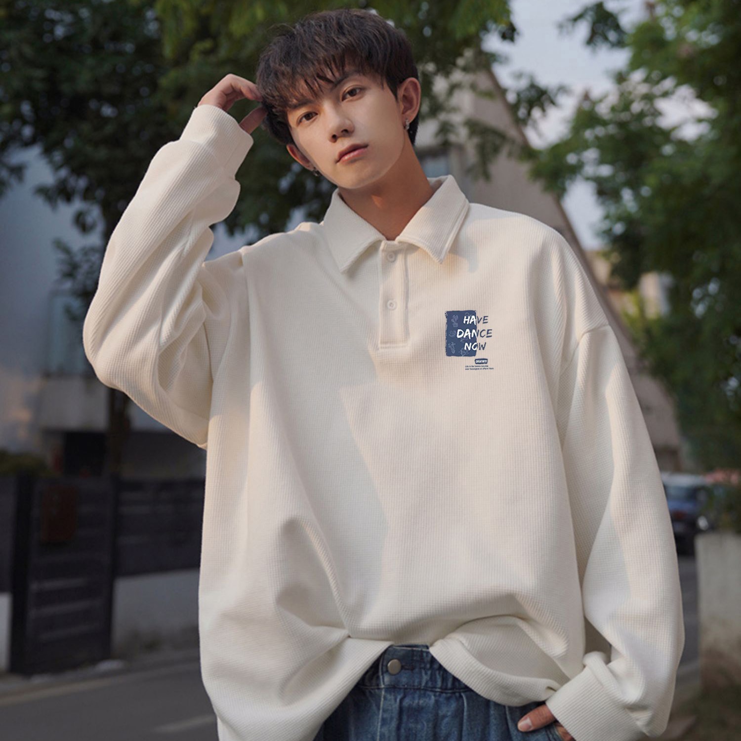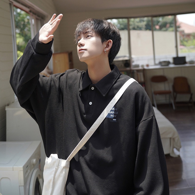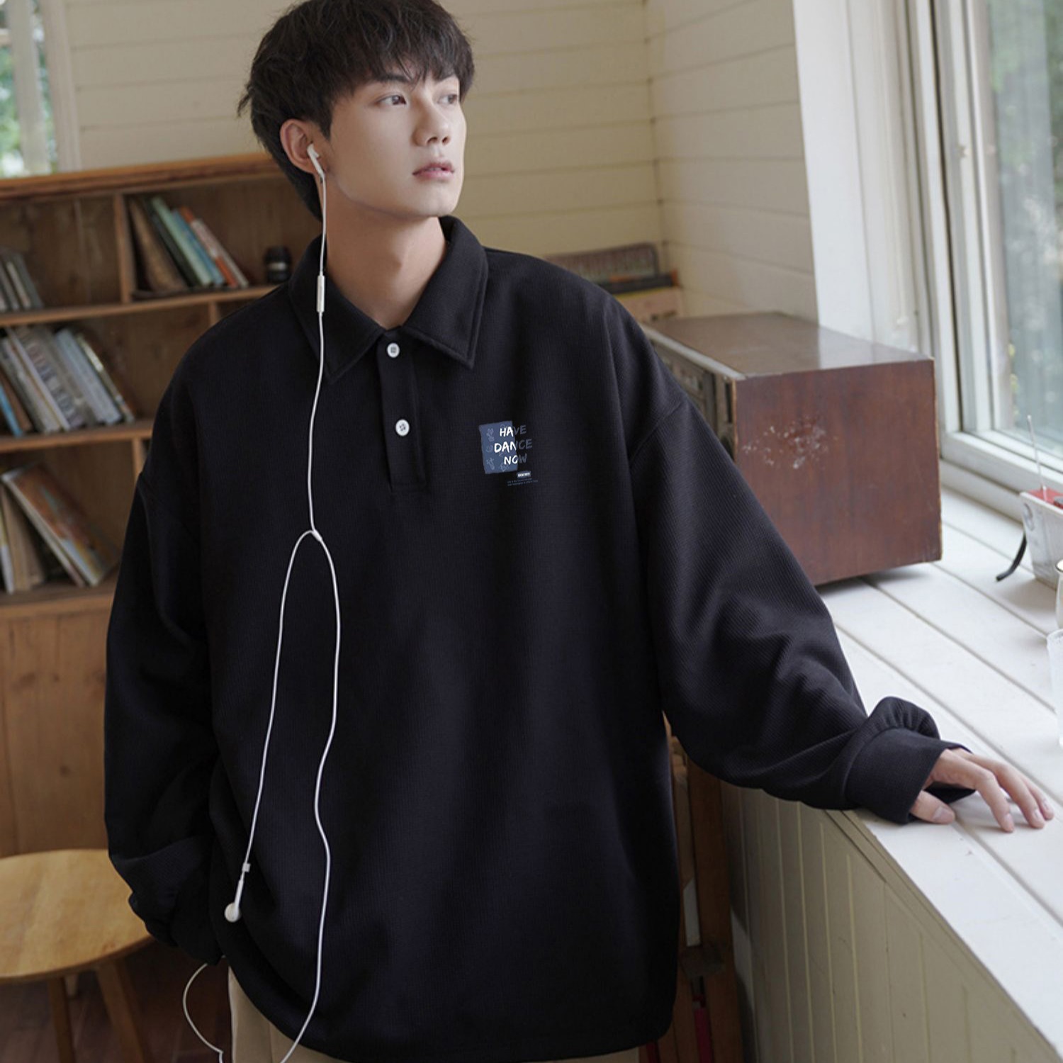 남성용 폴로 셔츠 가을 느슨한 유행 간단한 터피 핸섬 옷깃 스웨터 2024 미국 캐주얼 긴 소매 티셔츠스토어 가기