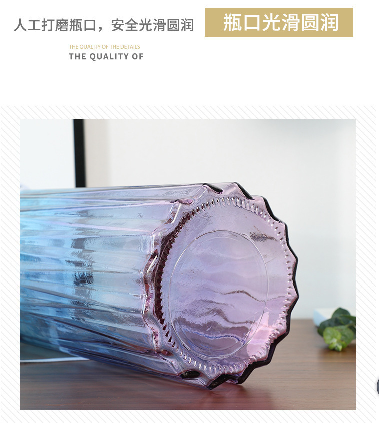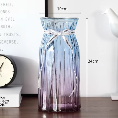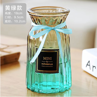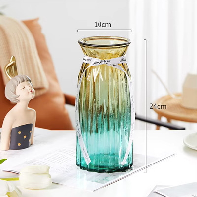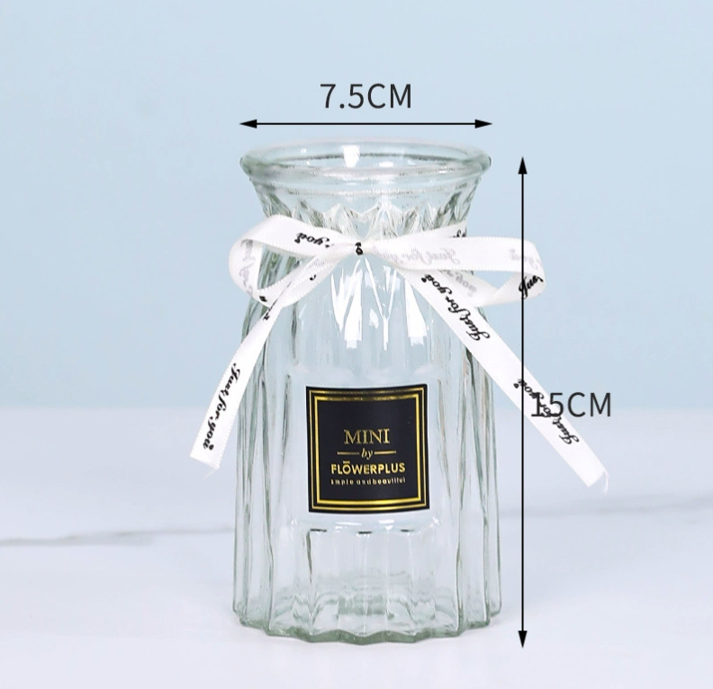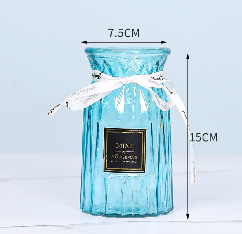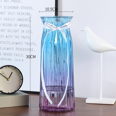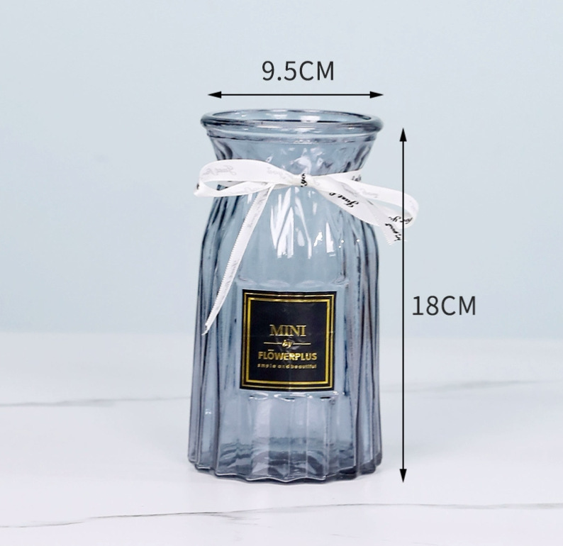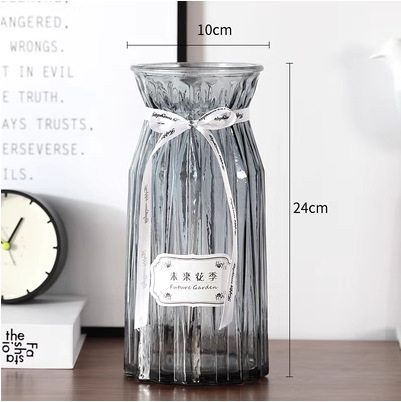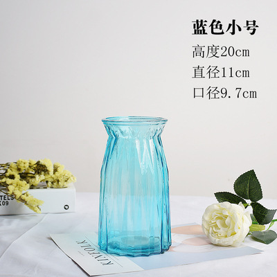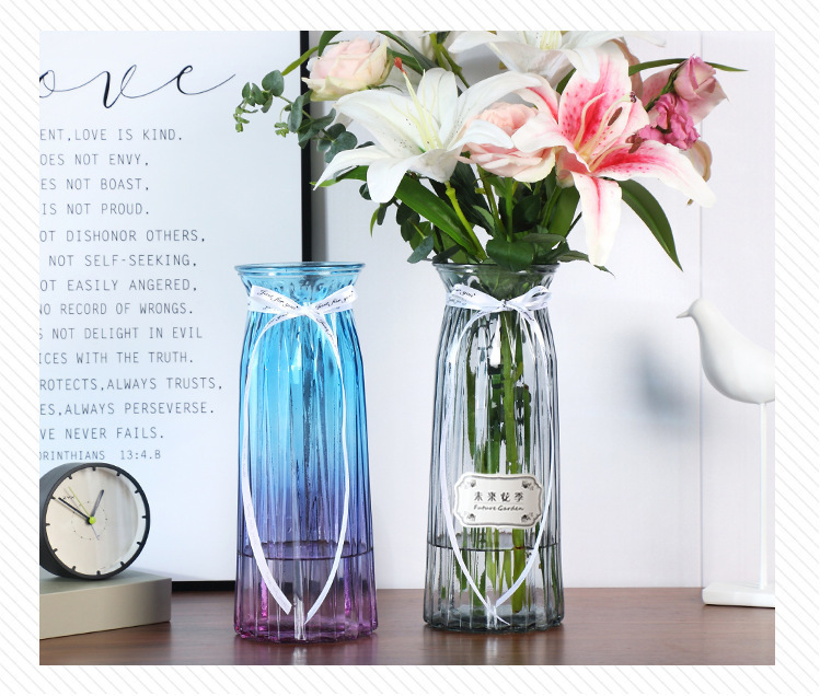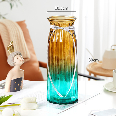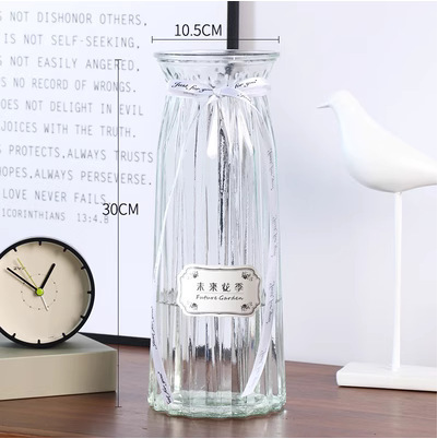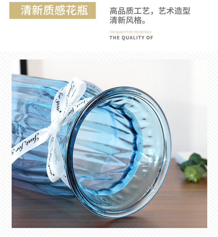 두꺼운 유럽식 수경재배 대형 세로줄무늬 꽃병, 접이식 유리 투명 창의적인 분재대나무 거실 장식품, 새로운 중국 스타일스토어 가기