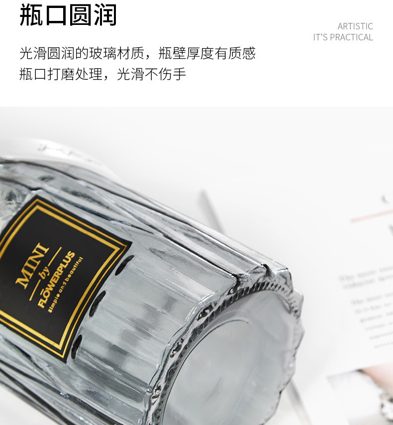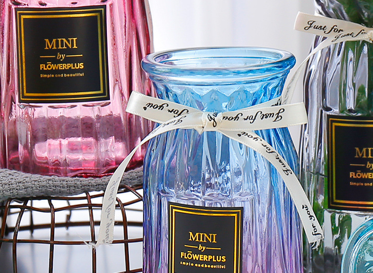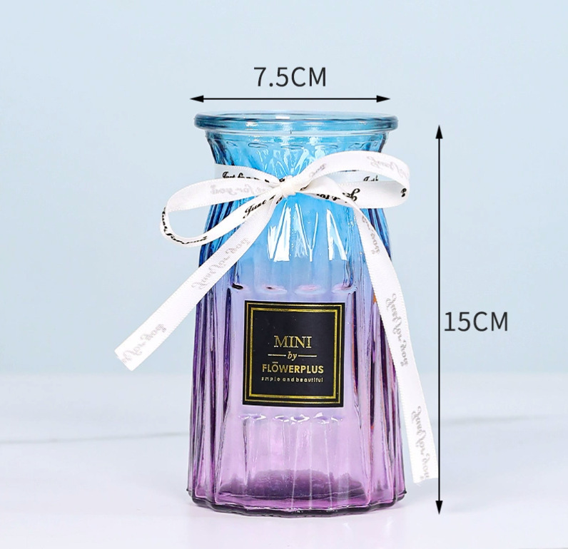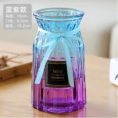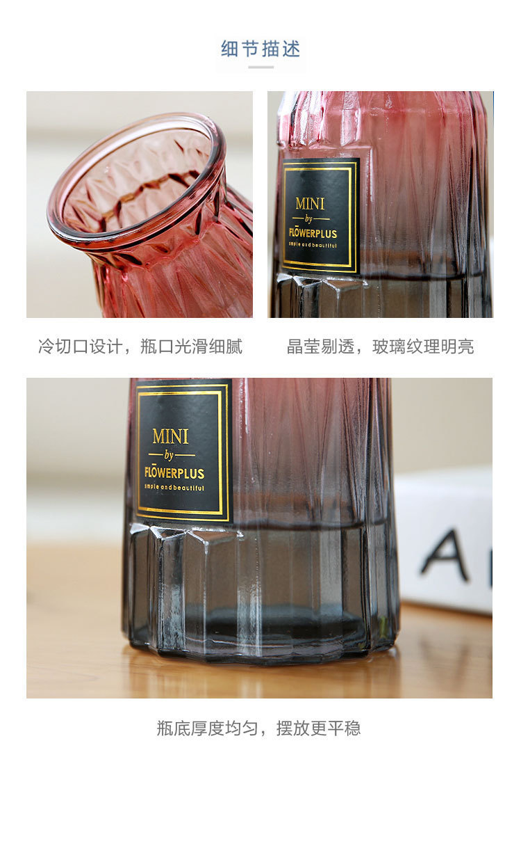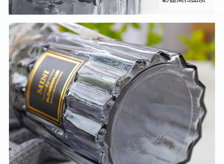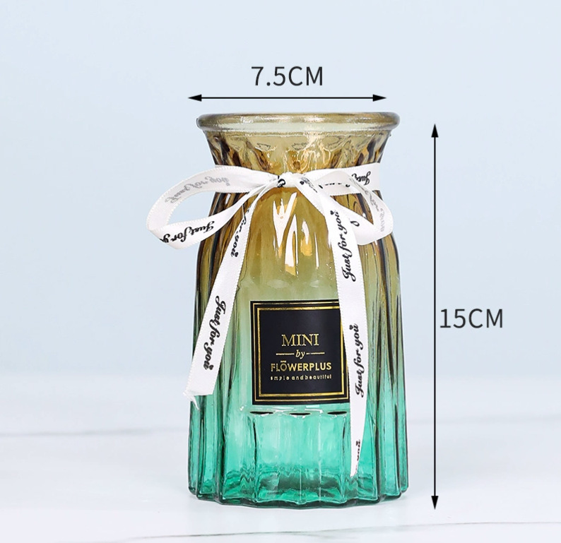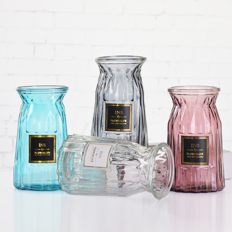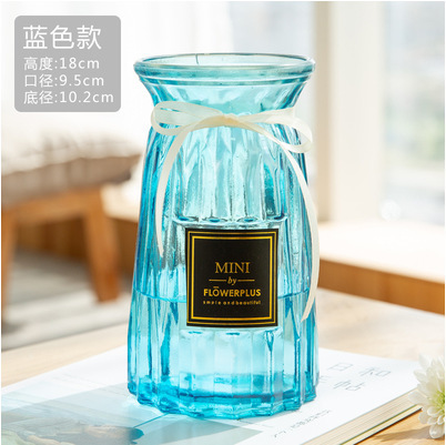 두꺼운 유럽식 수경재배 대형 세로줄무늬 꽃병, 접이식 유리 투명 창의적인 분재대나무 거실 장식품, 새로운 중국 스타일스토어 가기