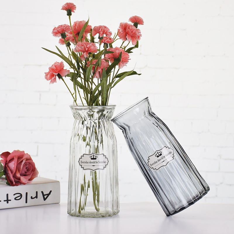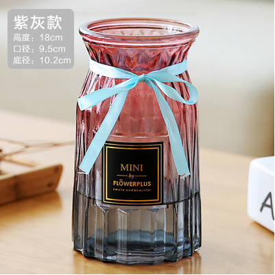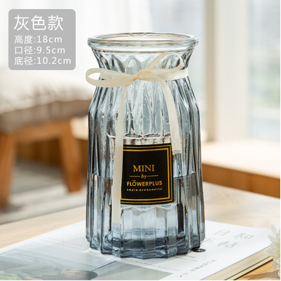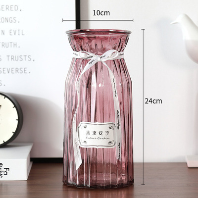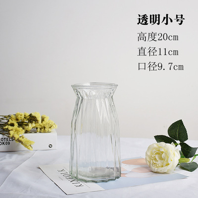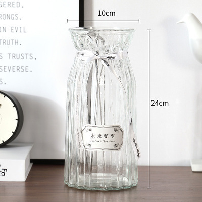 두꺼운 유럽식 수경재배 대형 세로줄무늬 꽃병, 접이식 유리 투명 창의적인 분재대나무 거실 장식품, 새로운 중국 스타일