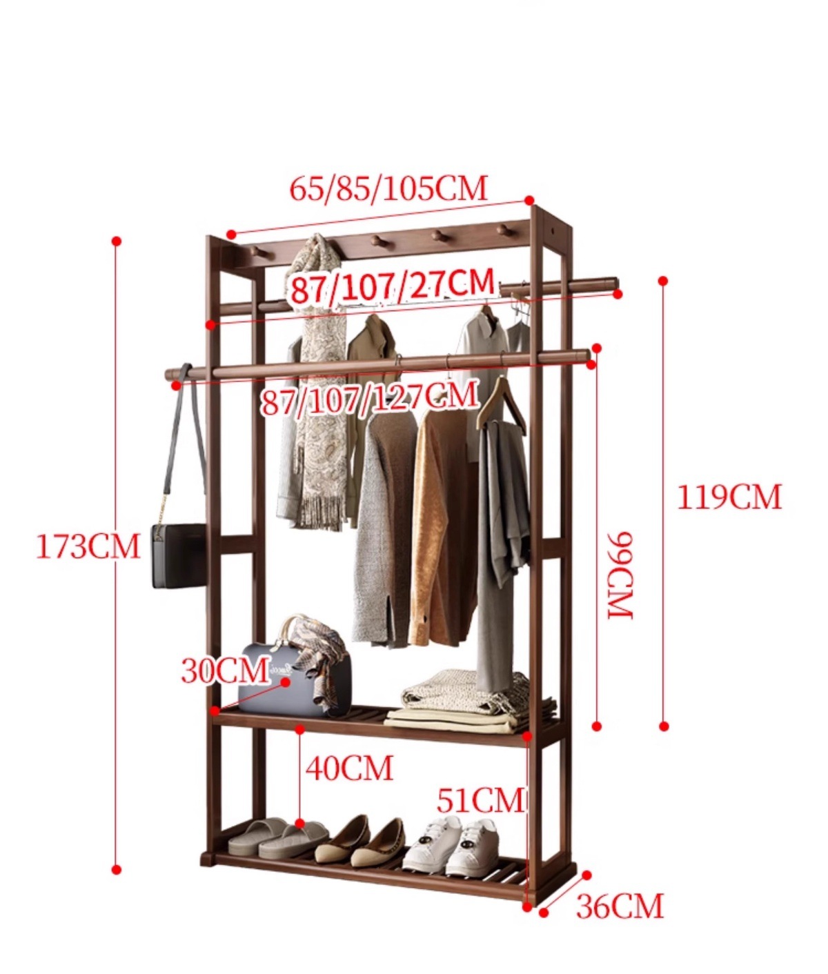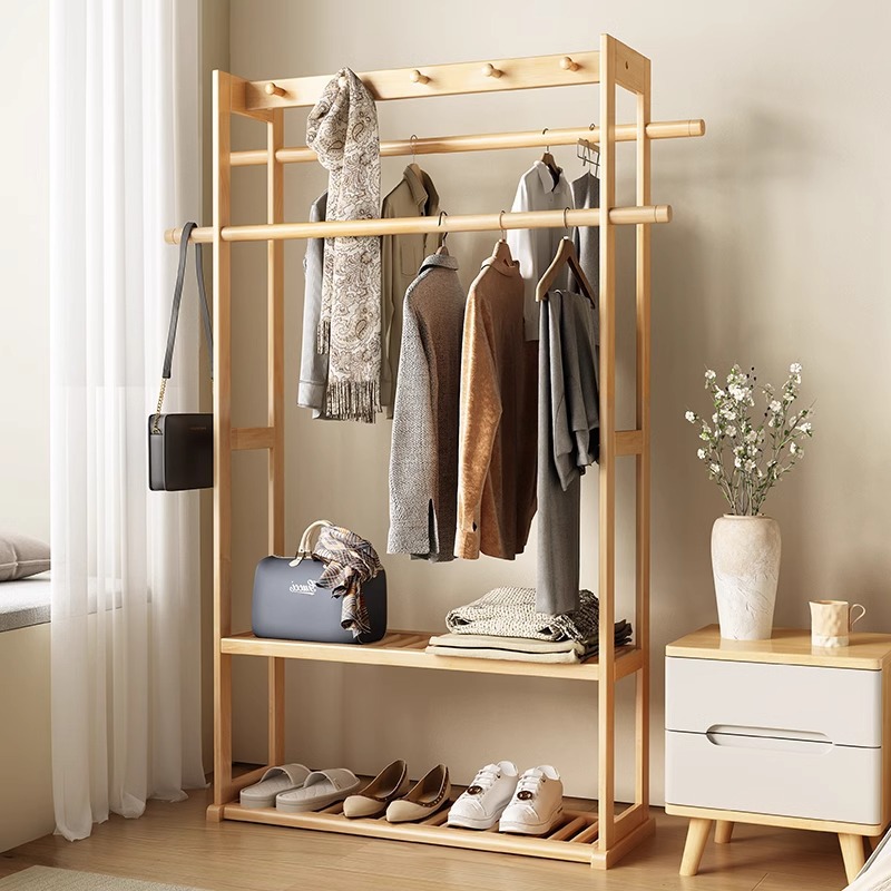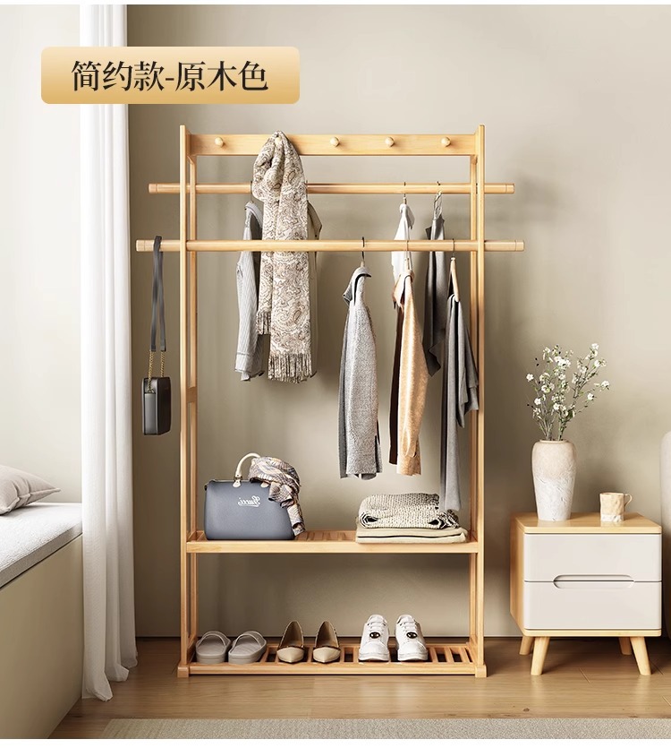 새로운 중국 스타일 솔리드 우드 코트 랙 가정용 작은 아파트 편리한 이동식 바닥 걸이 보관 랙 간단한 가벼운 럭셔리스토어 가기