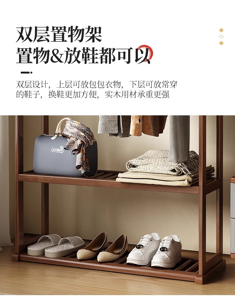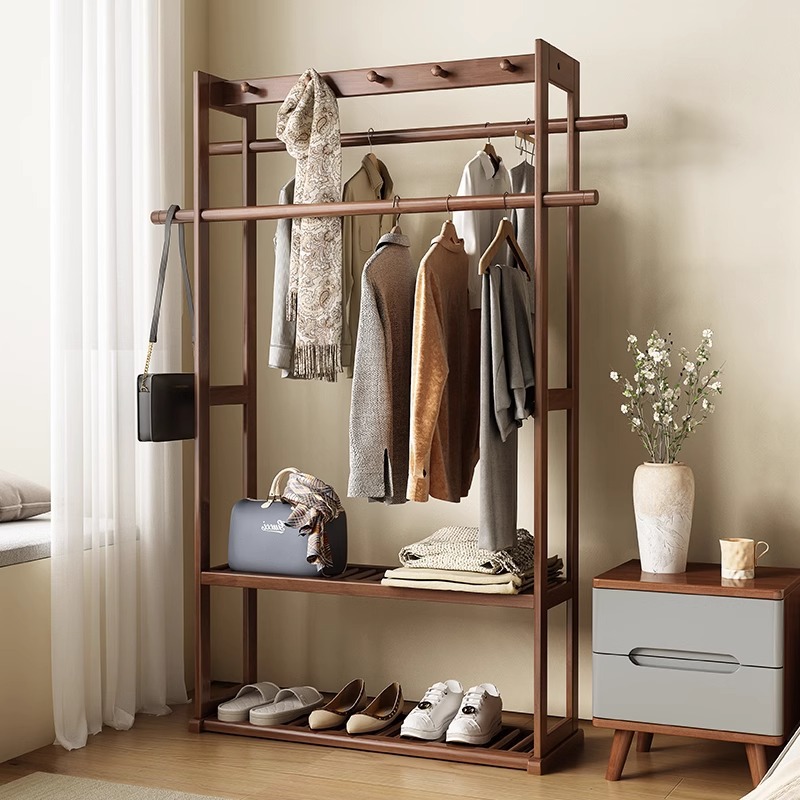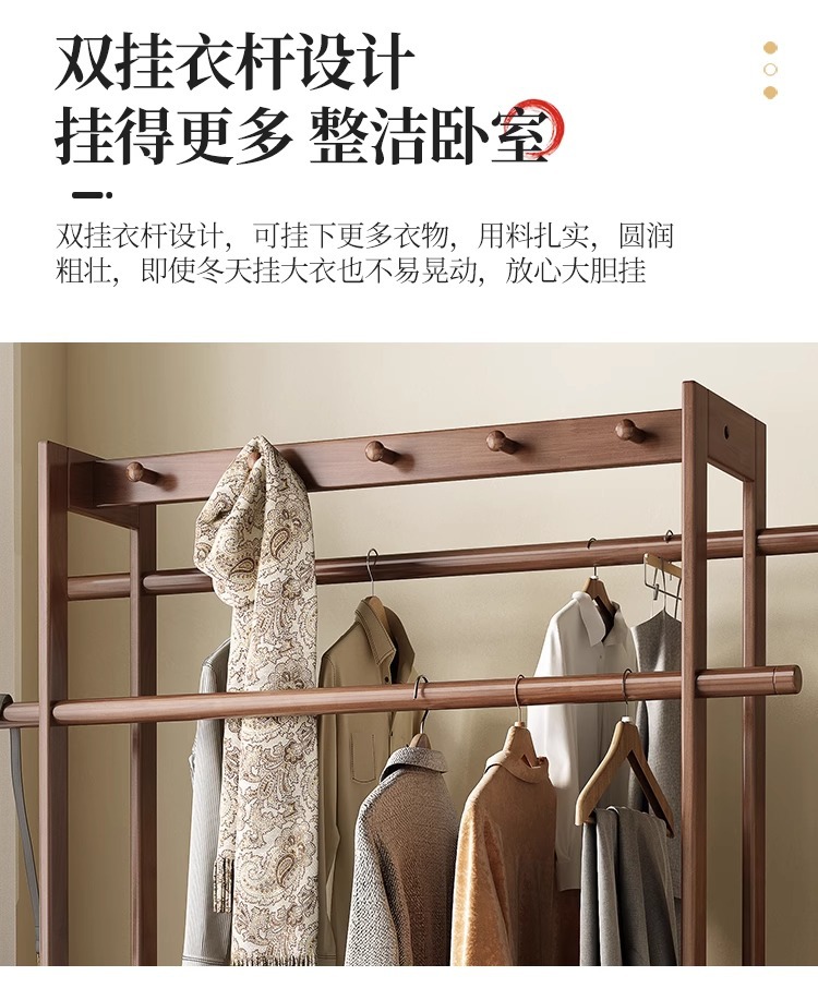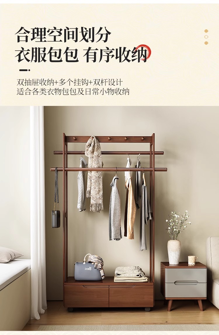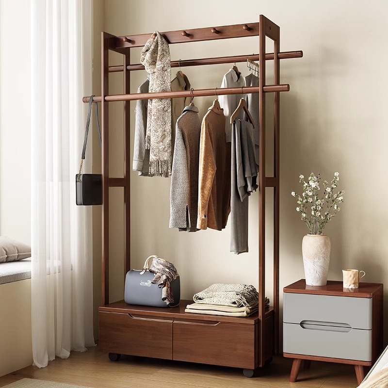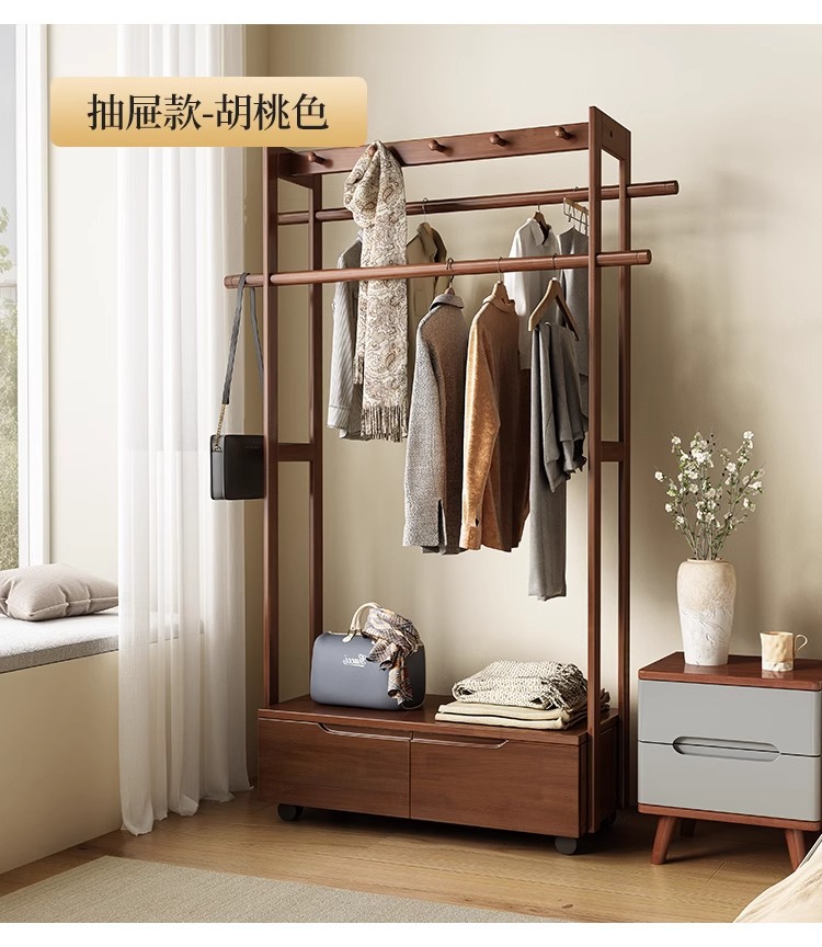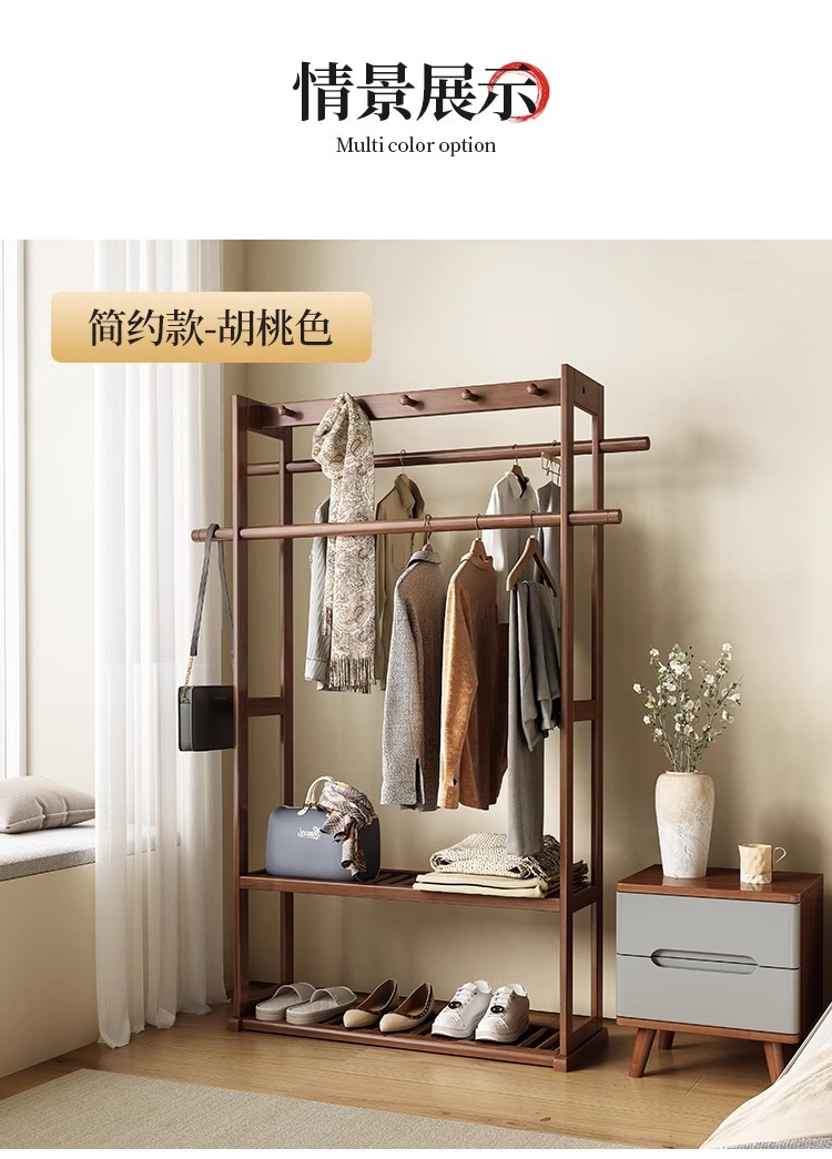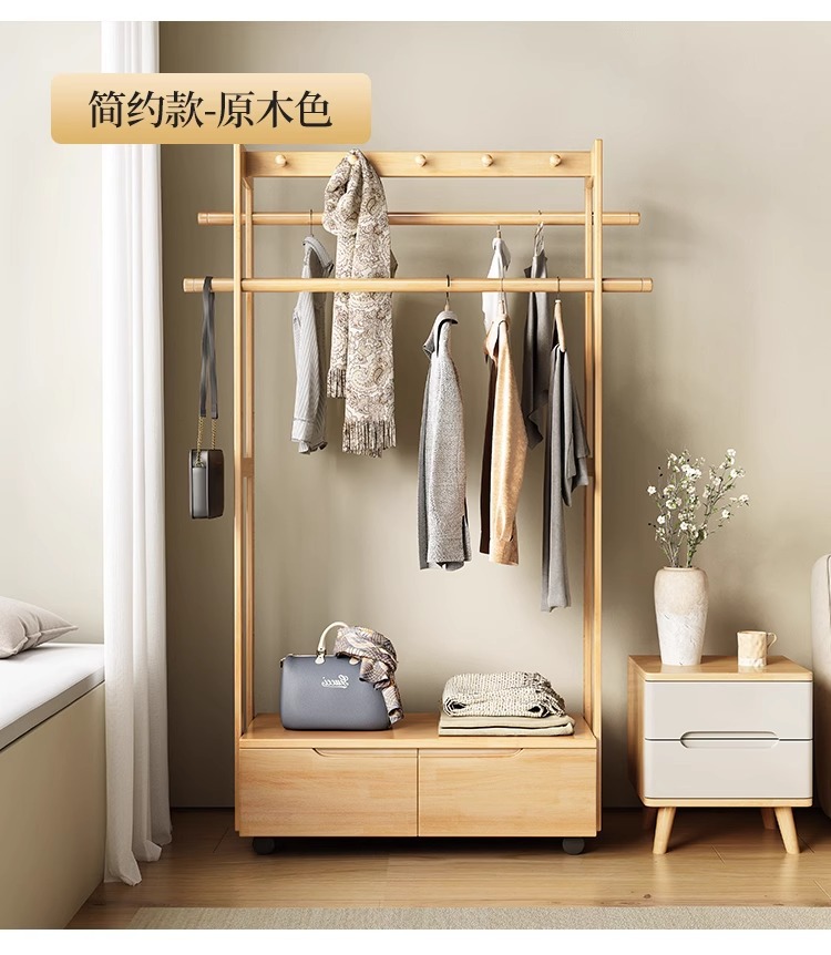 새로운 중국 스타일 솔리드 우드 코트 랙 가정용 작은 아파트 편리한 이동식 바닥 걸이 보관 랙 간단한 가벼운 럭셔리