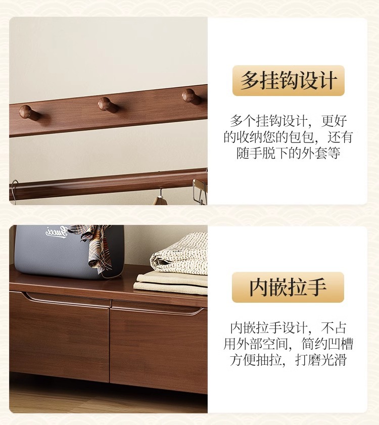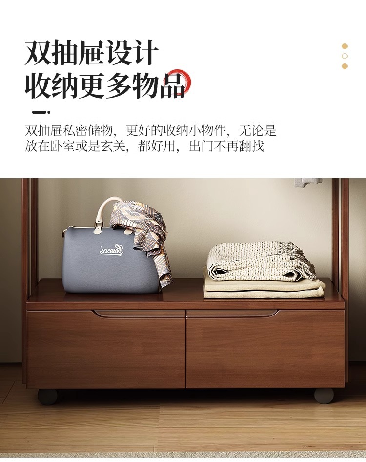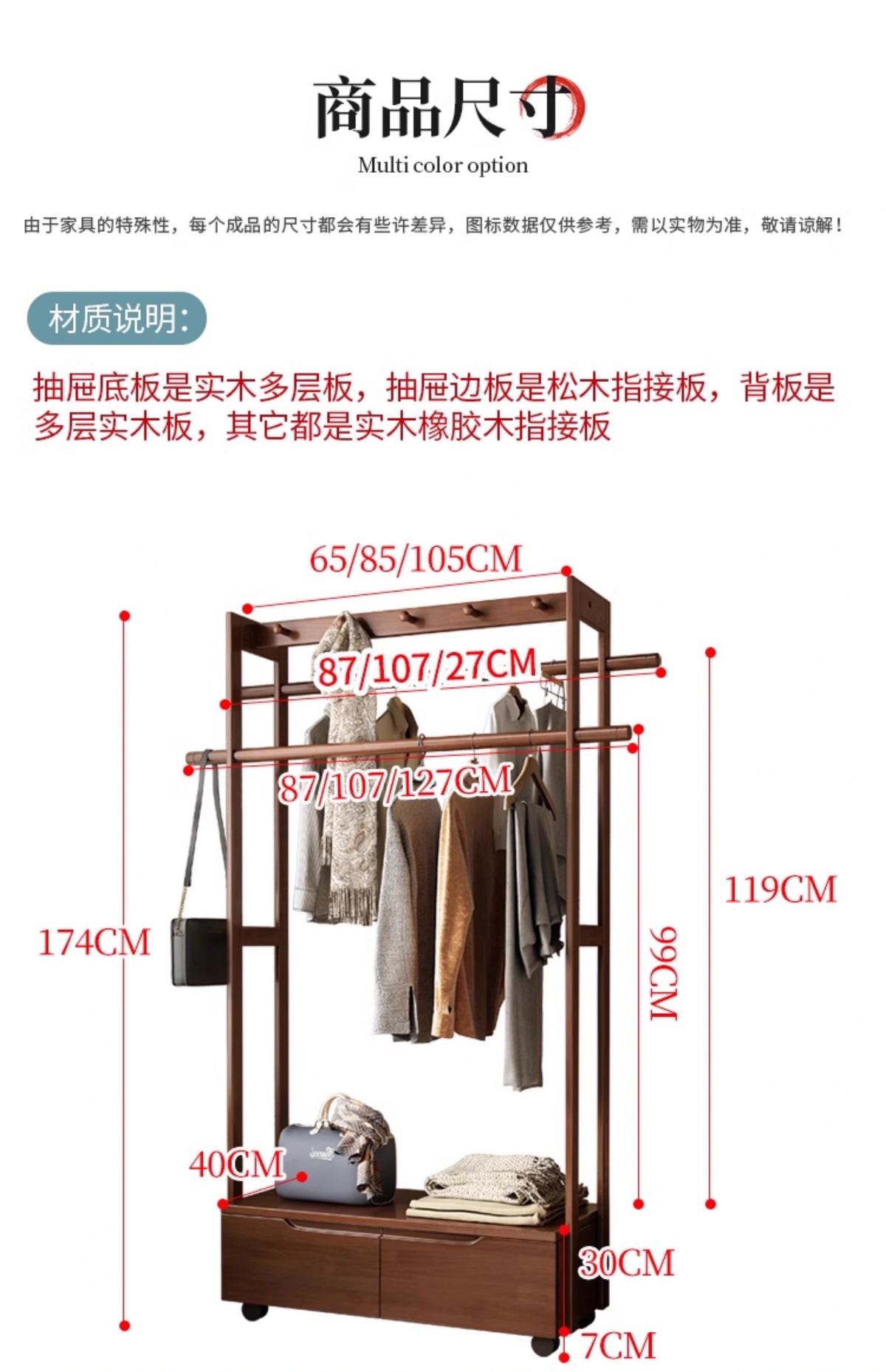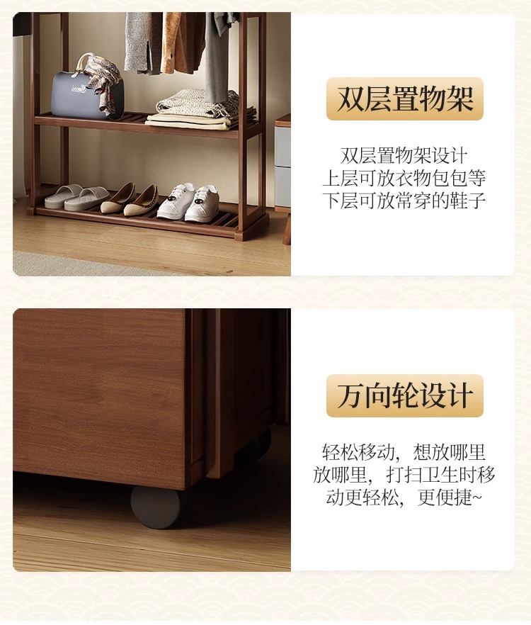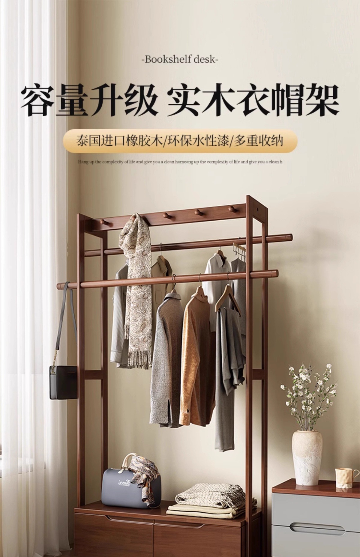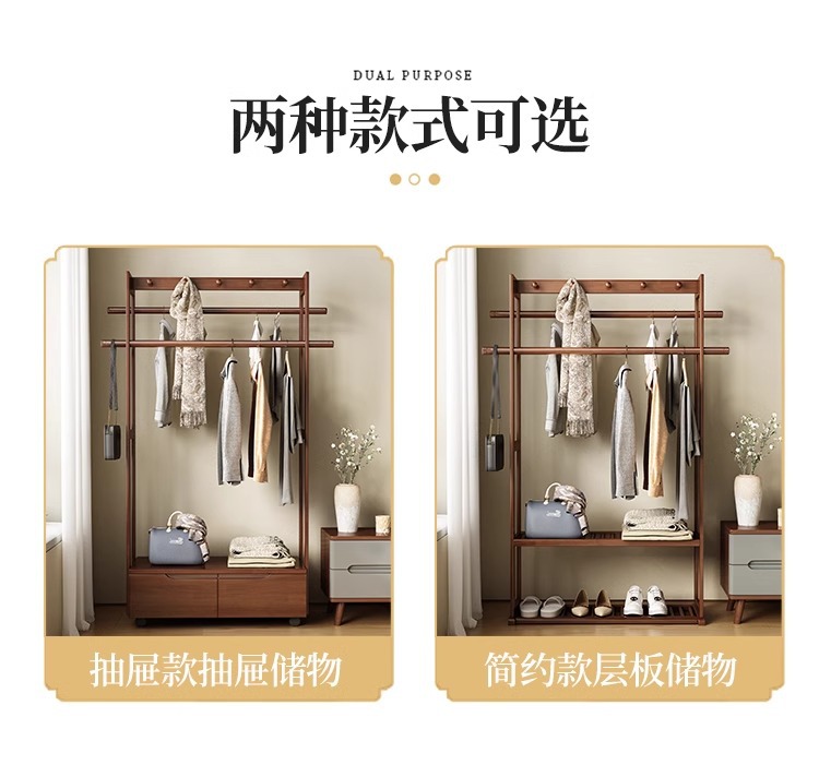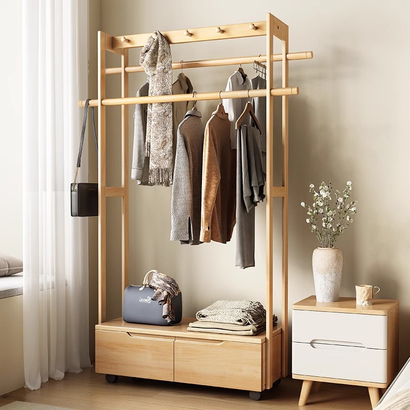 새로운 중국 스타일 솔리드 우드 코트 랙 가정용 작은 아파트 편리한 이동식 바닥 걸이 보관 랙 간단한 가벼운 럭셔리