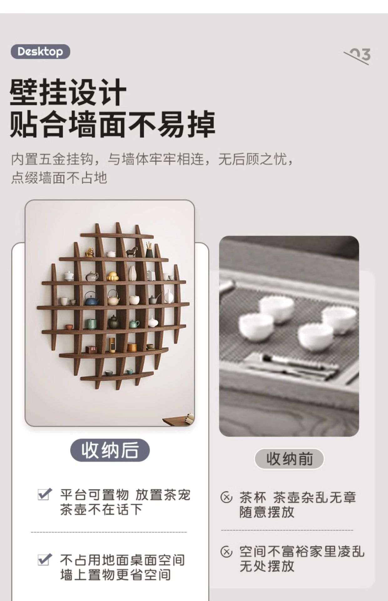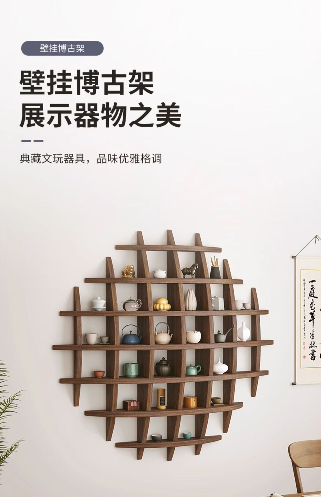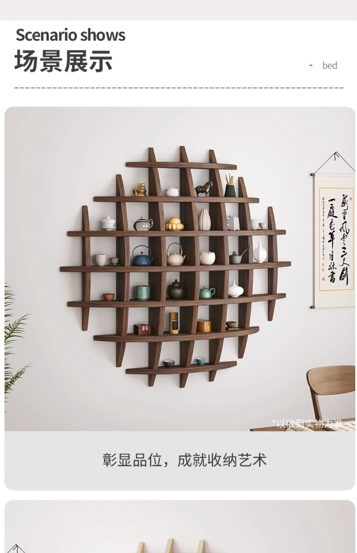 솔리드 우드 티 세트 컵 티 컵 스토리지 랙 벽 매달린 티 룸 스토리지 랙 Duobaoge 골동품 랙 벽 격자 랙스토어 가기