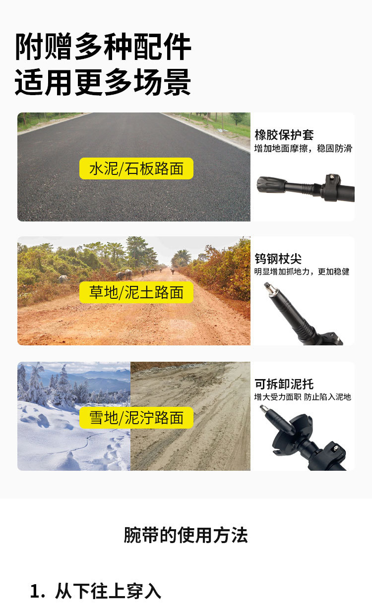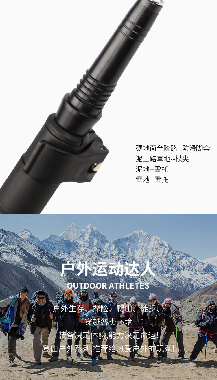 대외 무역 아마존 국경 알루미늄 합금 3 섹션 망원경 외부 자물쇠 등반 스틱 스트레이트 핸들 등반 목발 지팡이스토어 가기