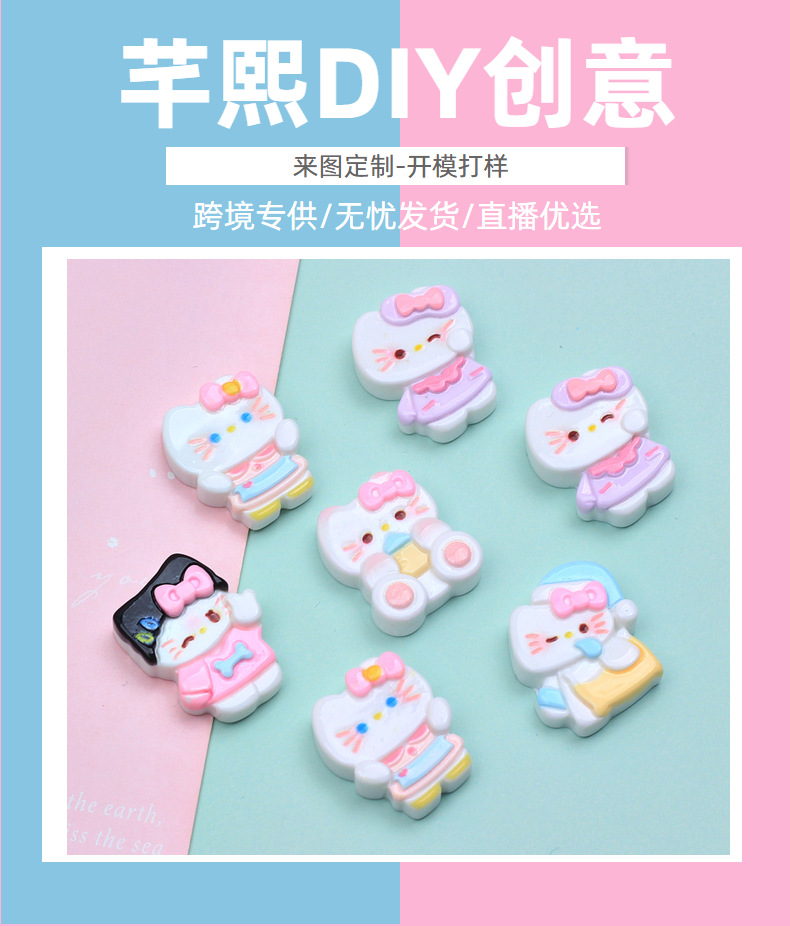 수지 액세서리 도매 크림 젤 헤어 클립 DIY 구멍 신발 버클 보석 장식 만화 핑크 활 고양이스토어 가기