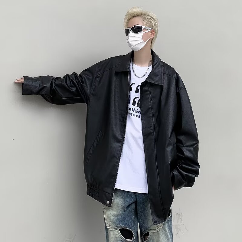 가을 2024 PU 가죽 자켓 남성 트렌디 한 브랜드 Planky Handsome Top Ins 미국 복고풍 오토바이 재킷 하이 엔드 센스 툴링스토어 가기