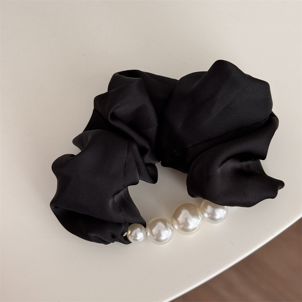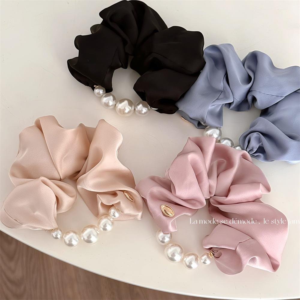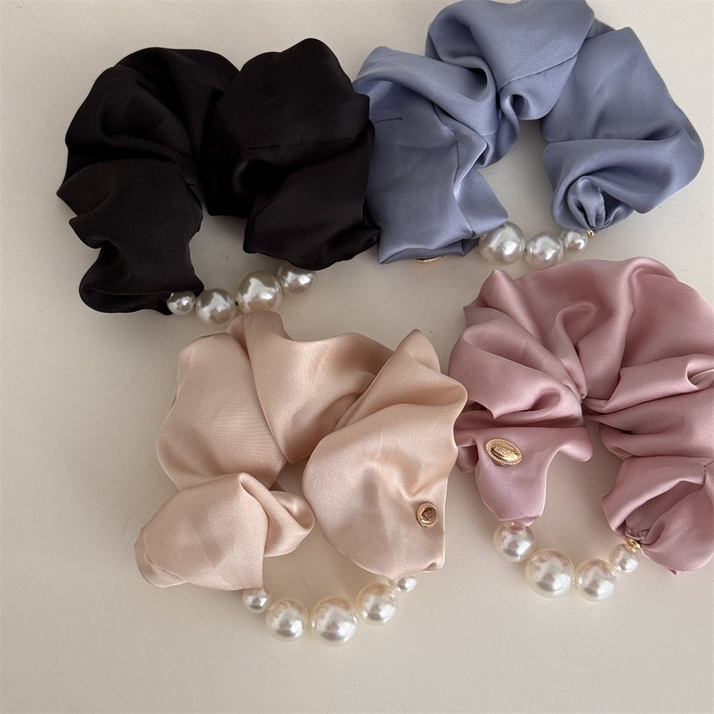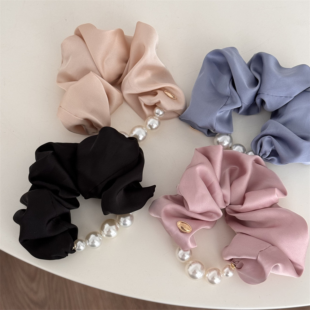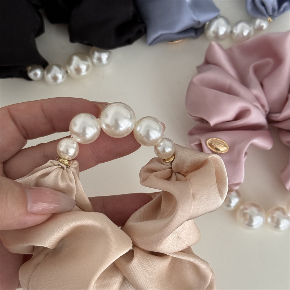 한국 스타일 부드러운 우아한 대형 그릇 반지 진주 가장자리 낮은 페디테일 헤어 링 골드 라벨 헤어 로프 고급 헤어 액세서리 새로운 스타일스토어 가기