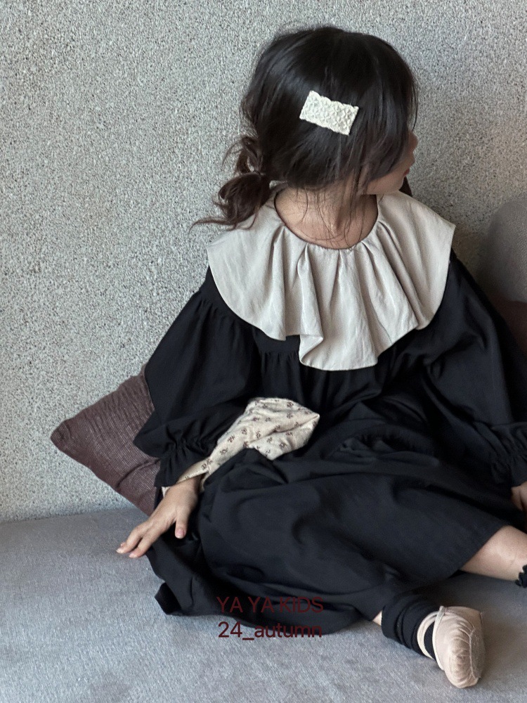 여아 2025 봄 신상 원피스 아동 한국 스타일 꽃잎 칼라 프렌치 고급스러운 스티치 롱 스커트
