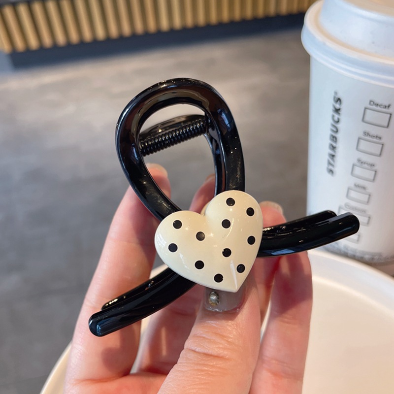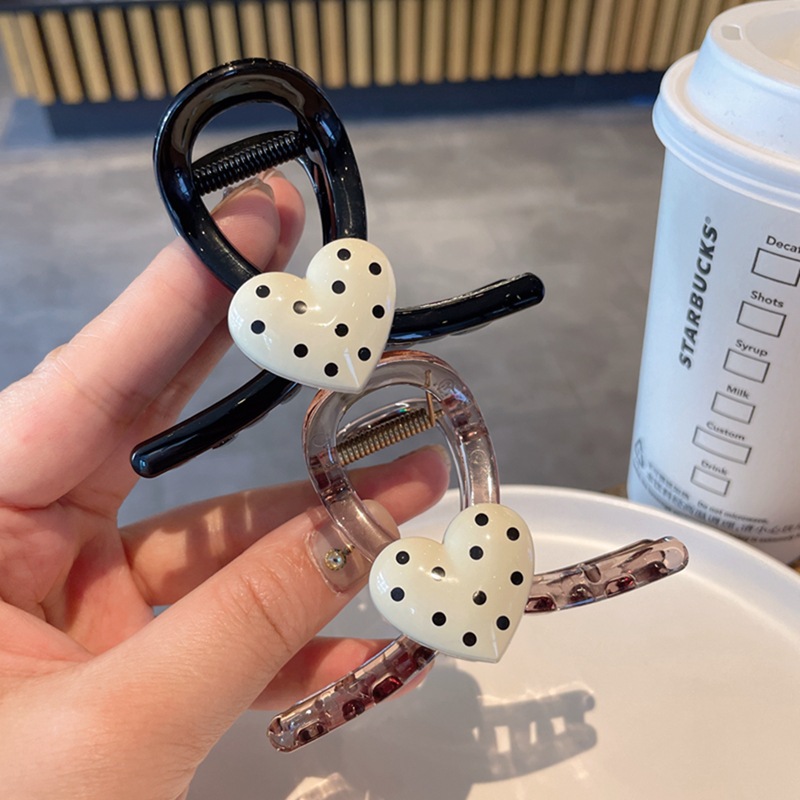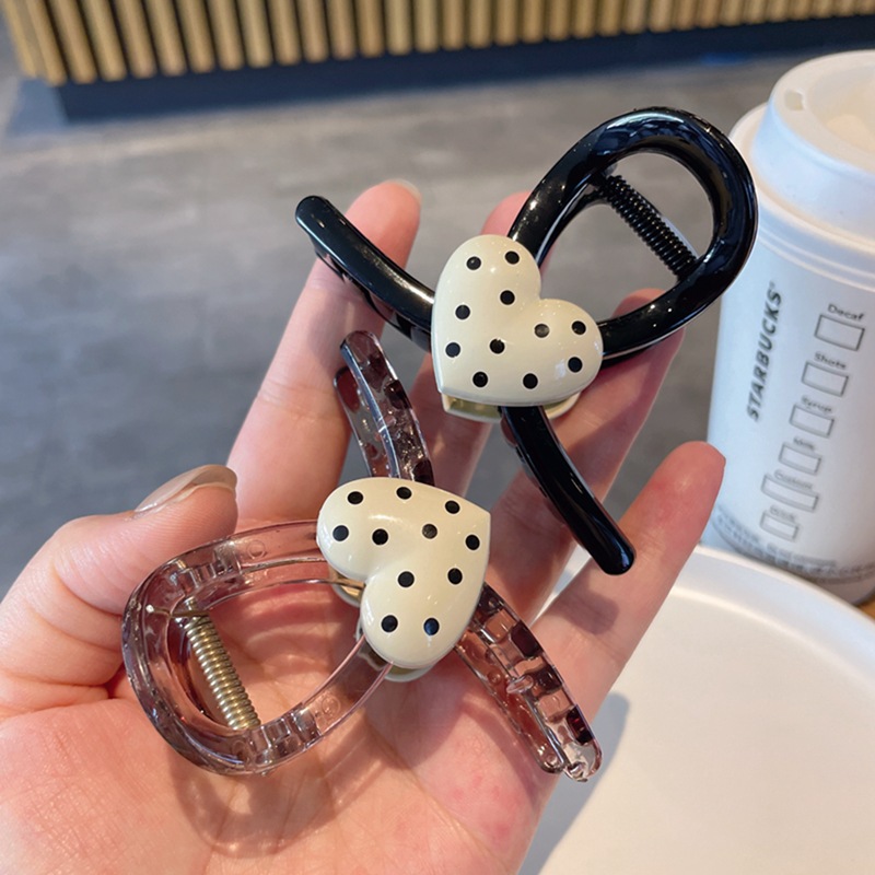 한국식 귀여운 폴카 도트 러브 그랩 클립 간단한 헤어 그랩 상어 클립 고급 센스 백 헤드 헤어핀 헤어 액세서리