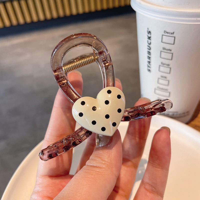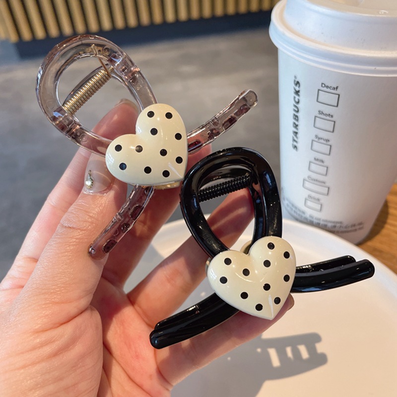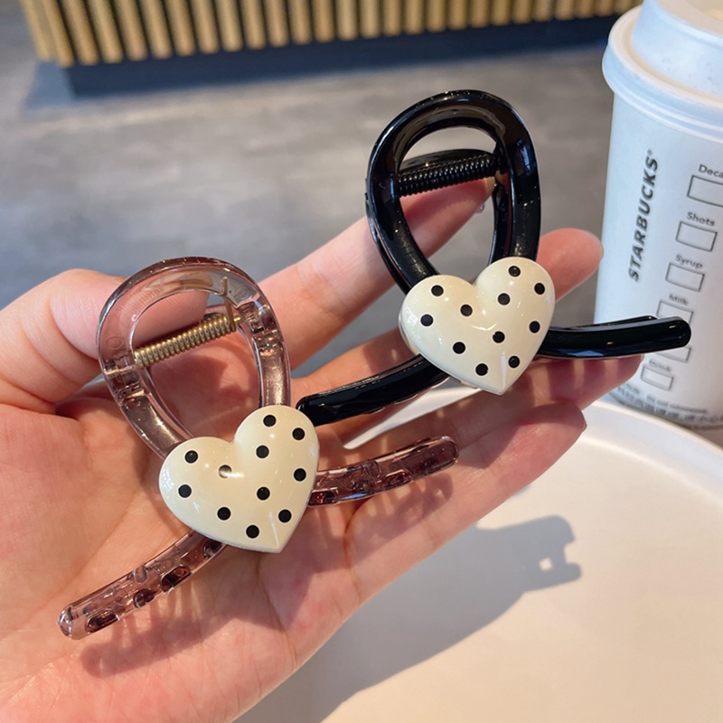 한국식 귀여운 폴카 도트 러브 그랩 클립 간단한 헤어 그랩 상어 클립 고급 센스 백 헤드 헤어핀 헤어 액세서리스토어 가기