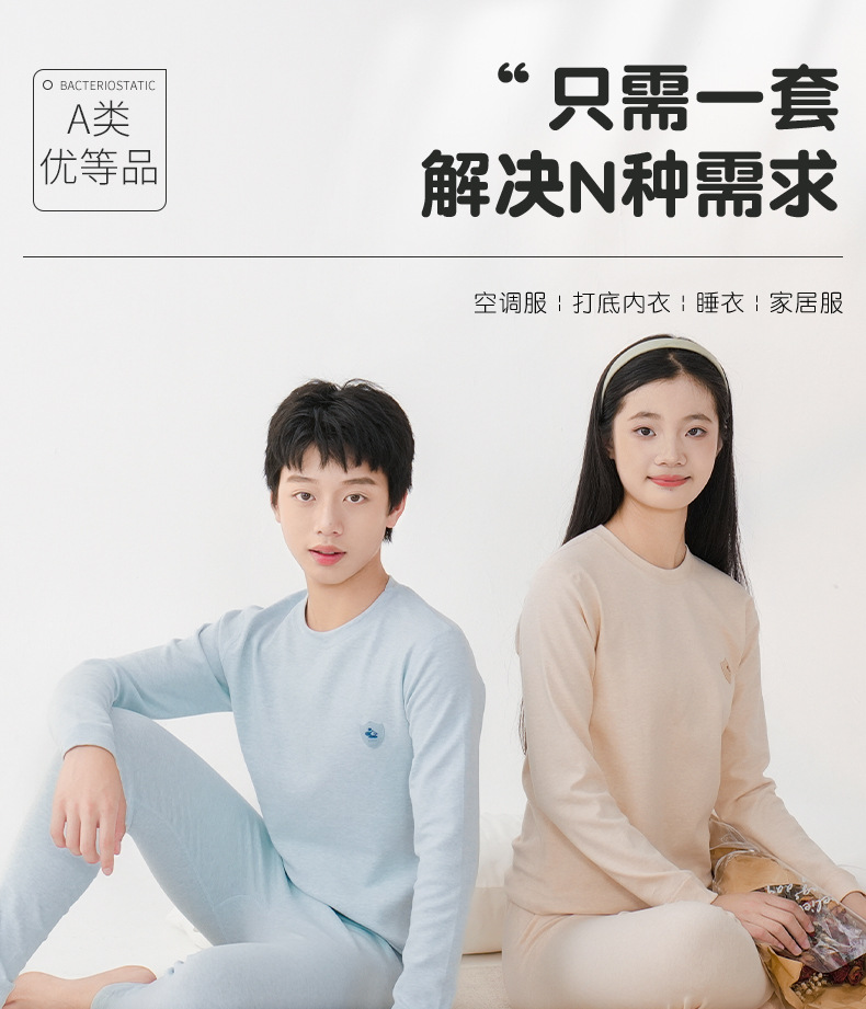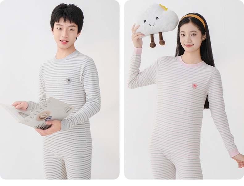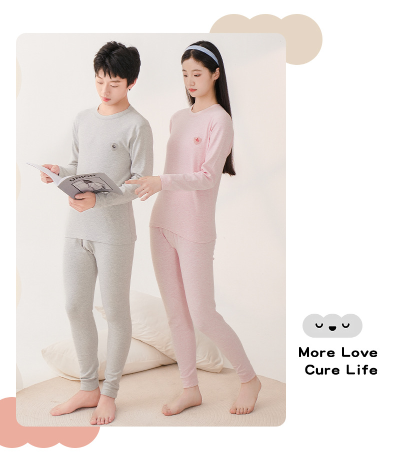 청소년 시롱 열 속옷 세트 남성 큰 어린이 가을 옷 긴 바지 여고 중학생 면 양모 순면 잠옷