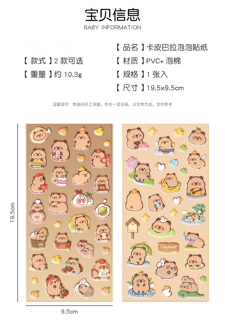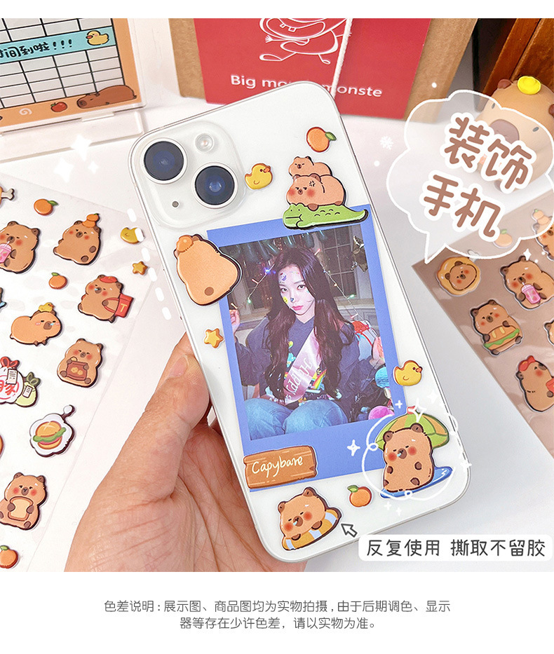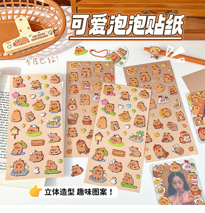 Capibala 버블 스티커 귀여운 DIY 어린이 장난감 페이스트 capybara 3D 입체 만화 손 계정 스티커스토어 가기
